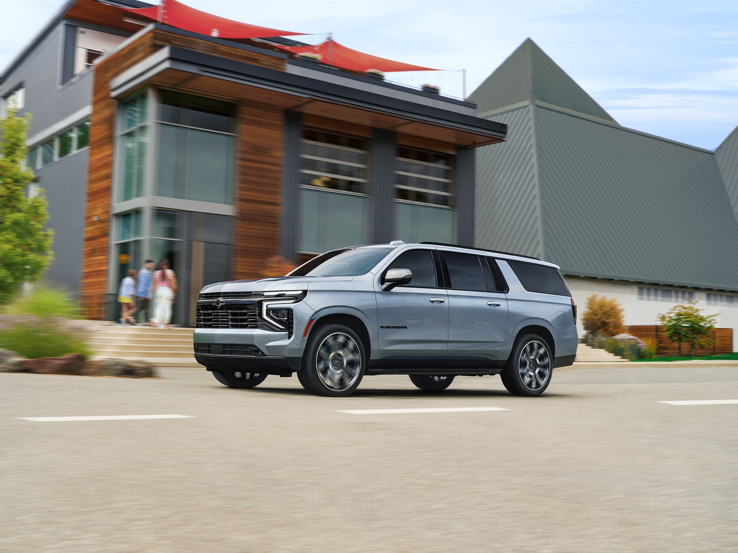 The bold and rugged exterior design of the Chevy Suburban will make you the envy of every road. The prominent grille with the iconic Chevrolet bowtie logo is flanked by sleek LED headlamps that'll light up the night. The sculpted hood and strong character lines give the Chevrolet Suburban a muscular look. Choose from a range of head-turning exterior colors and finishes, like the High Country's exclusive Iridescent Pearl Tricoat, and get ready to make a statement.