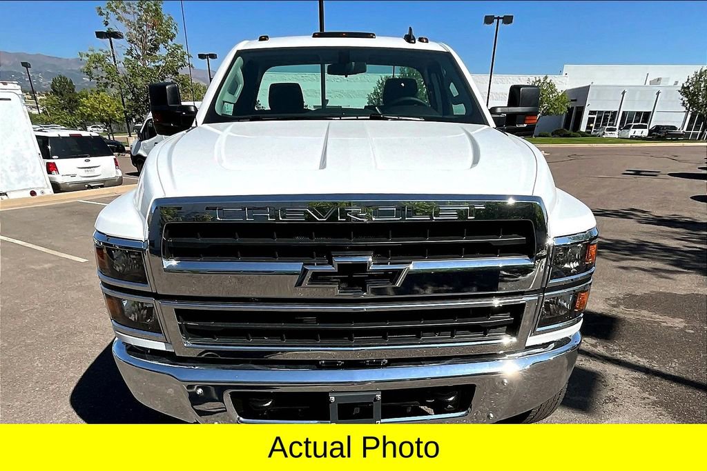 Preferred Equipment Group 1WT, Snow Plow Prep Package (3' Auxiliary Harness For Headlamps & Turn Signals and Provision For Cab Roof Mounted Lamp/Beacon), Snow Plow Prep Package w/Dual Alternators, Vocational Specific Heavy Suspension Package, 10-Way Power Driver's Seat Adjuster, 110-Volt AC Power Outlet, 34,000 lbs. GCWR (15,422 kg), 4.2 Diagonal Color Display Driver Info Center, 4.30 Rear Axle Ratio, 40/20/40 Front 3-Passenger Split Bench Seat, 40/20/40 Front 3-Passenger Split Bench Seat w/Jet Blk, 5 Gallons Additional Fuel, 6-Speaker Audio System, ABS brakes, Air Conditioning, Aluminum Assist Steps, Black Frame-Mounted Front Recovery Hooks, Chrome Front Bumper, Chrome Grille, Delay-off headlights, Driver door bin, Dual front impact airbags, Dual front side impact airbags, Dual rear wheels, Electronic Stability Control, Engine Block Heater, Exterior Parking Camera Rear, Front Center Armrest w/Storage, Front License Plate Kit, Front reading lights, Frontal Passenger-Side Airbag Deactivation Switch, Fully automatic headlights, Leather Wrapped Steering Wheel, Limited-Slip Axle, Manual Regeneration Diesel Particulate Filter DPF, Occupant sensing airbag, OnStar & Chevrolet Connected Services Capable, Overhead airbag, Overhead console, Passenger cancellable airbag, Passenger door bin, Power steering, Power Take-Off Engine Control Provisions, Power Windows w/Driver Express Up & Down, Premium audio system: Chevrolet MyLink, Radio: AM/FM Stereo w/8 Diagonal Color Touch Screen, Remote Keyless Entry, Single-Slot CD/MP3 Player, Single-Zone Air Conditioning, Speed control, Steel Frame-Mounted Skid Plate, Steering Wheel Audio Controls, Tachometer, Tilt steering wheel, Tool Kit w/Rim Wrench & Handle Only, Top Post Threaded Battery Jump Start Stud, Traction control, Trip computer, Variably intermittent wipers, Voltmeter, Wheels: 19.5 x 6.75 Black Painted Hub Piloted Steel w/8-Holes, and Wheels: 19.5 x 6.75 Hub Piloted 4-Alum w/8-Holes. Price includes: $11500 - Customer Cash. Exp. 01/02/2026