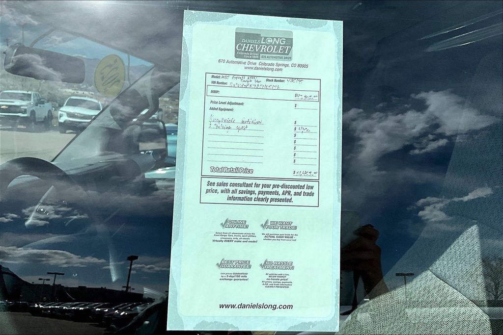 Limited Lifetime Powertrain Warranty included!Summit White 2025 Chevrolet Express 2500 Work Van Cargo RWD 8-Speed Automatic with Overdrive 6.6L V8DANIELS LONG CHEVROLET will beat any local written offer by $500. See Dealer for details..Chrome Appearance Package (Chrome Grille and Front & Rear Chrome Bumpers w/Step-Pad), Driver Convenience Package (Cruise Control and Tilt Steering Wheel), Heavy-Duty Trailering Equipment, Preferred Equipment Group 1WT, 150 Amp Alternator, 16 x 6.5 Steel Wheels, 2 Speakers, 3.42 Rear Axle Ratio, 4-Wheel Disc Brakes, ABS brakes, Air Conditioning, AM/FM radio, AM/FM Stereo w/MP3 Player, Delay-off headlights, Driver & Front Passenger High-Back Bucket Seats, Driver & Front Passenger Vinyl Visors, Driver door bin, Driver's Seat Mounted Armrest, Dual front impact airbags, Dual front side impact airbags, Electronic Stability Control, Engine Cover Console w/Swing-Out Storage Bin, Exterior Parking Camera Rear, Front anti-roll bar, Front Bucket Seats, Front Reclining High-Back Bucket Seats, Front wheel independent suspension, Full-Length Black Rubberized-Vinyl Floor Covering, Fully automatic headlights, Heated door mirrors, Heavy-Duty Rear Locking Differential, Low tire pressure warning, Occupant sensing airbag, Outside Temperature Display, Overhead airbag, Passenger cancellable airbag, Passenger door bin, Passenger seat mounted armrest, Power door mirrors, Power steering, Power windows, Reclining Front Bucket Seats w/Inboard Armrests, Remote Keyless Entry, Single-Zone Manual Air Conditioning, Tachometer, Theft Alarm Notification, Traction control, Trip computer, Variably intermittent wipers, Vinyl Seat Trim, and Voltmeter.