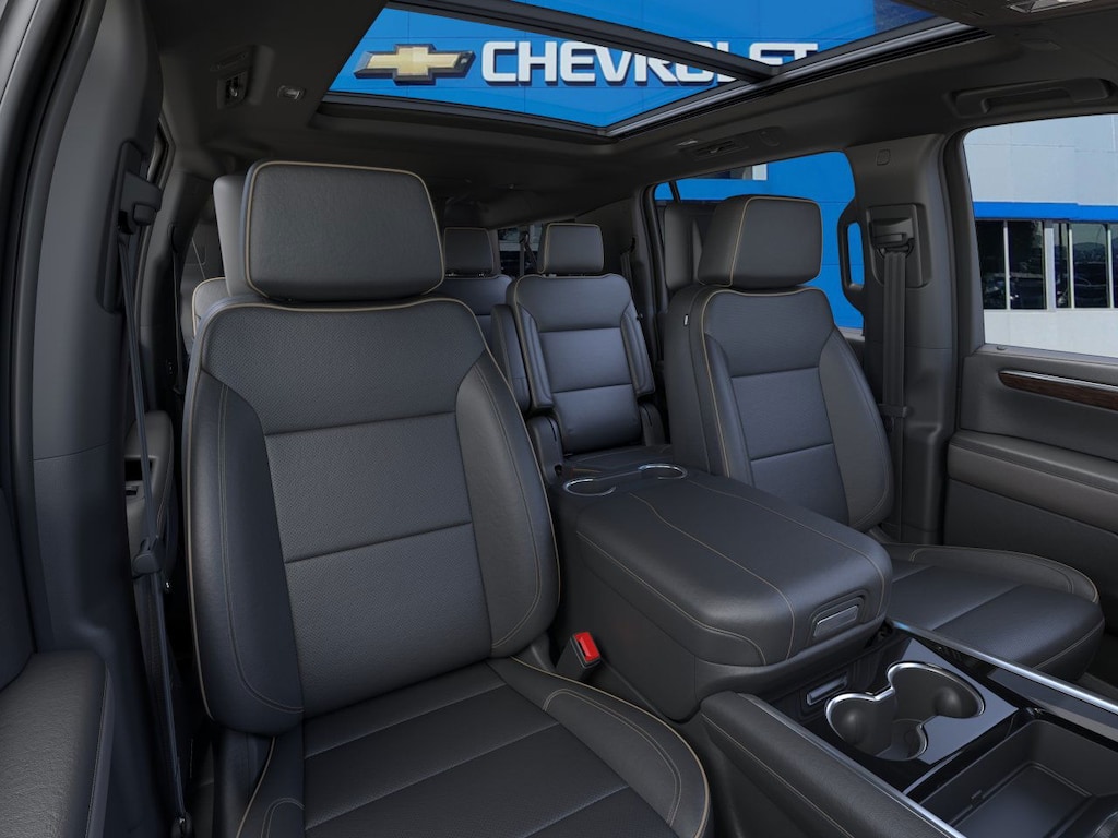 Advanced Security Package (Glass Breakage Sensor, Self-Powered Horn Theft-Deterrent Alarm System, Vehicle Inclination Sensor, and Vehicle Interior Movement Sensor), Advanced Trailering Package (Blind Zone Steering Assist with Trailering, Hitch View with Pan/Zoom Image Adjustment, and Smart Trailer Integration Indicator), Max Trailering Package (2-Speed Active Electronic AutoTrac Transfer Case, Hill Descent Control, and Integrated Trailer Brake Controller), Preferred Equipment Group 1LZ (20 x 9 Polished Aluminum Wheels, 3rd Row 60/40 Power-Folding Split-Bench, 4-Way Power Driver Lumbar Seat Adjuster, 4-Way Power Front Passenger Lumbar Seat Adjuster, 8-Way Power Front Passenger Seat Adjuster, Auto-Dimming Inside Rear-View Mirror, Bose 10-Speaker Surround with CenterPoint, Bright Front and Rear Door Sill Plates, Chrome Door Handles with Body-Color Strip, Dual Exhaust System, Front LED Fog Lamps, Heated 2nd Row Outboard Seats, Heated Driver and Front Passenger Seats, Heated Power-Adjustable Outside Mirrors, Heated Steering Wheel, LED Headlamps with LED Daytime Running Lamps, LED Tail Lamps, Magnetic Ride Control Suspension, Memory Settings, Perforated Heated and Ventilated Seats, Power Release 2nd Row Bucket Seats, Power Tilt and Telescopic Steering Column, Power-Sliding Center Floor Console, Rear Power Liftgate, Universal Home Remote, and Wireless Phone Charging), Technology & Entertainment Package (Dual-Pane Power Panoramic Sunroof and Rear Seat Media System), Technology Package (15 Diagonal Multi-Color Head-Up Display, AutoSense Hands-Free Power Liftgate, and Inside Rearview Auo-Dimming Rear Camera Mirror), 10 Speakers, 3.23 Rear Axle Ratio, 3rd row seats: split-bench, 4-Wheel Disc Brakes, 8-Way Power Driver Seat Adjuster, ABS brakes, Adaptive suspension, Air Conditioning, Alloy wheels, AM/FM radio: SiriusXM with 360L, Apple CarPlay/Android Auto, Auto High-beam Headlights, Auto-dimming door mirrors, Auto-dimming Rear-View mirror, Auto-leveling suspension, Automatic temperature control, Brake assist, Bumpers: body-color, Compass, Delay-off headlights, Driver door bin, Driver vanity mirror, Dual front impact airbags, Dual front side impact airbags, Electronic Stability Control, Emergency communication system: OnStar Services capable, Exterior Parking Camera Rear, Extra Capacity Cooling System, Four wheel independent suspension, Front anti-roll bar, Front Bucket Seats, Front Center Armrest, Front dual zone A/C, Front fog lights, Front reading lights, Fully automatic headlights, Garage door transmitter, Heated door mirrors, Heated front seats, Heated rear seats, Heated steering wheel, Illuminated entry, Low tire pressure warning, Memory seat, Navigation system: Google built-in compatibility (select service plan required, terms and limitations apply), Occupant sensing airbag, Outside temperature display, Overhead airbag, Overhead console, Panic alarm, Passenger door bin, Passenger vanity mirror, Perforated Leather Seating Surfaces, Power door mirrors, Power driver seat, Power Liftgate, Power passenger seat, Power steering, Power windows, Radio data system, Radio: 17.7 Diagonal Advanced Color LCD Display, Rain sensing wipers, Rear air conditioning, Rear anti-roll bar, Rear reading lights, Rear window defroster, Rear window wiper, Remote keyless entry, Security system, SiriusXM with 360L Trial Subscription, Speed control, Speed-sensing steering, Split folding rear seat, Spoiler, Steering wheel memory, Steering wheel mounted audio controls, Tachometer, Telescoping steering wheel, Tilt steering wheel, Traction control, Trailer Camera Provisions, Trailering Assist Guidelines, Trip computer, Turn sign