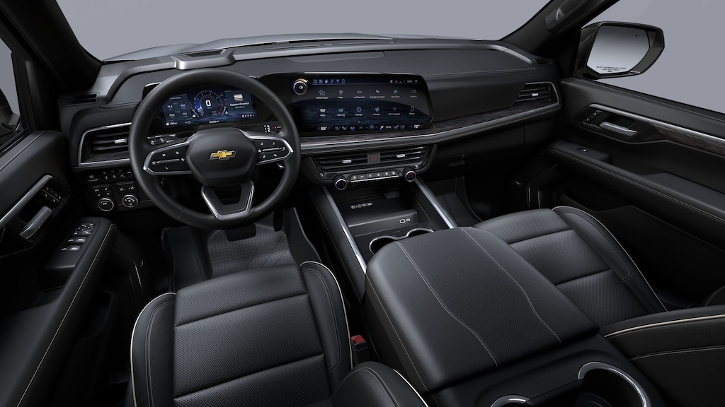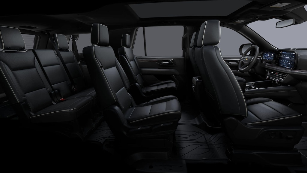 Advanced Trailering Package (Blind Zone Steering Assist with Trailering, Hitch View with Pan/Zoom Image Adjustment, and Smart Trailer Integration Indicator), License Plate Front Mounting Package, Max Trailering Package (2-Speed Active Electronic AutoTrac Transfer Case, Hill Descent Control, and Integrated Trailer Brake Controller), Preferred Equipment Group 1LZ (1st and 2nd Row Color-Keyed Carpeted Floor Mats, 20 x 9 Polished Aluminum Wheels, 3-Spoke Wrapped Steering Wheel, 3rd Row 60/40 Power-Folding Split-Bench Seat, Auto-Dimming Inside Rear-View Mirror, Bose 10-Speaker Centerpoint Surround Audio System Feature, Bright Front and Rear Door Sill Plates, Chrome Door Handles with Body-Color Strip, Color-Keyed Carpeting Floor Covering, Dual Exhaust System, Floor Console, Front Bucket Seats, Front LED Fog Lamps, Front Pedestrian and Bicyclist Braking, Frontal Driver and Outboard Passenger Airbags, Heated 2nd Row Outboard Seats, Heated Steering Wheel, LED Headlamps with LED Daytime Running Lamps, LED Tail Lamps, Magnetic Ride Control Suspension, Memory Settings, Outside Heated Power-Adjustable Mirrors, Power Release 2nd Row Bucket Seats, Power Tilt and Telescopic Steering Column, Rear Power Liftgate, Remote Start, SiriusXM with 360L Trial Subscription, Universal Home Remote, and Wireless Phone Charging), Premium Dark Essentials Package (Black Name Plates, Front and Rear Black Bowtie Emblems, and Wheels: 22 x 9 Steel Interim), Premium Liner Protection Package (3rd Row All-Weather Floor Liners, All-Weather Cargo Mat, and First and Second Rows Premium Floor Liners), Sun and Tow Package (Dual-Pane Power Panoramic Sunroof), 4WD, Black Leather, 10 Speakers, 3.23 Rear Axle Ratio, 3rd row seats: split-bench, 4-Way Power Driver Lumbar Seat Adjuster, 4-Way Power Front Passenger Lumbar Seat Adjuster, 4-Wheel Disc Brakes, 8-Way Power Driver Seat Adjuster, 8-Way Power Front Passenger Seat Adjuster, ABS brakes, Adaptive suspension, Air Conditioning, Alloy wheels, AM/FM radio: SiriusXM with 360L, Apple CarPlay/Android Auto, Auto High-beam Headlights, Auto-dimming door mirrors, Auto-dimming Rear-View mirror, Auto-leveling suspension, Automatic temperature control, Black Mirror Caps, Brake assist, Bumpers: body-color, Compass, Delay-off headlights, Driver and Front Passenger Heated and Ventilated Seats, Driver door bin, Driver vanity mirror, Dual front impact airbags, Dual front side impact airbags, Electronic Stability Control, Emergency communication system: OnStar and Chevrolet connected services capable, Exterior Parking Camera Rear, Extra Capacity Cooling System, Four wheel independent suspension, Front anti-roll bar, Front Center Armrest, Front dual zone A/C, Front fog lights, Front reading lights, Fully automatic headlights, Garage door transmitter, Heated door mirrors, Heated Driver and Front Passenger Seats, Heated front seats, Heated rear seats, Heated steering wheel, Illuminated entry, Low tire pressure warning, Memory seat, Navigation system: Google built-in compatibility (select service plan required, terms and limitations apply), Occupant sensing airbag, Outside temperature display, Overhead airbag, Overhead console, Panic alarm, Passenger door bin, Passenger vanity mirror, Perforated Leather Seat Trim, Power door mirrors, Power driver seat, Power Liftgate, Power passenger seat, Power steering, Power windows, Premium audio system: Chevrolet Infotainment 3 Premium, Radio data system, Radio: 17.7 Diagonal Advanced Color LCD Display, Rain sensing wipers, Rear air conditioning, Rear anti-roll bar, Rear reading lights, Rear window defroster, Rear window wiper, Remote keyless entry, Security system, Speed cont