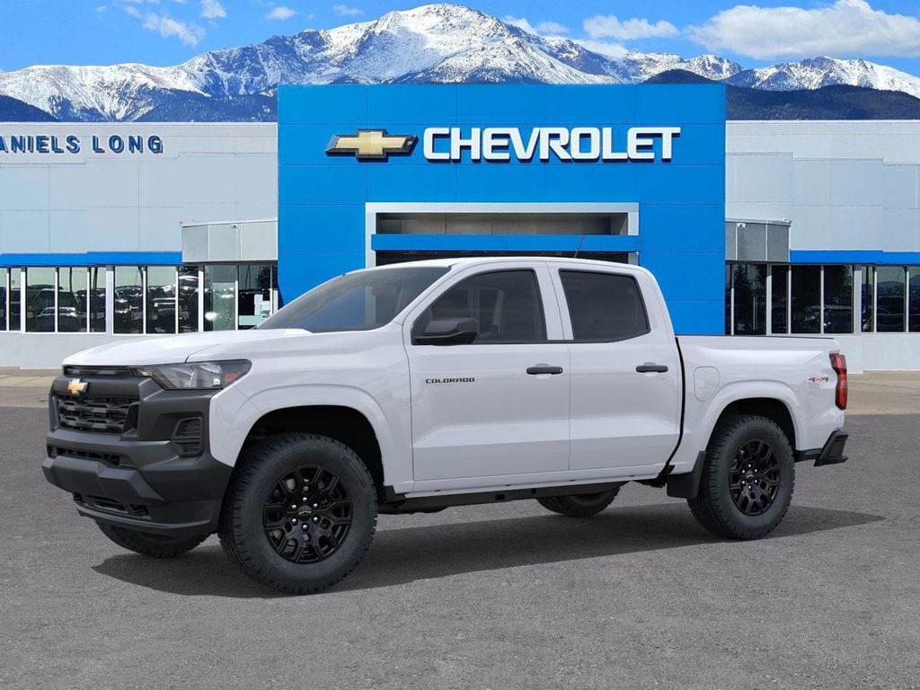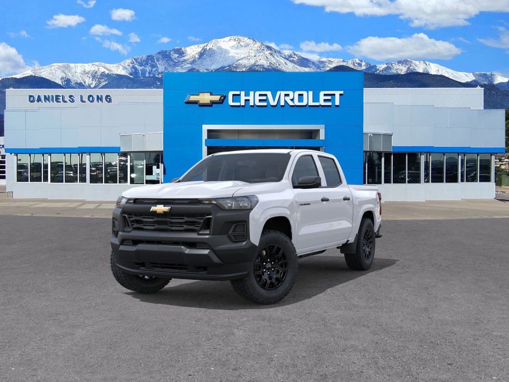 Recent Arrival!Limited Lifetime Powertrain Warranty included!White 2026 Chevrolet Colorado Work Truck 4WD 8-Speed Automatic 2.7L I4 Turbocharged DOHC 16V LEV3-ULEV50 310hpDANIELS LONG CHEVROLET will beat any local written offer by $500. See Dealer for details., 4WD.WT Convenience Package II (4-Spoke Wrapped Steering Wheel, 8-Way Power Driver Seat Adjuster, EZ-Lift and Lower Tailgate, Power Driver Lumbar Control Seat Adjuster, StowFlex Tailgate Storage Compartment, and Tailgate Keyed Cylinder Lock), WT Custom Package (Black Nameplates and Wheels: 18 x 8.5 Black High Gloss Aluminum), 4WD, 3.42 Rear Axle Ratio, 4-Way Manual Passenger Seat Adjuster, 4-Wheel Disc Brakes, 6 Speakers, 6-Speaker Audio System Feature, 6-Way Manual Driver Seat Adjuster, ABS brakes, Air Conditioning, AM/FM radio: SiriusXM with 360L, Apple CarPlay/Android Auto, Auto High-beam Headlights, Automatic Emergency Braking, Brake assist, Chevy Safety Assist, Cloth Seat Trim, Delay-off headlights, Driver door bin, Driver vanity mirror, Dual front impact airbags, Dual front side impact airbags, Electronic Stability Control, Emergency communication system: OnStar, Following Distance Indicator, Forward Collision Alert, Front anti-roll bar, Front Bucket Seats, Front Center Armrest, Front Pedestrian and Bicyclist Braking, Front wheel independent suspension, Heated door mirrors, IntelliBeam Automatic High Beam on/Off, Lane Keep Assist with Lane Departure Warning, Low tire pressure warning, Navigation System, Occupant sensing airbag, Overhead airbag, Panic alarm, Passenger door bin, Passenger vanity mirror, Power door mirrors, Power steering, Power windows, Radio data system, Radio: 11.3 Diagonal Advanced Color LCD Display, Rear step bumper, Rear window defroster, Remote keyless entry, Security system, SiriusXM with 360L Trial Subscription, Speed control, Speed-sensing steering, Split folding rear seat, Steering Wheel Mounted Audio Controls, Steering wheel mounted audio controls, Tachometer, Tilt steering wheel, Traction control, Trip computer, Variably intermittent wipers, Wheels: 17 x 8 Ultra Silver Metallic Steel, and Wireless Phone Projection. Price includes: $1000 - Customer Cash. Exp. 03/31/2026