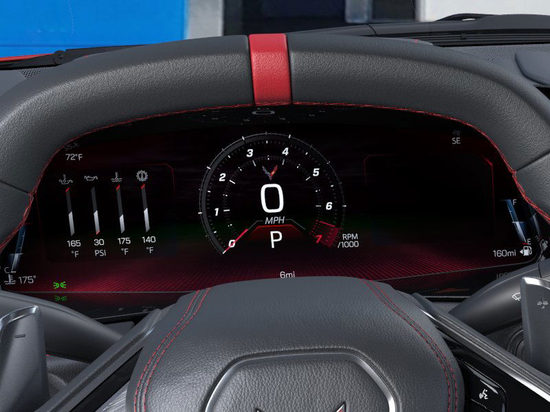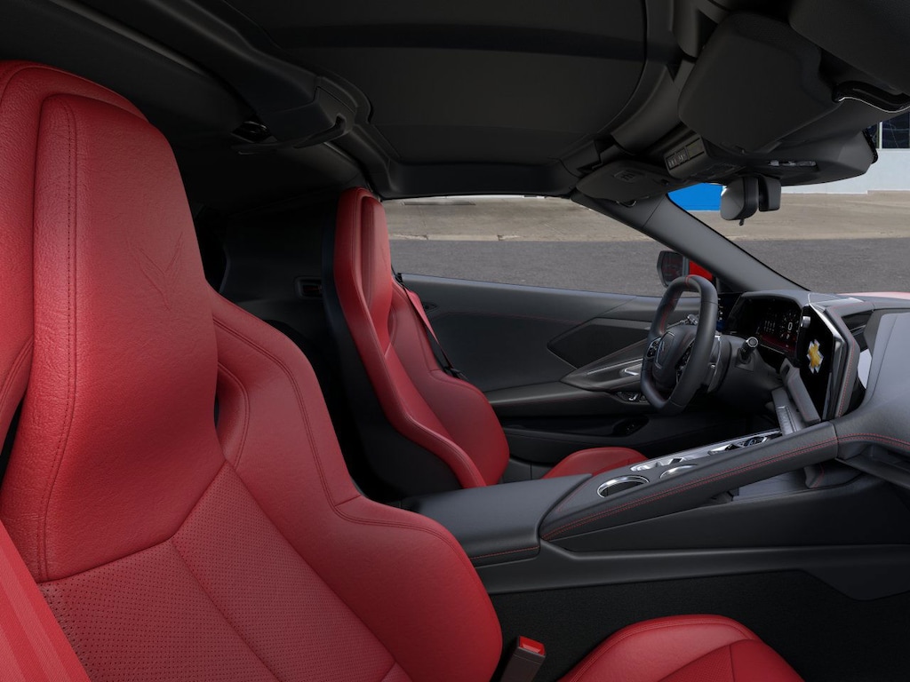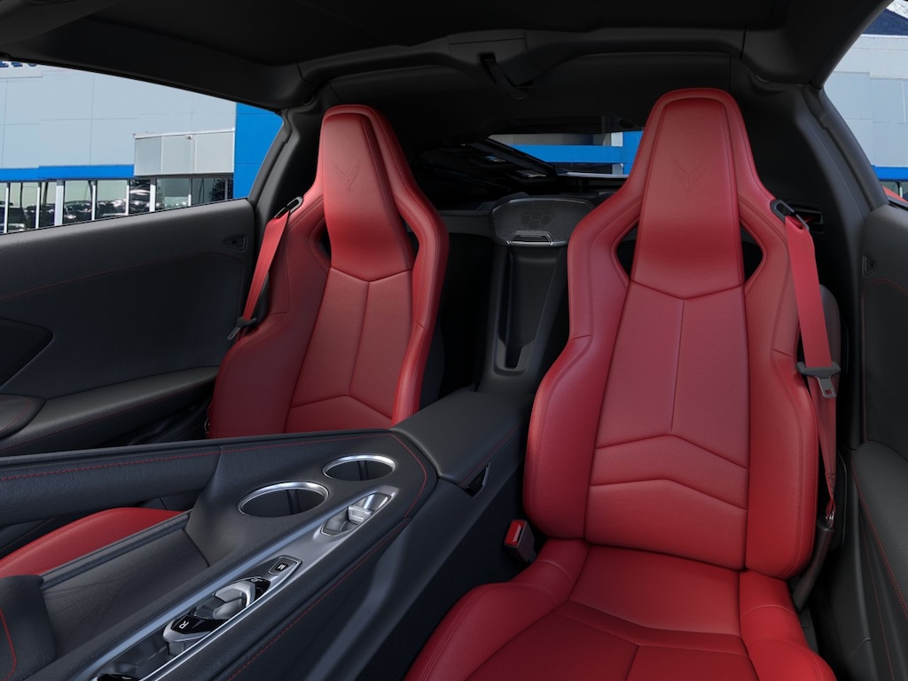 10 Speakers, 4-Wheel Disc Brakes, 8-Way Power Driver Seat Adjuster, 8-Way Power Passenger Seat Adjuster, ABS brakes, Air Conditioning, Alloy wheels, AM/FM radio: SiriusXM, Auto High-beam Headlights, Auto-dimming Rear-View mirror, Automatic temperature control, Body-Color Exterior Accents, Brake assist, Bright Red-Painted Calipers, Bumpers: body-color, Compass, Delay-off headlights, Driver door bin, Driver vanity mirror, Dual front impact airbags, Dual front side impact airbags, Electronic Stability Control, Emergency communication system: OnStar and Chevrolet connected services capable, Four wheel independent suspension, Front anti-roll bar, Front Bucket Seats, Front Center Armrest, Front dual zone A/C, Front Radiator Grille Screens, Front reading lights, Fully automatic headlights, GT1 Bucket Seats, Heated door mirrors, Illuminated entry, Leather Shift Knob, Leather steering wheel, Low tire pressure warning, Low-Profile Rear Spoiler and Front Splitter, Mulan Leather Seating Surfaces with Perforated Inserts, Navigation System, Occupant sensing airbag, Outside temperature display, Overhead console, Panic alarm, Passenger door bin, Passenger vanity mirror, Performance Exhaust with Stainless-Steel Tips, Power door mirrors, Power driver seat, Power passenger seat, Power steering, Power windows, Premium audio system: Chevrolet Infotainment 3 Plus, Radio data system, Radio: Infotainment System with Google Built-in, Rear anti-roll bar, Rear window defroster, Remote keyless entry, Speed control, Speed-sensing steering, Sport steering wheel, Steering wheel mounted audio controls, Tachometer, Telescoping steering wheel, Tilt steering wheel, Torch Red Seat Belt Color, Traction control, Trip computer, Turn signal indicator mirrors, Variably intermittent wipers, Voltmeter, and Wheels: 19 x 8.5 Front and 20 x 11 Rear 5-Split-Spoke.