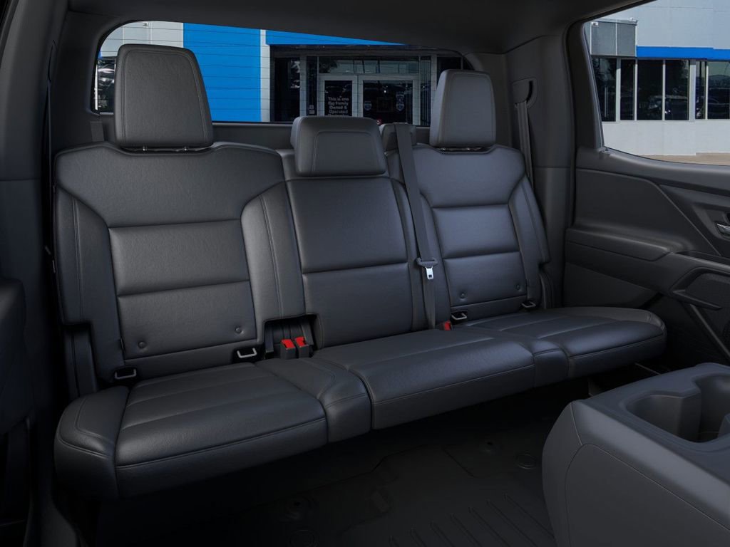 Front License Plate Bracket Mounting Package, Preferred Equipment Group 5WT (Extended Range Battery Pack), 11.63 Axle Ratio, 4-Wheel Disc Brakes, 4-Wheel Independent Suspension, 6 Speakers, 6-Speaker Audio System Feature, 6-Way Manual Driver Seat Adjuster, ABS brakes, Air Conditioning, Alloy wheels, AM/FM radio: SiriusXM with 360L, Auto High-beam Headlights, Automatic temperature control, Black Chevytec Spray-on Bedliner, Brake assist, Delay-off headlights, Deleted Mobile Service Plus, Driver door bin, Dual front impact airbags, Dual front side impact airbags, Electronic Stability Control, Emergency communication system: OnStar, Evotex Seat Trim, Exterior Parking Camera Rear, Four wheel independent suspension, Front anti-roll bar, Front Bucket Seats, Front Center Armrest w/Storage, Front dual zone A/C, Front Passenger 4-Way Manual Seat Adjuster, Front reading lights, Fully automatic headlights, Heated door mirrors, Low tire pressure warning, Navigation System, Occupant sensing airbag, Outside temperature display, Overhead airbag, Overhead console, Panic alarm, Passenger door bin, Passenger vanity mirror, Power door mirrors, Power steering, Power windows, Radio data system, Radio: 17.7 Diagonal Advanced Color LCD Display, Rear reading lights, Rear step bumper, Rear window defroster, Remote keyless entry, SiriusXM with 360L Trial Subscription, Speed control, Speed-sensing steering, Split folding rear seat, Steering wheel mounted audio controls, Telescoping steering wheel, Tilt steering wheel, Traction control, Trip computer, Variably intermittent wipers, and Wheels: 18 x 8.5 High Gloss Black Painted Aluminum.