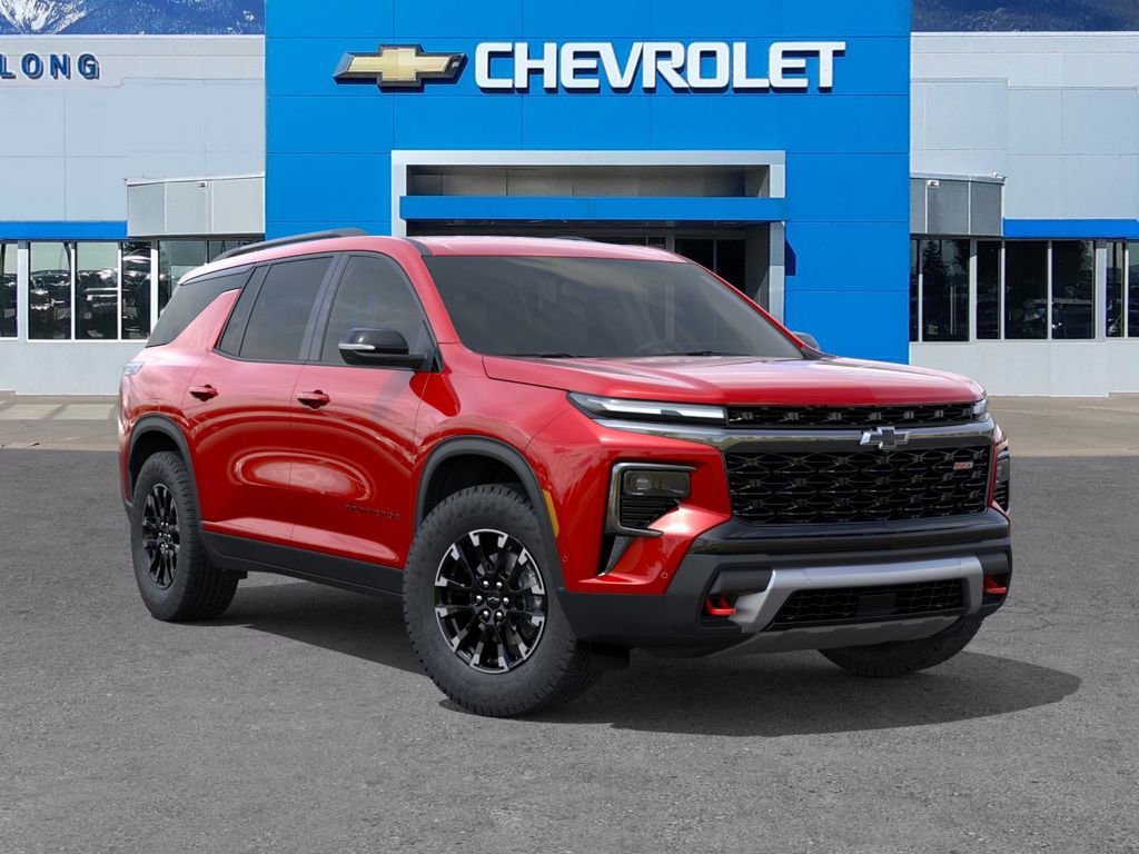 Recent Arrival!Limited Lifetime Powertrain Warranty included!Radiant Red Tintcoat 2026 Chevrolet Traverse Z71 AWD 8-Speed Automatic 2.5L DOHCDANIELS LONG CHEVROLET will beat any local written offer by $500. See Dealer for details., AWD.Driver Confidence Package (HD Surround Vision, Key Card, Power Outlet, Rear Camera Mirror, Rear Pedestrian Alert, and Traffic Sign Recognition), Enhanced Driving Package (Active Noise Cancellation, Bose Premium 12-Speaker Audio System Feature, Driver Attention Assist, Enhanced Automatic Parking Assist, and Super Cruise), Preferred Equipment Group 2Z7, AWD, 3rd row seats: split-bench, 4-Way Manual Front Passenger Seat Adjuster, 4-Wheel Disc Brakes, 6 Speakers, 6-Speaker Audio System Feature, 8-Way Power Driver Seat Adjuster, ABS brakes, Air Conditioning, Alloy wheels, AM/FM radio: SiriusXM with 360L, Apple CarPlay/Android Auto, Auto High-beam Headlights, Automatic temperature control, Brake assist, Bumpers: body-color, Child-Seat-Sensing Airbag, Compass, Delay-off headlights, Driver door bin, Driver vanity mirror, Dual front impact airbags, Dual front side impact airbags, Electronic Stability Control, Emergency communication system: OnStar, Engine Block Heater, Evotex Seat Trim, Four wheel independent suspension, Front anti-roll bar, Front Bucket Seats, Front Center Armrest, Front dual zone A/C, Front reading lights, Fully automatic headlights, Heated door mirrors, Heated Driver and Front Passenger Seats, Heated front seats, Heated steering wheel, Illuminated entry, Low tire pressure warning, Navigation System, Occupant sensing airbag, Outside temperature display, Overhead airbag, Overhead console, Panic alarm, Passenger door bin, Passenger vanity mirror, Power door mirrors, Power driver seat, Power Liftgate, Power steering, Power windows, Radio data system, Radio: : Audio System w/17.7 Diagonal Display, Rear air conditioning, Rear anti-roll bar, Rear reading lights, Rear window defroster, Rear window wiper, Remote keyless entry, Security system, SiriusXM with 360L Trial Subscription, Speed control, Speed-sensing steering, Split folding rear seat, Spoiler, Steering wheel mounted audio controls, Tachometer, Telescoping steering wheel, Tilt steering wheel, Traction control, Trip computer, Turn signal indicator mirrors, Variably intermittent wipers, Voltmeter, and Wheels: : 18 High Gloss Black Painted Aluminum.
