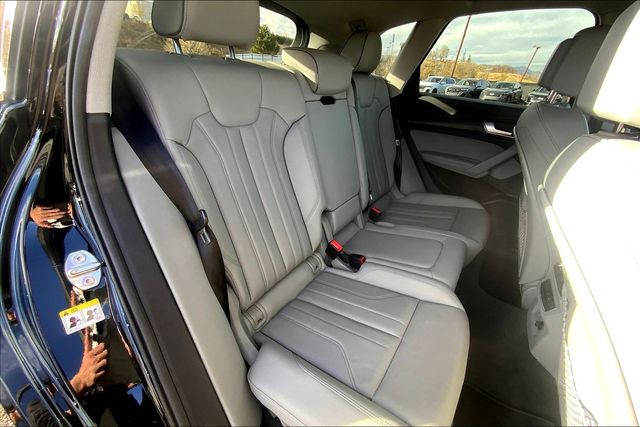 Q5 Prestige with Warm Weather package (Sport Seat both front seats identical with cool ventilation). Riding on air. There is no other way to put it. The sport seats difference other than cooling is “wings” that hold your butt and back in place, a 24 position electric adjustment on BOTH identical front seats with thigh support extenders, excellent for a couple with very bad backs. Power: watch out for fishtailing as you can feel G forces when accelerating, if you want. When researching a replacement for our sloppy 2017 Pilot I noticed most owners of other new vehicles in the south were complaining about AC unable to keep up with the Florida, Texas and desert heats. No problem here, the Q5 has more cool air than needed here at 5200’ in the sunny July southwest desert. Instrumentation is terrific with heads up display, maps and routing directly in front of the driver. (What is more ridiculous than the cars that put the map in the center stack and aim it straight to the rear of the car? Who is sitting on the shift to look forward at the map?) Moving on, the interior materials scream quality. Plenty of rear legroom for a knee replacement patient and headroom not a problem anywhere. Rear seats recline a couple inches. Owners manual very well written with detail. You can spend an evening laughing hysterically at the index though. Looking to program the garage door opener? Look in a subcategory under “O”, “Open and Close”! It goes on, and kept us looking up things just to laugh at where they are. Summarizing: most comfortable luxurious road rocket I’ve ever owned. - 5.0