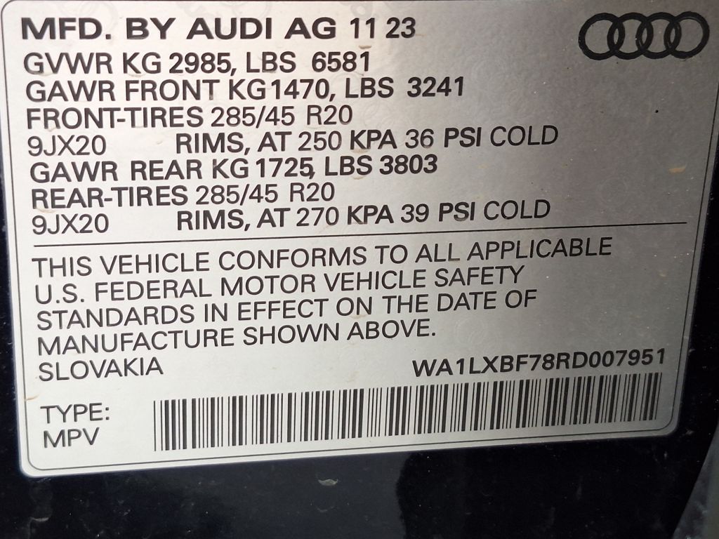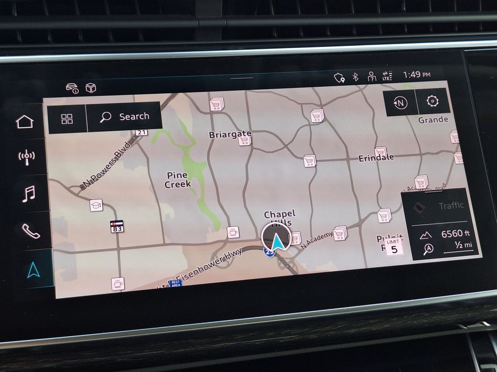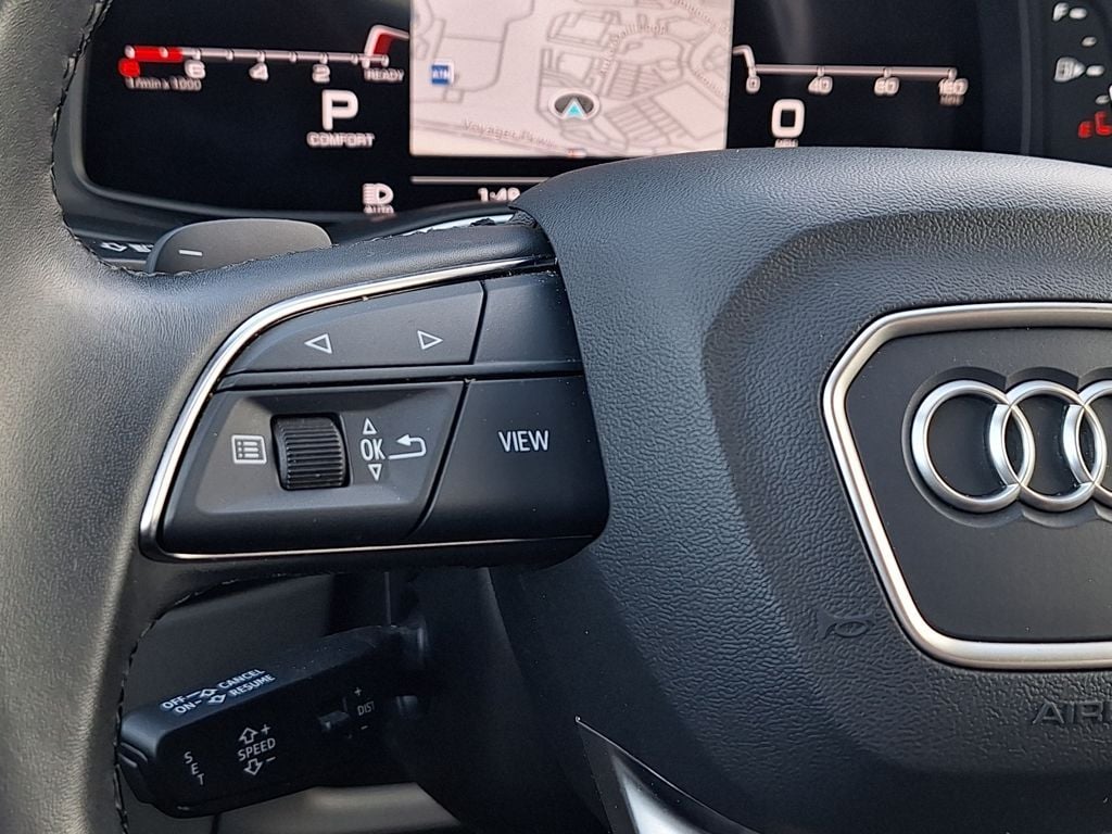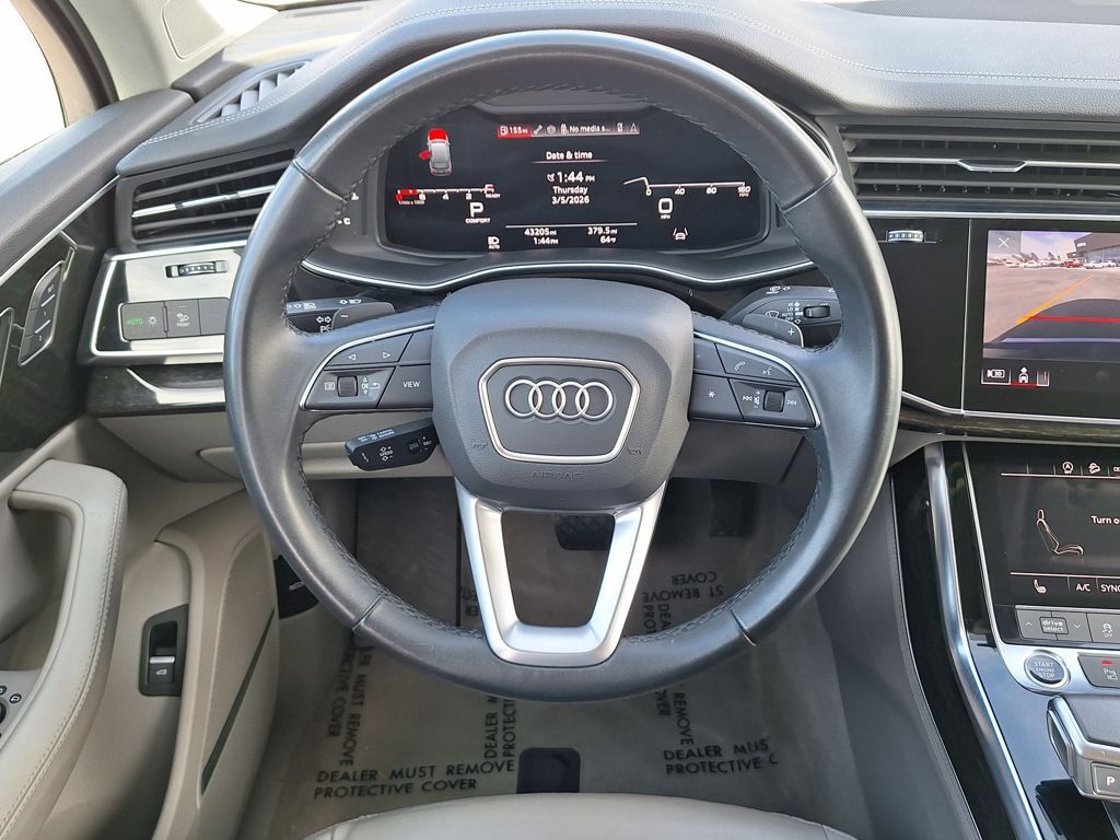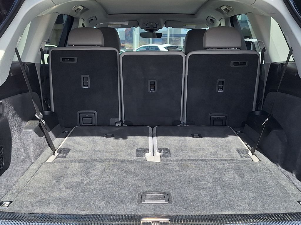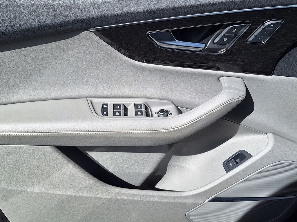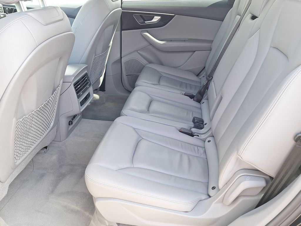 10 Speakers, 3.204 Axle Ratio, 3rd row seats: bench, 4-Wheel Disc Brakes, ABS brakes, Air Conditioning, Alloy wheels, AM/FM radio: SiriusXM w/ 360L, Auto High-beam Headlights, Auto-dimming door mirrors, Auto-dimming Rear-View mirror, Automatic temperature control, Brake assist, Bumpers: body-color, Compass, Delay-off headlights, Driver door bin, Driver vanity mirror, Dual front impact airbags, Dual front side impact airbags, Electronic Stability Control, Emergency communication system: Audi connect CARE, Exterior Parking Camera Rear, Four wheel independent suspension, Front anti-roll bar, Front Bucket Seats, Front Center Armrest, Front dual zone A/C, Front fog lights, Front reading lights, Fully automatic headlights, Garage door transmitter: HomeLink, Genuine wood door panel insert, Heated door mirrors, Heated Front Bucket Seats, Heated front seats, Illuminated entry, Leather Seating Surfaces, Leather Shift Knob, Leather steering wheel, Low tire pressure warning, Memory seat, Navigation system: Audi MMI Navigation plus with Touch Response, Occupant sensing airbag, Outside temperature display, Overhead airbag, Overhead console, Panic alarm, Passenger door bin, Passenger vanity mirror, Power door mirrors, Power driver seat, Power Liftgate, Power moonroof: Panoramic, Power passenger seat, Power steering, Power windows, Radio data system, Radio: Audi Sound System, Rain sensing wipers, Rear air conditioning, Rear anti-roll bar, Rear fog lights, Rear reading lights, Rear seat center armrest, Rear side impact airbag, Rear window defroster, Rear window wiper, Reclining 3rd row seat, Remote keyless entry, Security system, Speed control, Speed-sensing steering, Split folding rear seat, Spoiler, Steering wheel memory, Steering wheel mounted audio controls, Tachometer, Telescoping steering wheel, Tilt steering wheel, Traction control, Trip computer, Turn signal indicator mirrors, Variably intermittent wipers, and Wheels: 19" 5-Arm-Star Design.