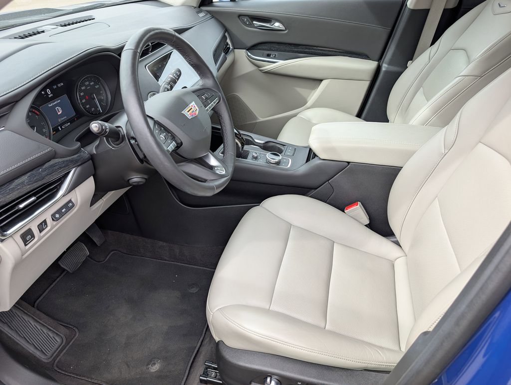 TECHNOLOGY PACKAGE includes (KEM) Air Ionizer, (UHS) 8 diagonal color reconfigurable gauge cluster, (UV6) Head-Up Display, (N38) power rake and telescoping steering column and (K4C) Wireless Phone Charging (Includes (T87) front cornering lamps and (UGC) LED front turn signal.), SUNROOF, POWER, DUAL PANEL GLASS, TILT/SLIDING, ENHANCED VISIBILITY PACKAGE includes (UKK) Rear Pedestrian Alert, (DRZ) Rear Camera Mirror, (CWA) Rear Camera Mirror Washer, (UV2) HD Surround Vision and (UKG) Automatic Parking Assist with braking, DRIVER ASSIST PACKAGE includes (KSG) Adaptive Cruise Control, (UGN) Enhanced Automatic Emergency Braking and (UVZ) Reverse Automatic Braking Vehicles built prior to January 3, 2022, include Reverse Automatic Braking. Certain vehicles built on or after January 3, 2022, will be forced to include (00Z) Not Equipped with Front and Rear Park Assist and Reverse Automatic Braking, which removes Front and Rear Park Assist and Reverse Automatic Braking. See dealer for details or the window label for the features on a specific vehicle.), COMFORT AND CONVENIENCE PACKAGE includes (A7K) 8-way power passenger seat adjuster, (AF6) driver power lumbar massage, (AKE) front passenger power lumbar massage, (AVK) driver seat 4-way power lumbar control, (AVU) front passenger seat 4-way power lumbar control and (KU9) driver and front passenger ventilated seats Vehicles built prior to November 15, 2021 and after May 1, 2022, include driver and front passenger ventilated seats. Certain vehicles built on or after November 15, 2021 through May 1, 2022, will be forced to include (00V) Not Equipped with Driver and Front Passenger Ventilated Seats, which removes driver and front passenger ventilated seats. See dealer for details or the window label for the features on a specific vehicle.), COLD WEATHER PACKAGE includes (KA1) heated driver and front passenger seats, (KA6) heated rear outboard seating position seats and (KI3) heated steering wheel (Vehicles built prior to November 15, 2021 and after May 1, 2022, include driver and front passenger heated seats and heated rear outboard seats. Certain vehicles built on or after November 15, 2021 through May 1, 2022, will be forced to include (00V) Not Equipped with Driver and Front Passenger Heated Seats, which removes driver and front passenger heated seats and (00R) Not Equipped with Heated Rear Outboard Seats, which removes heated rear outboard seats. Vehicles built prior to December 6, 2021 and after May 1, 2022, include heated steering wheel. Certain vehicles built on or after December 6, 2021 through May 1, 2022, will be, DRIVER AWARENESS PACKAGE includes (UE4) Following Distance Indicator, (UHX) Lane Keep Assist with Lane Departure Warning and (TQ5) IntelliBeam, SAFETY ALERT PACKAGE includes (UKC) Lane Change Alert with Side Blind Zone Alert and (UFG) Rear Cross Traffic Alert, ENGINE, 2.0L TURBO, 4-CYLINDER, SIDI (235 hp [175 kW] @ 5000 rpm, 258 lb-ft of torque [350 N-m] @ 1500-4000 rpm) (STD), TRANSMISSION, 9-SPEED AUTOMATIC electronically-controlled (STD). Cadillac AWD Premium Luxury with Wave Metallic exterior and Light Platinum/Jet Black interior features a 4 Cylinder Engine with 235 HP at 5000 RPM*.