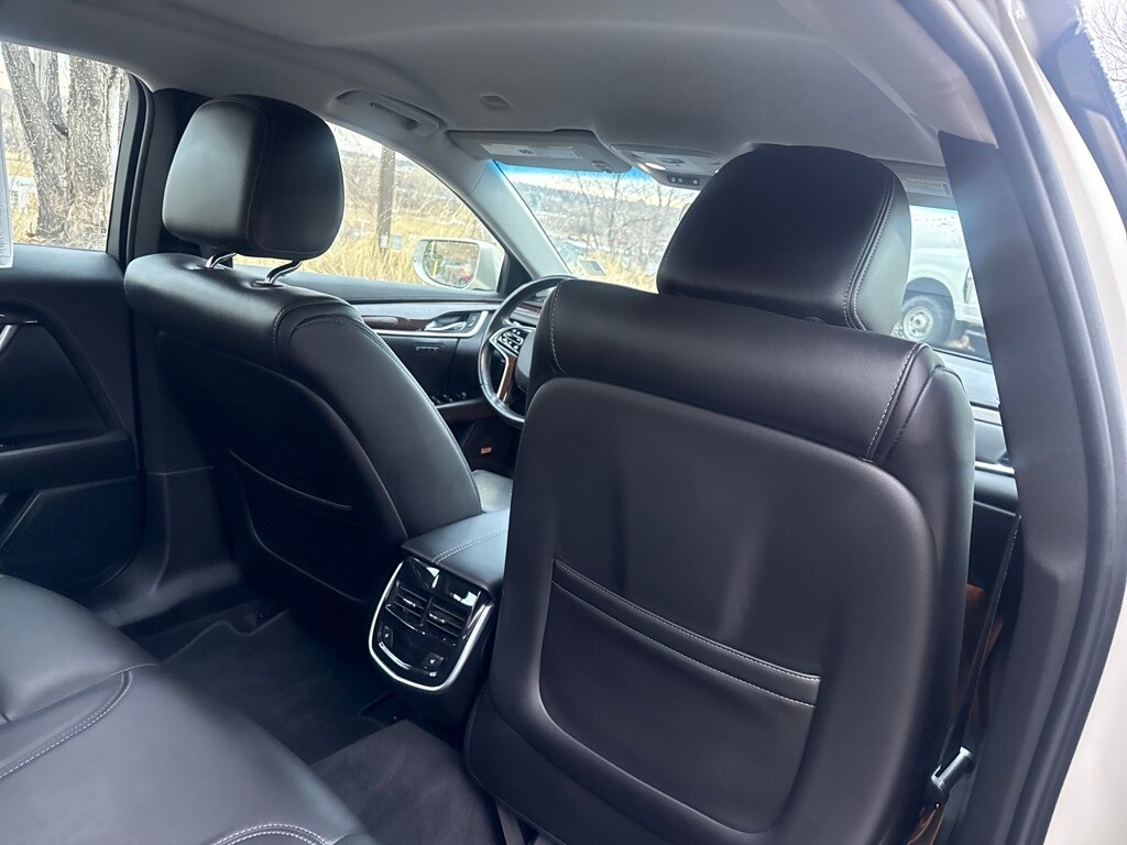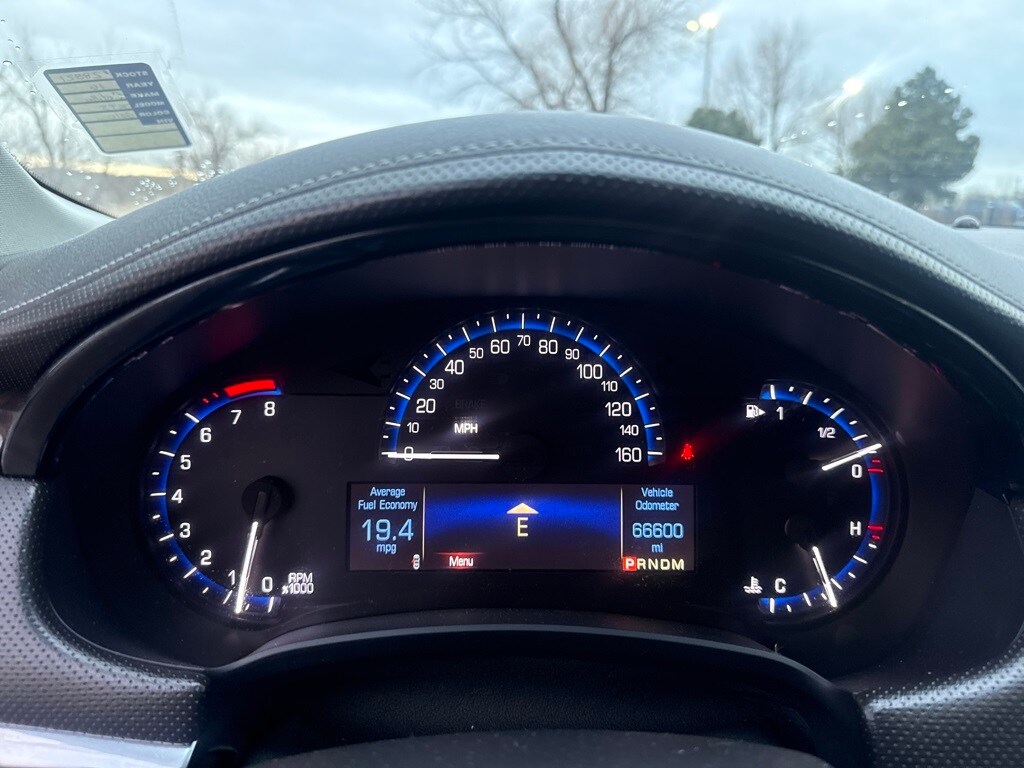 Preferred Equipment Group 1SB (All-Wheel Drive Drivetrain, Dual-Outlet Stainless-Steel Exhaust, Electronic Limited Slip Differential, Leather-Wrapped Steering Wheel, Power Variable-Effort Steering, and Upper & Lower Auxiliary Daytime Running Lamps), 19" x 8.5" Aluminum Wheels, 4-Way Driver Power Lumbar Control Seat Adjuster, 4-Way Front Passenger Power Lumbar Control, 4-Wheel Disc Brakes, 8 Speakers, ABS brakes, Adaptive suspension, Air Conditioning, Alloy wheels, AM/FM radio: SiriusXM, Apple CarPlay, Auto tilt-away steering wheel, Auto-dimming door mirrors, Auto-dimming Rear-View mirror, Auto-leveling suspension, Automatic temperature control, Bodyside moldings, Bose Premium 8-Speaker Audio System Feature, Brake assist, Bumpers: body-color, Compass, Delay-off headlights, Driver door bin, Driver vanity mirror, Dual front impact airbags, Dual front side impact airbags, Electronic Stability Control, Emergency communication system: OnStar Guidance, Exterior Parking Camera Rear, Four wheel independent suspension, Front anti-roll bar, Front Bucket Seats, Front Center Armrest w/Storage, Front dual zone A/C, Front License Plate Bracket, Front reading lights, Fully automatic headlights, Garage door transmitter, Genuine wood console insert, Genuine wood dashboard insert, Genuine wood door panel insert, Heated door mirrors, Heated front seats, Heated rear seats, Heated steering wheel, High-Intensity Discharge Headlights, Illuminated entry, Knee airbag, Leather Seating Surfaces, Leather Shift Knob, Leather steering wheel, Low tire pressure warning, Memory seat, Navigation System, Occupant sensing airbag, Outside temperature display, Overhead airbag, Panic alarm, Passenger door bin, Passenger vanity mirror, Power door mirrors, Power driver seat, Power passenger seat, Power steering, Power windows, Premium audio system: Cadillac CUE, Radio data system, Radio: Cadillac CUE Info/Media Ctrl w/Embedded Nav, Rain sensing wipers, Rear anti-roll bar, Rear reading lights, Rear seat center armrest, Rear side impact airbag, Rear window defroster, Remote keyless entry, Road Emergency Tool Kit, Security system, SiriusXM Satellite Radio & HD Radio, Speed control, Speed-sensing steering, Split folding rear seat, Spoiler, Steering wheel memory, Steering wheel mounted audio controls, Tachometer, Telescoping steering wheel, Tilt steering wheel, Traction control, Trip computer, Turn signal indicator mirrors, Variably intermittent wipers, Ventilated front seats, and Voltmeter.