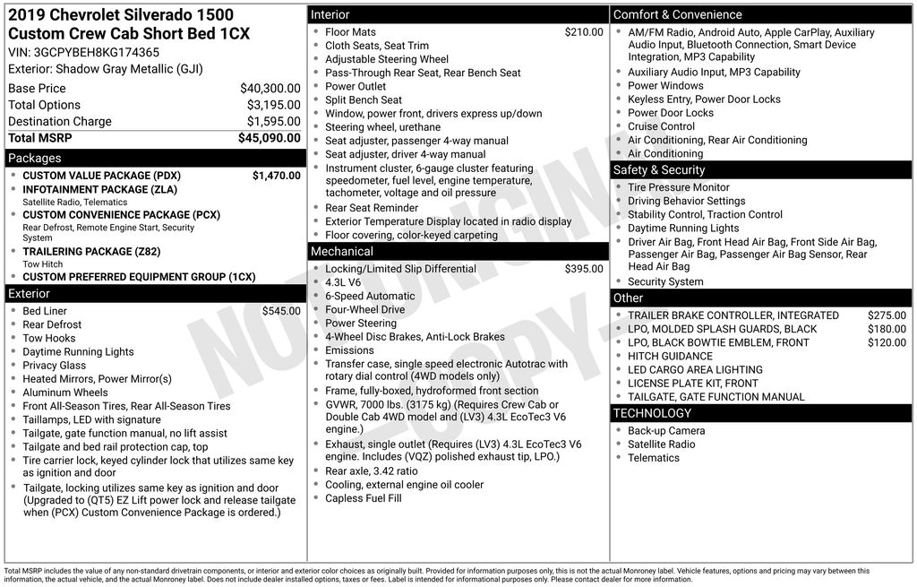 2019 Chevrolet Silverado 1500 Custom Shadow Gray Metallic 4WD 6-Speed Automatic Electronic with Overdrive EcoTec3 4.3L V6 6-Speed Automatic Electronic with Overdrive, 4WD, Jet Black Cloth.