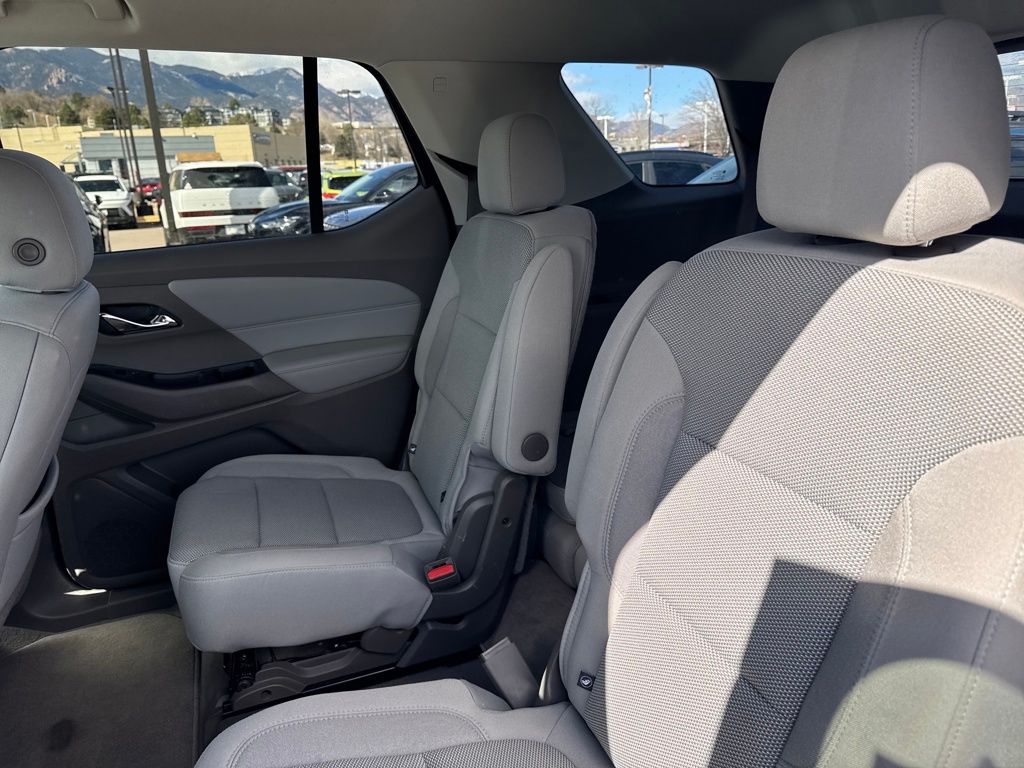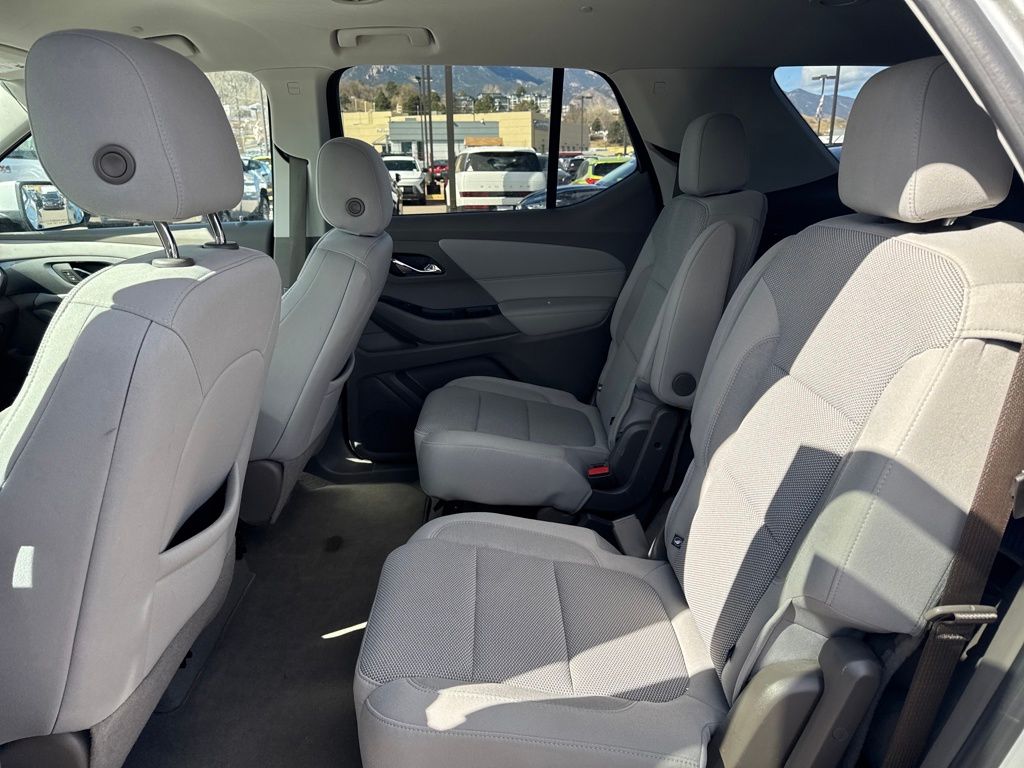 Front License Plate Bracket Mounting Package, Preferred Equipment Group 1LT, AWD, 3.49 Axle Ratio, 3rd row seats: split-bench, 4-Wheel Disc Brakes, 6 Speakers, 7-Passenger Seating (2-2-3 Seating Configuration), ABS brakes, Air Conditioning, Alloy wheels, AM/FM radio: SiriusXM, Apple CarPlay/Android Auto, Automatic temperature control, Brake assist, Bumpers: body-color, Compass, Delay-off headlights, Driver door bin, Driver vanity mirror, Dual front impact airbags, Dual front side impact airbags, Electronic Stability Control, Emergency communication system: OnStar and Chevrolet connected services capable, Four wheel independent suspension, Front anti-roll bar, Front Bucket Seats, Front Center Armrest, Front dual zone A/C, Front fog lights, Front reading lights, Fully automatic headlights, Garage door transmitter, Heated door mirrors, Heated front seats, High-Intensity Discharge Headlights, Illuminated entry, Leather steering wheel, Low tire pressure warning, Occupant sensing airbag, Outside temperature display, Overhead airbag, Overhead console, Panic alarm, Passenger door bin, Passenger vanity mirror, Power door mirrors, Power driver seat, Power Liftgate, Power steering, Power windows, Premium Cloth Seat Trim, Radio data system, Radio: Chevrolet Infotainment 3 Plus System, Rear air conditioning, Rear anti-roll bar, Rear reading lights, Rear window defroster, Rear window wiper, Remote keyless entry, Roof rack: rails only, Security system, SiriusXM w/360L, Speed control, Speed-sensing steering, Spoiler, Steering wheel mounted audio controls, Tachometer, Telescoping steering wheel, Tilt steering wheel, Traction control, Trip computer, Turn signal indicator mirrors, Variably intermittent wipers, Voltmeter, and Wheels: 18" Bright Silver Painted Aluminum.