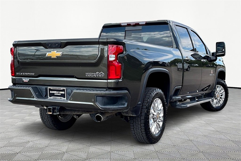 Silverado 3500HD High Country, 4D Crew Cab, 6.6L V8, 6-Speed Automatic, 4WD, Greenstone Metallic, Jet Black/Umber Leather, 12-Volt Rear Auxiliary Power Outlet, 120-Volt Bed Mounted Power Outlet, 120-Volt Instrument Panel Power Outlet, 170 Amp Alternator, 2nd Row Dual USB Charge-Only Ports, 6 Rectangular Chromed Tubular Assist Steps, 8 Driver Information Center, Advanced Trailering System, Auto-Dimming Inside Rear-View Mirror, Bed View Camera w/2 Trailer Camera Provisions, Bluetooth® For Phone, Chevrolet Connected Access Capable, Chevytec Spray-On Black Bedliner w/Chevrolet Logo, Chrome Front Grille Bar w/Chrome Grille Inserts, Chrome Mirror Caps, Color-Keyed Carpeting Floor Covering, Compass Located In Instrument Cluster, Deep-Tinted Glass, Electric Rear-Window Defogger, Electrical Lock Control Steering Column, Front Carpeted Floor Mats, Front Chrome Recovery Hooks, Front LED Fog Lamps, HD Surround Vision w/2 Trailer View Camera Provisions, Heated Steering Wheel, Hitch Guidance w/Hitch View, Integrated Trailer Brake Controller, Keyless Open & Start, Lane Change Alert w/Side Blind Zone Alert, Leather-Wrapped Steering Wheel, LED Cargo Area Lighting, Manual Tilt/Telescoping Steering Column, OnStar & Chevrolet Connected Services Capable, Polished Exhaust Tip, Power Door Locks, Power Front Passenger Windows w/Express Up/Down, Power Front Windows w/Driver Express Up/Down, Power Rear Windows w/Express Down, Power Sliding Rear Window w/Defogger, Power-Adjustable Outside Mirrors, Preferred Equipment Group 3LZ, Rear Carpeted Floor Mats, Rear Cross Traffic Alert, Rear Wheelhouse Liners, Remote Vehicle Starter System, SiriusXM w/360L, Standard Tailgate, Steering Wheel Audio Controls, Steering Wheel Mounted Electronic Cruise Control, Unauthorized Entry Theft-Deterrent System, Universal Home Remote, Up-Level Rear Seat w/Storage Package, Wi-Fi Hotspot Capable, Wireless Charging, Wireless Phone Projection.