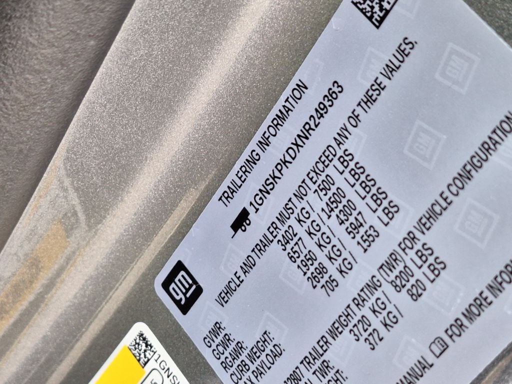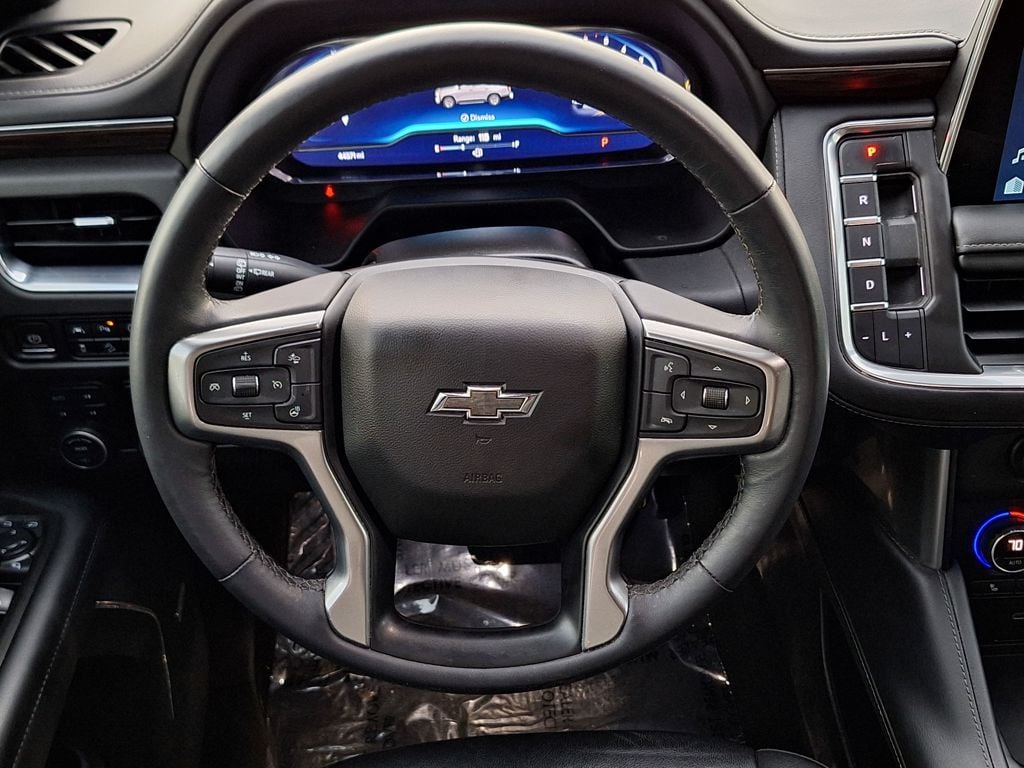 Advanced Trailering Package (Hitch Guidance w/Hitch View, Integrated Trailer Brake Controller, and Smart Trailer Integration Indicator), Driver Alert Package (Lane Change Alert w/Side Blind Zone Alert and Rear Cross Traffic Alert), License Plate Front Mounting Package, Luxury Package (2nd Row Pwr Release 60/40 Split-Folding Bench Seat, 3rd Row 60/40 Power-Folding Split-Bench Seat, HD Surround Vision, Heated 2nd Row Outboard Seats, Heated Steering Wheel, Memory Settings, Outside Heated Power-Adjustable Mirrors, Power Tilt & Telescopic Steering Column, and Rear Pedestrian Alert), Max Trailering Package (Extra Capacity Cooling System), Off-Road Capability Package (Air Ride Adaptive Suspension, Electronic Limited-Slip Differential, and Magnetic Ride Control Suspension), Preferred Equipment Group 2Z7 (1st & 2nd Row Color-Keyed Carpeted Floor Mats, 2-Speed Active Electronic AutoTrac Transfer Case, Auto-Dimming Inside Rear-View Mirror, Automatic Stop/Start, Black Tubular Assist Steps, Bose 9-Speaker Stereo Audio System Feature, Bright Front & Rear Door Sill Plates, Color-Keyed Carpeting Floor Covering, Driver & Front Outboard Passenger Airbags, Enhanced Driver Information Center, Floor Console w/Storage Area, Front High-Approach Angle Fascia, Hands-Free Rear Power Programmable Liftgate, Hill Descent Control, Infotainment Display, Leather-Wrapped Steering Wheel, LED Daytime Running Lamps, Memory Settings for Driver, Red Horizontal-Mounted Recovery Hooks, Remote Start, SiriusXM Radio w/360L, Start/Stop System Disable Button, Universal Home Remote, and Wireless Charging), Z71 Off-Road Package, 4WD, Black Leather, 10-Way Power Driver & Passenger Seat Adjusters, 3.23 Rear Axle Ratio, 3rd row seats: split-bench, 4-Wheel Disc Brakes, 9 Speakers, ABS brakes, Air Conditioning, Alloy wheels, AM/FM radio: SiriusXM with 360L, Apple CarPlay/Android Auto, Auto High-beam Headlights, Auto-dimming Rear-View mirror, Automatic temperature control, Brake assist, Bumpers: body-color, Compass, Delay-off headlights, Driver door bin, Driver vanity mirror, Dual front impact airbags, Dual front side impact airbags, Dual-Pane Power Panoramic Sunroof, Electronic Stability Control, Emergency communication system: OnStar and Chevrolet connected services capable, Four wheel independent suspension, Front anti-roll bar, Front Bucket Seats, Front Center Armrest, Front dual zone A/C, Front High-Back Reclining Bucket Seats, Front reading lights, Fully automatic headlights, Garage door transmitter, Heated door mirrors, Heated Driver & Front Passenger Seats, Heated front seats, Illuminated entry, Leather steering wheel, Leather-Appointed Seat Trim, Low tire pressure warning, Memory seat, Navigation System, Not Equipped w/Front & Rear Park Assist, Not Equipped w/Heated Rear Outboard Seats, Not Equipped w/Heated Steering Wheel (DISC), Not Equipped w/Heated/Ventilated Front Seats, Not Equipped w/Steering Column Lock, Occupant sensing airbag, Outside temperature display, Overhead airbag, Overhead console, Panic alarm, Passenger door bin, Passenger vanity mirror, Power door mirrors, Power driver seat, Power Liftgate, Power passenger seat, Power Release 2nd Row Bucket Seats, Power steering, Power windows, Premium audio system: Chevrolet Infotainment System 3, Premium Smooth Ride Suspension, Radio: Chevrolet Infotainment 3 Premium System, Rain sensing wipers, Rear air conditioning, Rear anti-roll bar, Rear reading lights, Rear