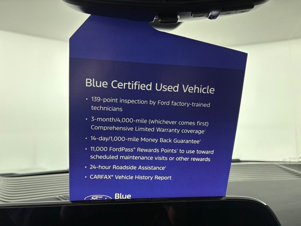 139 point vehicle inspection performed by an ASE Certified technician 3-month/4,000-mile Comprehensive Limited Warranty coverage that is fully competitive with other online retailers Blue Certification includes 11,000 FordPass Rewards Points For other manufacturers not listed above, Comprehensive Coverage is provided for 3 months or 4,000 miles, whichever comes first, from the signature date of the Ford Blue Advantage â" Blue Certified purchase. Comprehensive Limited Warranty covering 1,000+ components Travel expense reimbursement Rental car reimbursement SiriusXM 3 month tria. Recent Arrival! Odometer is 1232 miles below market average!