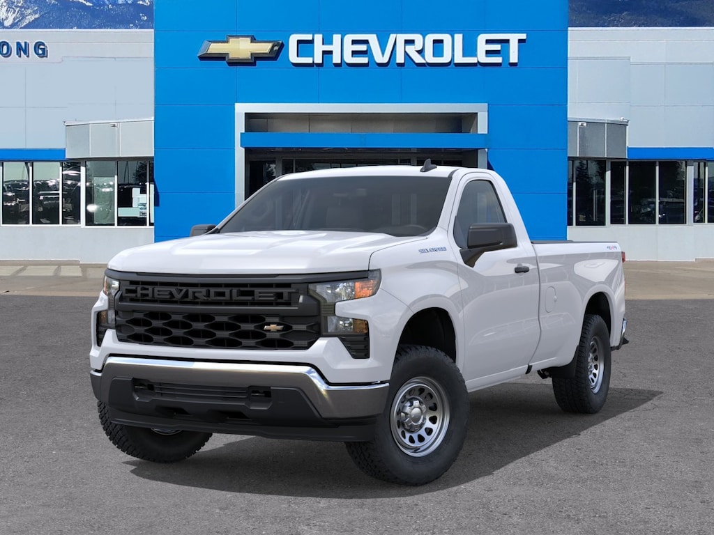 Preferred Equipment Group 1WT (3.5 Monochromatic Display Driver Info Center, 4-Way Manual Driver Seat Adjuster, 40/20/40 Front Split Bench Seat, Black (Semi-Gloss) Front Bumper, Black (Semi-Gloss) Rear Bumper, Bluetooth® For Phone, Electronic Cruise Control, Front Frame-Mounted Black Recovery Hooks, HD Rear Vision Camera, Heated Power-Adjustable Outside Mirrors, Inside Rearview Mirror with Tilt, Locking Tailgate, Manual Tailgate Function with No EZ Lift, Manual Tilt Wheel Steering Column, OnStar Services Capable, Power Front Windows with Driver Express Up/Down, Remote Keyless Entry, Rubberized-Vinyl Floor Covering, SiriusXM Delete, Solar Absorbing Tinted Glass, Standard Tailgate, Teen Driver, Tire Pressure Monitoring System, Vinyl Seat Trim, Wheels: 17 x 8 Ultra Silver Painted Steel, and Wi-Fi Hot Spot Capable), Standard Suspension Package, Trailering Package (Hitch Guidance), WT Convenience Package (Deep-Tinted Glass and Electric Rear-Window Defogger), WT Value Package, 8-Speed Automatic, 4WD, Black Cloth, 120-Volt Bed Mounted Power Outlet, 120-Volt Interior Power Outlet, 2 Speakers, 2-Speaker Audio System, 220 Amp Alternator, 3.42 Rear Axle Ratio, 4-Wheel Disc Brakes, ABS brakes, Air Conditioning, AM/FM radio, Apple CarPlay/Android Auto, Auto High-beam Headlights, Auto-Locking Rear Differential, Automatic Emergency Braking, Brake assist, Chevytec Spray-on Black Bedliner, Compass, Delay-off headlights, Deleted Mobile Service Plus, Driver door bin, Dual front impact airbags, Dual front side impact airbags, Electronic Stability Control, Emergency communication system: OnStar, EZ Lift Power Lock and Release Tailgate, Following Distance Indicator, Forward Collision Alert, Front anti-roll bar, Front Center Armrest w/Storage, Front Chrome Bumper, Front License Plate Kit, Front Pedestrian Braking, Front reading lights, Front wheel independent suspension, Fully automatic headlights, Heated door mirrors, Illuminated entry, Integrated Trailer Brake Controller, IntelliBeam Automatic High Beam on/Off, Lane Keep Assist with Lane Departure Warning, Low tire pressure warning, Occupant sensing airbag, Outside temperature display, Overhead airbag, Overhead console, Panic alarm, Passenger door bin, Passenger vanity mirror, Power door mirrors, Power steering, Power windows, Premium audio system: Chevrolet Infotainment 3, Radio data system, Radio: Chevrolet Infotainment 3 System, Rear Chrome Bumper, Rear reading lights, Rear step bumper, Remote keyless entry, Speed control, Speed-sensing steering, Tachometer, Tilt steering wheel, Traction control, Trip computer, Variably intermittent wipers, and Voltmeter.