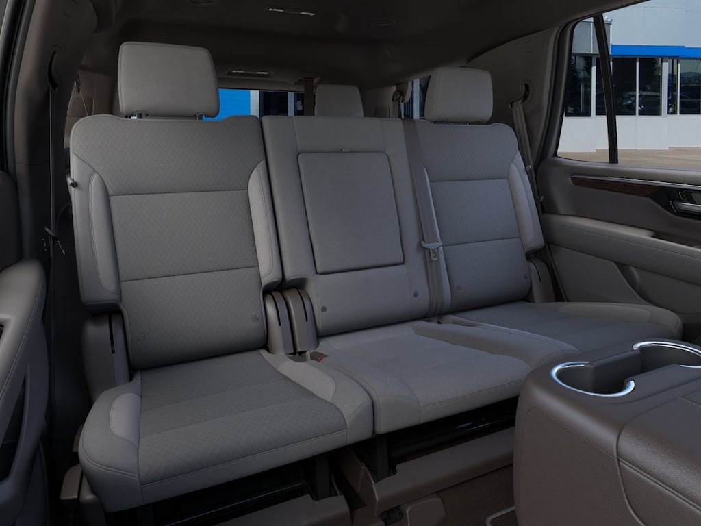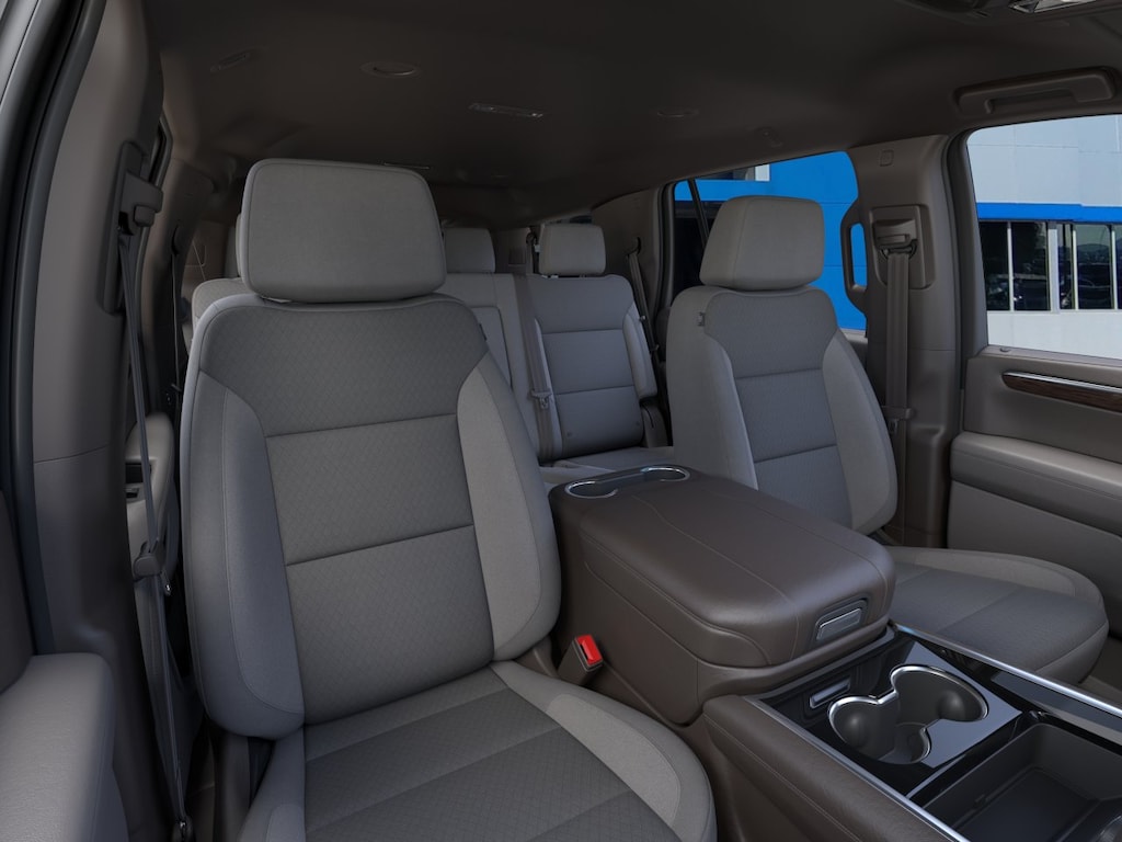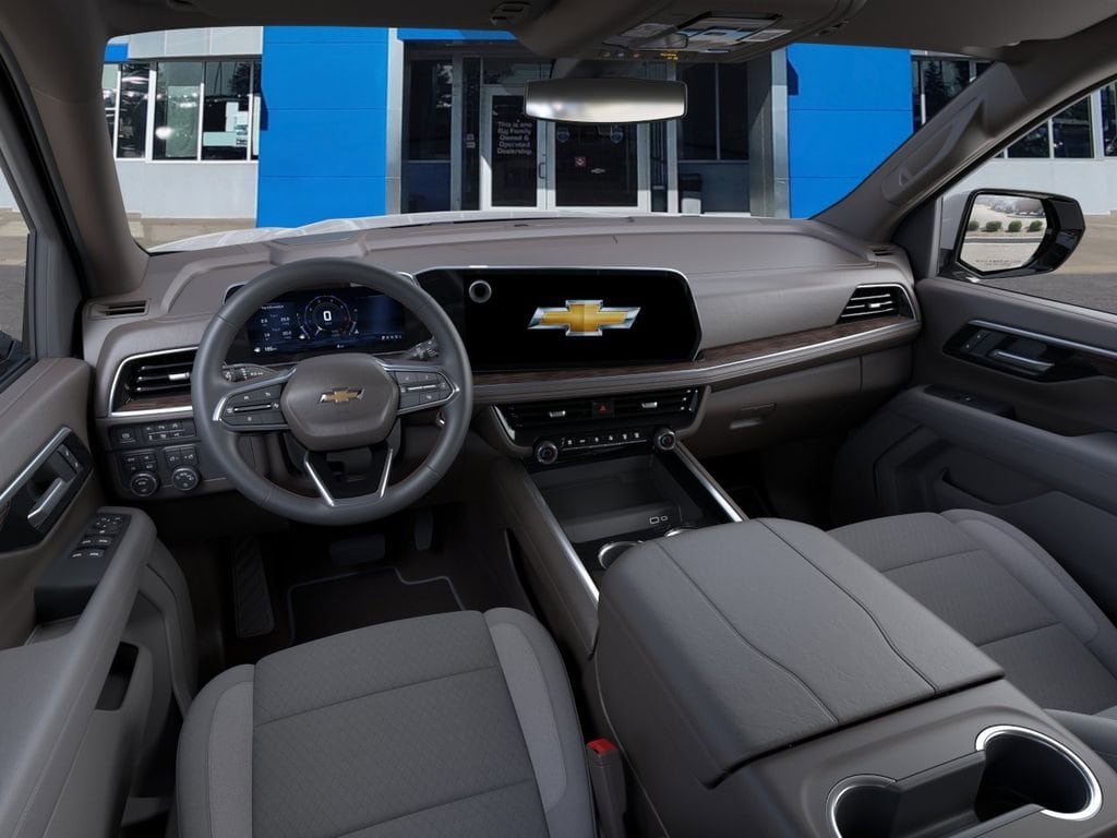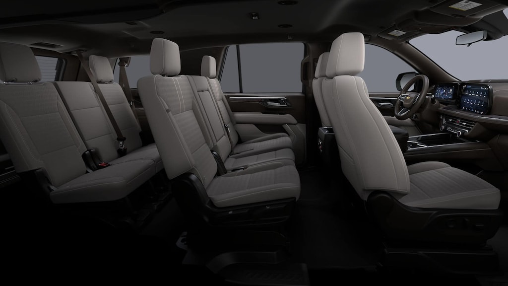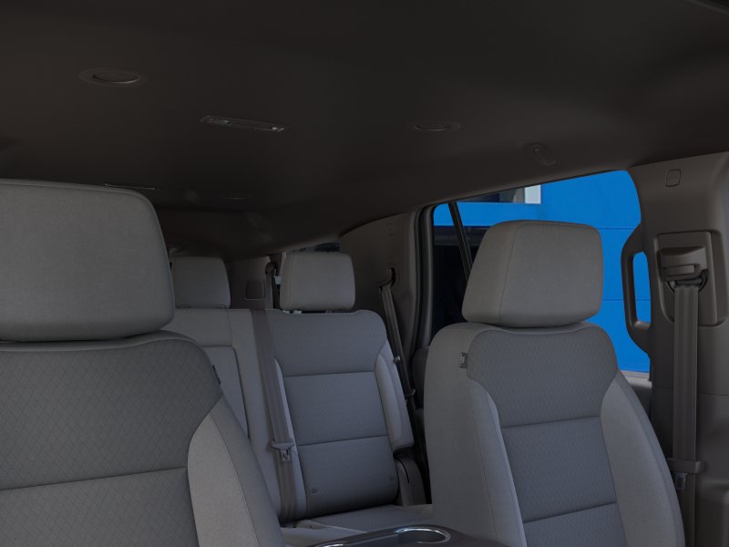 License Plate Front Mounting Package, Preferred Equipment Group 1LS (1st and 2nd Row Color-Keyed Carpeted Floor Mats, 3-Spoke Wrapped Steering Wheel, 3rd Row Manual 60/40 Split-Folding Bench Seats, Color-Keyed Carpeting Floor Covering, Floor Console with Storage Area, Front Bucket Seats, Frontal Driver and Outboard Passenger Airbags, Key Card, Remote Start, SiriusXM with 360L Trial Subscription, and USB Ports), 4WD, Gideon/Very Dark Atmosphere Cloth, 2-Way Power Driver Lumbar Seat Adjuster, 2-Way Power Front Passenger Lumbar Seat Adjuster, 3.23 Rear Axle Ratio, 3rd row seats: split-bench, 4-Wheel Disc Brakes, 6 Speakers, 6-Speaker Audio System Feature, 6-Way Power Front Passenger Seat Adjuster, 8-Way Power Driver Seat Adjuster, ABS brakes, Air Conditioning, Alloy wheels, AM/FM radio: SiriusXM with 360L, Apple CarPlay/Android Auto, Auto High-beam Headlights, Automatic temperature control, Brake assist, Bumpers: body-color, Compass, Delay-off headlights, Deleted Mobile Service Plus, Driver door bin, Driver vanity mirror, Dual front impact airbags, Dual front side impact airbags, Electronic Stability Control, Emergency communication system: OnStar and Chevrolet connected services capable, Exterior Parking Camera Rear, Four wheel independent suspension, Front anti-roll bar, Front Center Armrest, Front dual zone A/C, Front reading lights, Fully automatic headlights, Heated door mirrors, Illuminated entry, Low tire pressure warning, Navigation system: Google built-in compatibility (select service plan required, terms and limitations apply), Occupant sensing airbag, Outside temperature display, Overhead airbag, Overhead console, Panic alarm, Passenger door bin, Passenger vanity mirror, Power door mirrors, Power driver seat, Power passenger seat, Power steering, Power windows, Premium audio system: Chevrolet Infotainment 3, Premium Cloth Seat Trim, Premium Smooth Ride Suspension, Radio data system, Radio: 17.7 Diagonal Advanced Color LCD Display, Rain sensing wipers, Rear air conditioning, Rear anti-roll bar, Rear reading lights, Rear seat center armrest, Rear window defroster, Rear window wiper, Remote keyless entry, Security system, Speed control, Speed-sensing steering, Split folding rear seat, Spoiler, Steering wheel mounted audio controls, Tachometer, Telescoping steering wheel, Tilt steering wheel, Traction control, Trip computer, Variably intermittent wipers, Voltmeter, and Wheels: 18 x 8.5 Bright Silver Painted Aluminum.