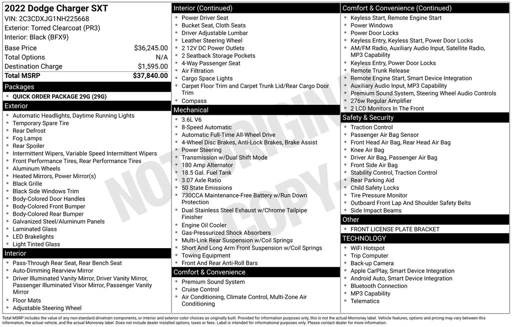 Torred Clearcoat 2022 Dodge Charger SXT AWD 8-Speed Automatic 3.6L V6 SMPI DOHC 24V LEV II 300hp 18/27 City/Highway MPG