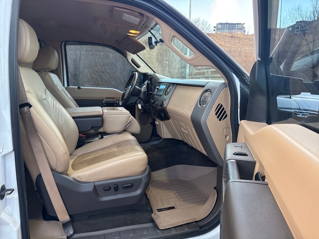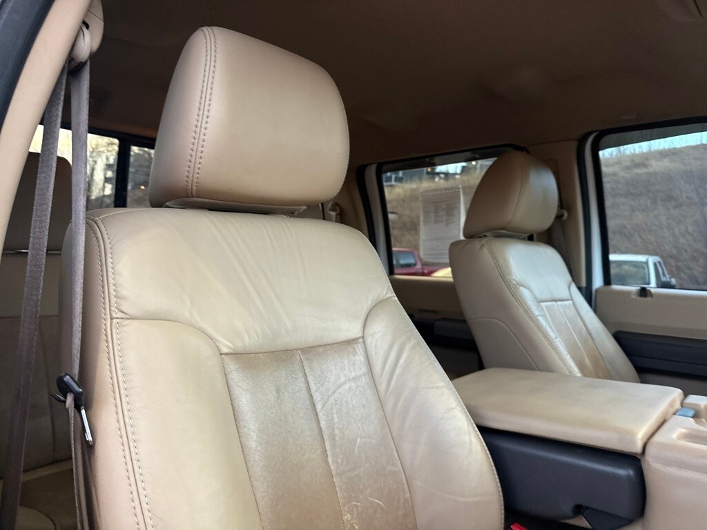 FX4 Off-Road Package, GVWR: 10,000 lb Payload Package, Order Code 608A, Power Stroke 6.7L V8 DI 32V OHV Turbodiesel, 4WD, 4-Wheel Disc Brakes, 5" Chrome Tubular Step Bars, 9 Speakers, ABS brakes, Adjustable pedals, Air Conditioning, Alloy wheels, AM/FM radio: SIRIUS, Auto-dimming Rear-View mirror, Automatic temperature control, Bodyside Molding, Brake assist, Bumpers: chrome, CD player, Compass, Delay-off headlights, Driver door bin, Driver vanity mirror, Dual front impact airbags, Dual front side impact airbags, Electronic Stability Control, Engine Block Heater, Front anti-roll bar, Front Bucket Seats, Front Center Armrest, Front dual zone A/C, Front fog lights, Front reading lights, Fully automatic headlights, Heated door mirrors, Illuminated entry, Leather steering wheel, Low tire pressure warning, Outside temperature display, Overhead airbag, Overhead console, Panic alarm, Passenger door bin, Passenger vanity mirror, Power door mirrors, Power driver seat, Power passenger seat, Power steering, Power windows, Premium Leather Seating Surfaces 40/Console/40, Radio data system, Radio: Premium AM/FM Stereo w/Single-CD/MP3 Player, Rear Parking Sensors, Rear reading lights, Rear seat center armrest, Rear step bumper, Remote keyless entry, Satellite Radio, Security system, Speed control, Split folding rear seat, Steering wheel mounted audio controls, Tachometer, Telescoping steering wheel, Tilt steering wheel, Traction control, Trip computer, Turn signal indicator mirrors, and Variably intermittent wipers.