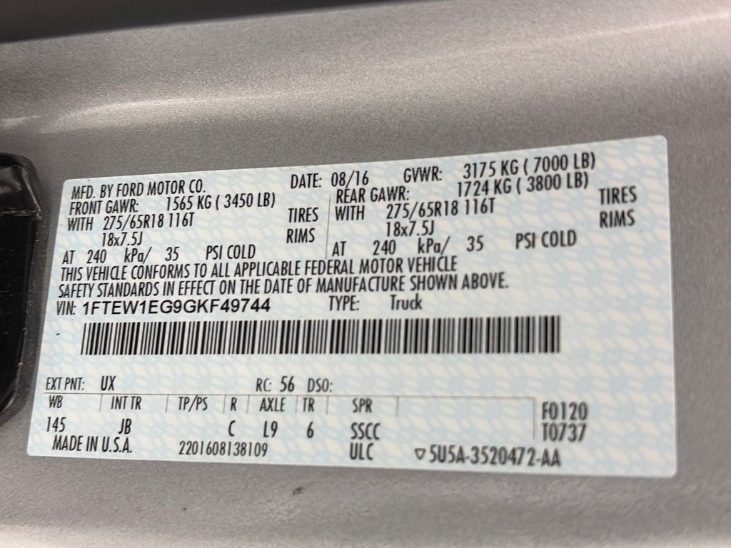 EQUIPMENT GROUP 302A LUXURY Radio: Single-CD w/SiriusXM Satellite, SiriusXM US satellite service is available in the 48 contiguous United States and D.C, 7 speakers, Rear View Camera w/Dynamic Hitch Assist, Class IV Trailer Hitch Receiver, towing capability up to 5,000 lbs, smart trailer tow connector and 4-pin/7-pin wiring harness, XLT Chrome Appearance Package, 2 chrome front tow hooks, Single-Tip Chrome Exhaust, Tires: P275/65R18 OWL Automatic Transmission, Chrome Door & Tailgate Handles w/Body-Color Bezel, bezel on side doors and black on tailgate, Wheels: 18 Chrome-Like PVD, Chrome Billet Style Grille w/Chrome Surround, black mesh insert, Chrome Step Bars, Leather-Wrapped Steering Wheel, Remote Start System, 10-Way Power Drivers & Passenger Seats, SYNC 3, Enhanced voice recognition communications and, ENGINE: 3.5L V6 ECOBOOST 3.31 Axle Ratio, GVWR: 7,000 lbs Payload Package, MAX TRAILER TOW PACKAGE max towing capability up to 12,200 lbs, and upgraded rear bumper, Note: Ordering the Max Trailer Tow Package does not include Trailer Tow Mirrors, Trailer Tow Mirrors are a standalone option and must be ordered separately, (Option Code: 54M or 54Y/59S), Auxiliary Transmission Oil Cooler, Pro Trailer Backup Assist, tailgate LED and 4.2 LCD productivity screen in instrument cluster, Integrated Trailer Brake Controller, Electronic Locking w/3.55 Axle Ratio, Class IV Trailer Hitch Receiver, towing capability up to 5,000 lbs, smart trailer tow connector and 4-pin/7-pin wiring harness, Upgraded Front Stabilizer Bar, VOICE-ACTIVATED NAVIGATION SiriusXM Traffic and Travel Link in the 48 Contiguous United States and D.C, Note: Subscriptions to all SiriusXM services are sold by SiriusXM, Subscriptions are governed by SiriusXM Customer Agreement; see www.siriusxm.com, XLT SPORT APPEARANCE PACKAGE unique interior finish, Box Side Decal, Single-Tip Chrome Exhaust, Tires: P275/65R18 OWL Automatic Transmission, Body-Color Door & Tailgate Handles, body-color bezel on side doors and black on tailgate, Wheels: 18 6-Spoke Machined-Aluminum, magnetic painted pockets, Accent-Color Step Bars, Body-Color Front & Rear Bumpers, body-color front fascia and wheellip moldings, Black Billet Style Grille w/Body-Color Surround, black mesh insert. Ford XLT with Ingot Silver Metallic exterior and Black interior features a V6 Cylinder Engine with 365 HP at 5000 RPM*.