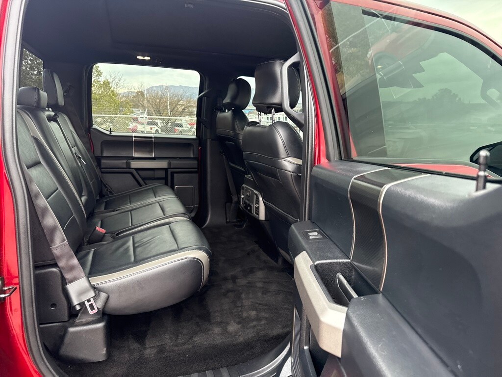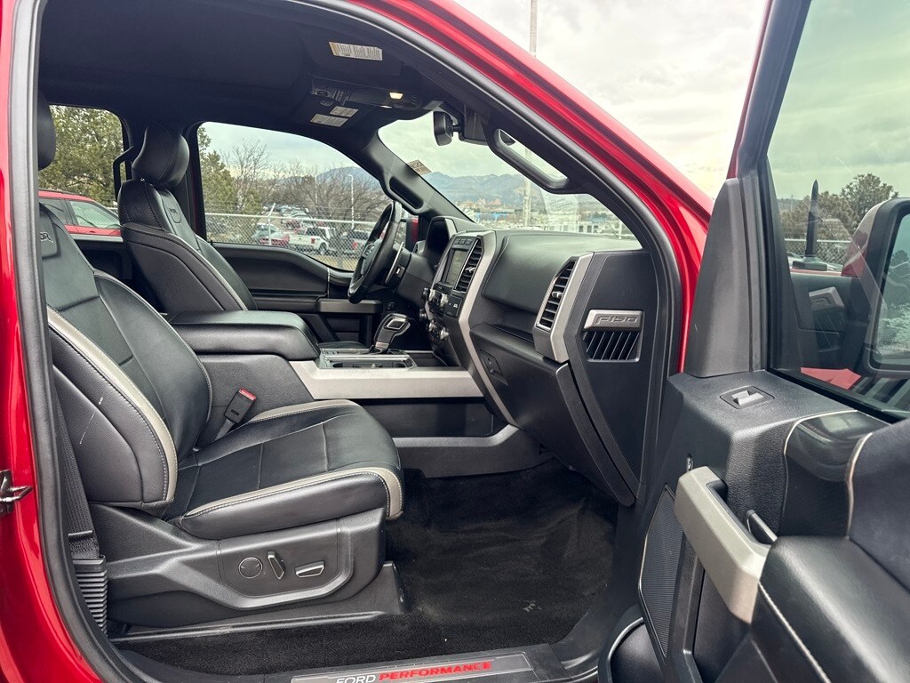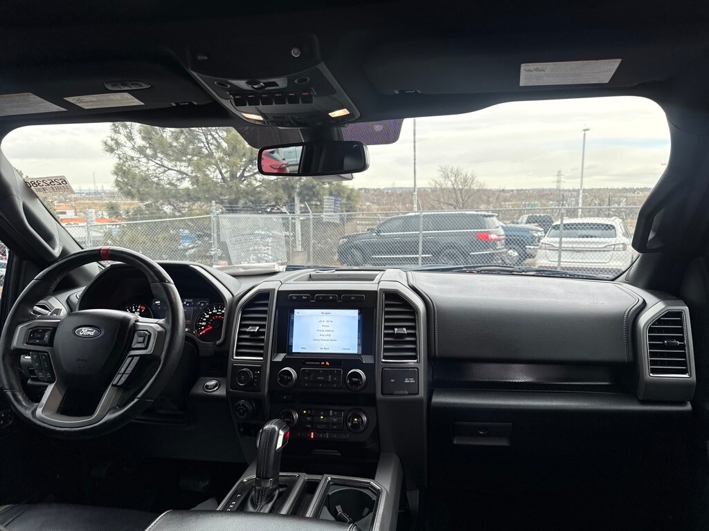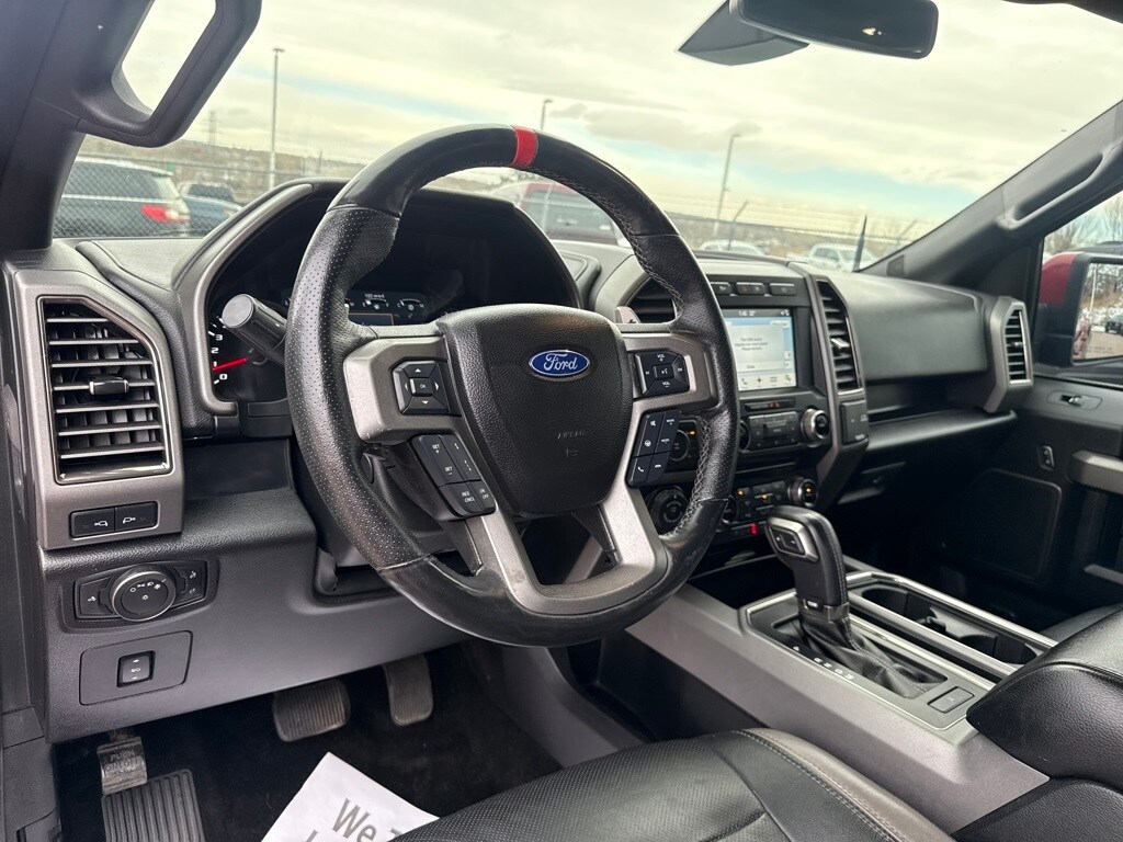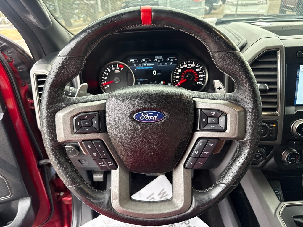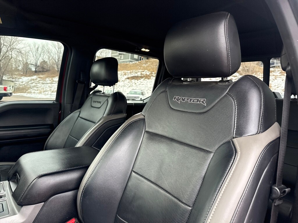 Equipment Group 802A Luxury (10-Way Power Driver & Passenger Seats, 360 Degree Camera, 4.10 Front Axle w/Torsen Differential, Advanced Security Pack, Ambient Lighting, BLIS Blind Spot Information System, Dual-Zone Electronic Automatic Temperature Control, Inflatable Rear Safety Belts, Integrated Trailer Brake Controller, Intelligent Access w/Push-Button Start, LED Box Lighting, LED Side-Mirror Spotlights, Memory System (Seat, Pedal, Exterior Mirror), Power Glass Heated Sideview Mirrors, Power Tilt/Telescoping Steering Column w/Memory, Power-Adjustable Pedals, Power-Sliding Rear Window, Pro Trailer Backup Assist, Radio: Sony Single CD w/HD & SiriusXM Satellite, Remote Start System w/Remote Tailgate Release, SYNC 3, SYNC Connect, Universal Garage Door Opener, and Voice-Activated Navigation), Exterior Graphics Package, Hood Graphics Package, Raptor Technology Package (Adaptive Cruise Control w/Collision Mitigation, Auto High Beam, and Lane-Keeping System), 4WD, 17" Cast Aluminum Wheels, 4-Wheel Disc Brakes, 7 Speakers, 8-Way Power Driver's Seat w/Power Lumbar, ABS brakes, Air Conditioning, Alloy wheels, AM/FM radio: SiriusXM, Auto-dimming Rear-View mirror, Brake assist, CD player, Compass, Delay-off headlights, Driver door bin, Driver vanity mirror, Dual front impact airbags, Dual front side impact airbags, Electronic Locking w/4.10 Axle Ratio, Electronic Stability Control, Exterior Parking Camera Rear, Foldable Pickup Box Bed Extender, Front anti-roll bar, Front Bucket Seats, Front Center Armrest, Front fog lights, Front reading lights, Front wheel independent suspension, Fully automatic headlights, Heated Leather 40/Console/40 Front Seats, Illuminated entry, Leather steering wheel, Low tire pressure warning, Occupant sensing airbag, Outside temperature display, Overhead airbag, Overhead console, Panic alarm, Passenger door bin, Passenger vanity mirror, Power door mirrors, Power driver seat, Power steering, Power windows, Radio data system, Rear Parking Sensors, Rear reading lights, Rear step bumper, Rear window defroster, Remote keyless entry, Security system, Speed control, Speed-sensing steering, Split folding rear seat, Spray-In Bedliner (Pre-Installed), Steering wheel mounted audio controls, SYNC, Tachometer, Tailgate Applique, Tailgate Step w/Tailgate Lift Assist, Telescoping steering wheel, Tilt steering wheel, Traction control, Trip computer, Twin Panel Moonroof, Unique Cloth/Leather Trim Seats, and Variably intermittent wipers.