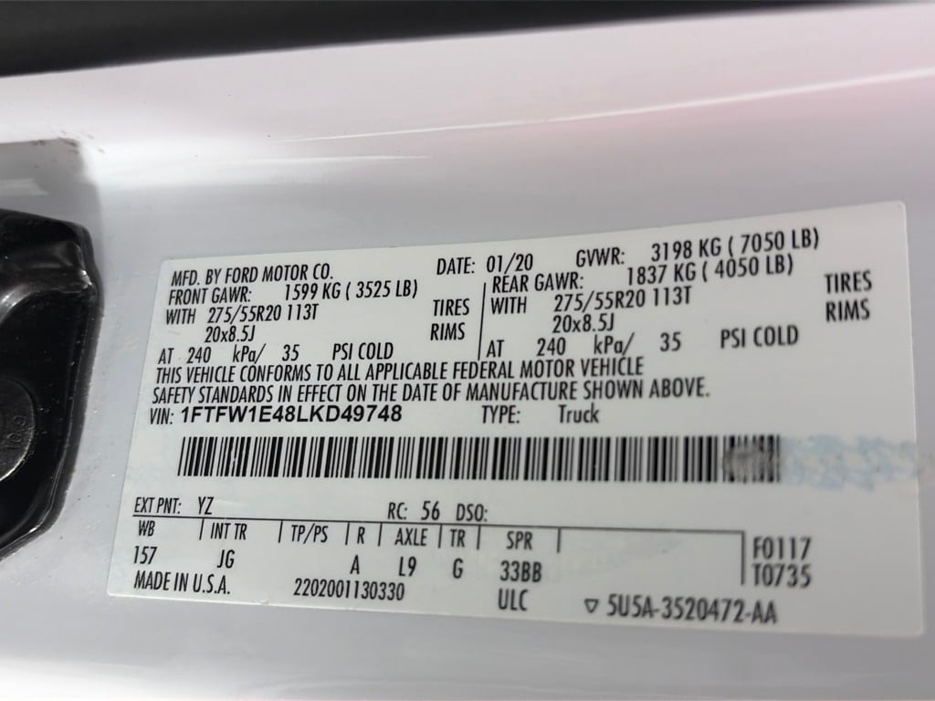 EQUIPMENT GROUP 101A MID XL Power Equipment Group, Power Door Locks, flip key and integrated key transmitter keyless-entry (includes Autolock), MyKey, Power Glass Sideview Mirrors w/Black Skull Caps, manual-folding, Power Front & Rear Windows, Power Tailgate Lock, Illuminated Entry, Perimeter Alarm, 4.2 Productivity Screen in Instrument Cluster, compass, FordPass Connect (4G), 4G LTE Wi-Fi hotspot connects up to 10 devices, remotely start, lock and unlock vehicle, schedule specific times to remotely start vehicle, locate parked vehicle and check vehicle status, Note: Ford Telematics and Data Services Prep included for Fleet ONLY: FordPass Connect 4G Wi-Fi Modem provides data to support telematics and data services including but not limited to vehicle location, speed, idle time, fuel, STX APPEARANCE PACKAGE Box Side Decals, Fog Lamps, Tires: P275/55R20 BSW AT, 265/70R17 BSW all-terrain spare tire, SYNC 3, enhanced voice recognition communications and entertainment system, 8 LCD touchscreen in center stack w/swipe capability, AppLink, 911 Assist, Apple CarPlay® and Android Auto® compatibility and 2 smart charging USB ports, Wheels: 20 Machined-Aluminum, flash gray painted pockets, Body-Color Surround w/Black Mesh Insert Grille, black mesh insert, Manual Driver/Passenger Lumbar, Rear Window Fixed Privacy Glass, Driver/Passenger Seat Back Pocket, Body-Color Front & Rear Bumpers, body-color front fascia, Rear Window Defroster, ENGINE: 3.5L V6 ECOBOOST auto start-stop technology, ELECTRONIC LOCKING W/3.55 AXLE RATIO, BLACK PLATFORM RUNNING BOARDS, TRANSMISSION: ELECTRONIC 10-SPEED AUTOMATIC selectable drive modes: normal/tow-haul/snow-wet/EcoSelect/sport (STD). Ford XL with Oxford White exterior and Black / Medium Earth Gray interior features a V6 Cylinder Engine with 395 HP at 5750 RPM*.