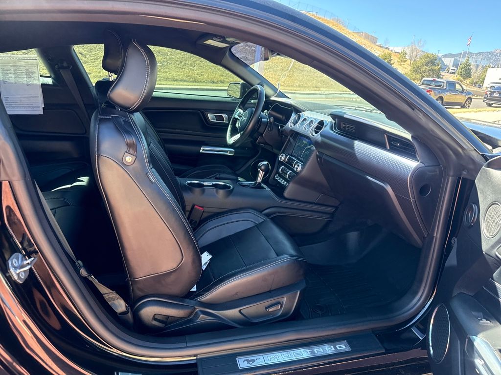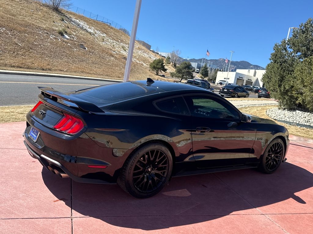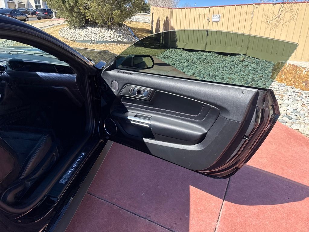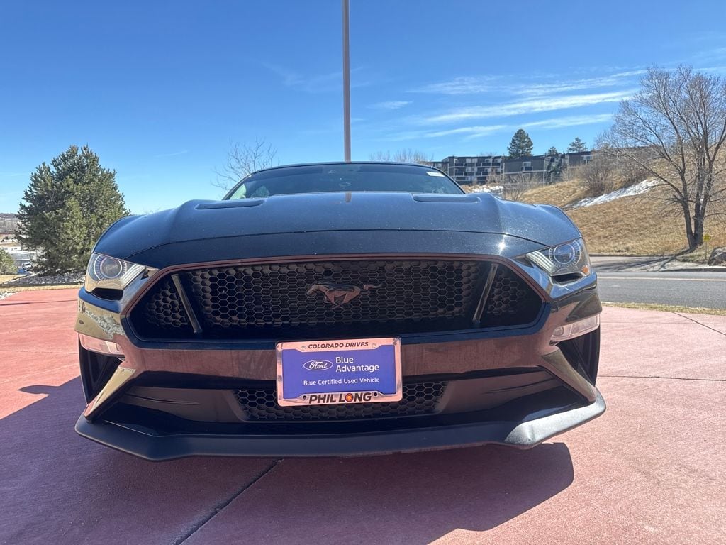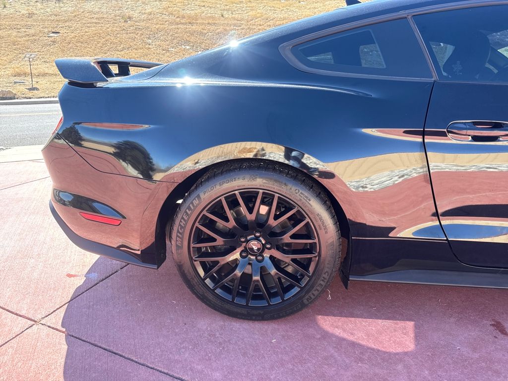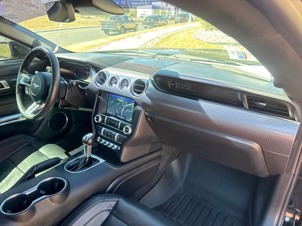 Enhanced Security Package (Active Anti-Theft System and Wheel Locking Kit), Equipment Group 401A (Blind Spot Info System w/Cross-Traffic Alert, Leather Bucket Seats w/Color Accents, and Memory Driver Seat, Mirrors & Ambient Lighting), Ford Safe & Smart Package (Adaptive Cruise Control, Automatic High Beam, Lane-Keeping System, Pre-Collision Assist w/Pedestrian Detection, and Rain-Sensing Windshield Wipers), GT Performance Package (Engine Spun Aluminum Instrument Panel, Gauge Pack (Oil Pressure & Vacuum), Heavy-Duty Front Springs, Larger Brake Rotors, Larger Radiator, Unique Stability Control, and Wheels: 19" x 9" Fr & 19" x 9.5" Rr Ebony Black), Premium Plus Package (Voice-Activated Touch-Screen Navigation System), Bumpers: body-color, Front Bucket Seats, Split folding rear seat, Tachometer, Telescoping steering wheel, 4-Wheel Disc Brakes, ABS brakes, Active Valve Performance Exhaust, Air Conditioning, Alloy wheels, AM/FM Stereo, Auto-dimming Rear-View mirror, Brake assist, Compass, Delay-off headlights, Driver door bin, Driver vanity mirror, Dual front impact airbags, Dual front side impact airbags, Electronic Stability Control, Emergency communication system: 911 Assist, Exterior Parking Camera Rear, Four wheel independent suspension, Front anti-roll bar, Front Center Armrest, Front fog lights, Front reading lights, Fully automatic headlights, Illuminated entry, Knee airbag, Low tire pressure warning, MagneRide Damping System, Occupant sensing airbag, Outside temperature display, Overhead airbag, Overhead console, Panic alarm, Passenger door bin, Passenger vanity mirror, Power door mirrors, Power driver seat, Power passenger seat, Power steering, Power windows, Radio data system, Rear anti-roll bar, Rear window defroster, Remote keyless entry, Security system, Speed control, Speed-sensing steering, Speed-Sensitive Wipers, Spoiler, Steering wheel mounted audio controls, Tilt steering wheel, Traction control, Trip computer, Variably intermittent wipers, Voltmeter, and Wheels: 18" x 8" Machined-Face Aluminum.