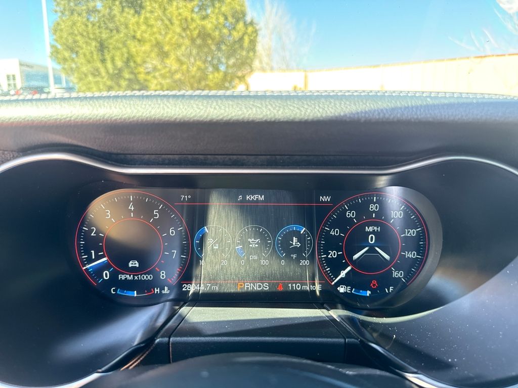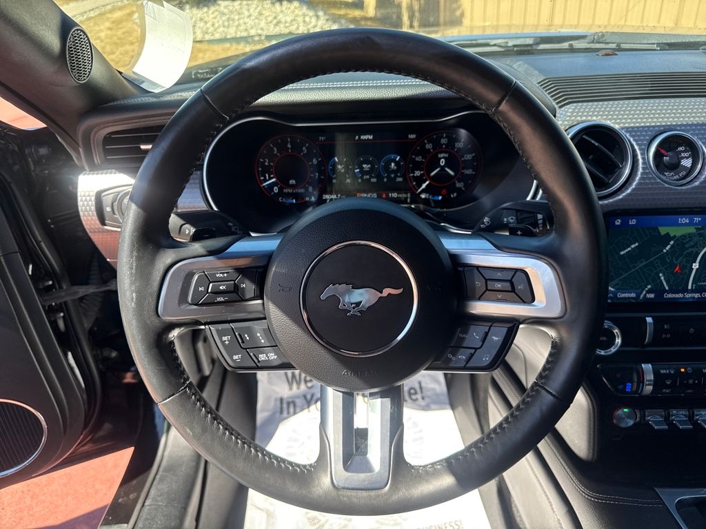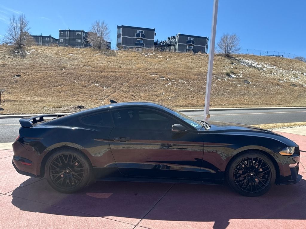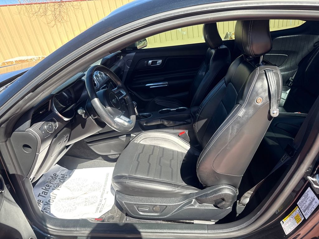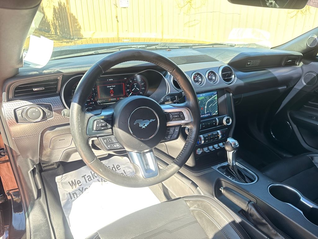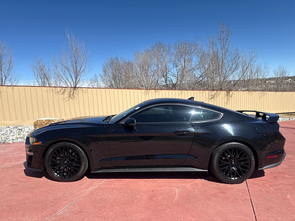 Enhanced Security Package (Active Anti-Theft System and Wheel Locking Kit), Equipment Group 401A (Blind Spot Info System w/Cross-Traffic Alert, Leather Bucket Seats w/Color Accents, and Memory Driver Seat, Mirrors & Ambient Lighting), Ford Safe & Smart Package (Adaptive Cruise Control, Automatic High Beam, Lane-Keeping System, Pre-Collision Assist w/Pedestrian Detection, and Rain-Sensing Windshield Wipers), GT Performance Package (Engine Spun Aluminum Instrument Panel, Gauge Pack (Oil Pressure & Vacuum), Heavy-Duty Front Springs, Larger Brake Rotors, Larger Radiator, Unique Stability Control, and Wheels: 19" x 9" Fr & 19" x 9.5" Rr Ebony Black), Premium Plus Package (Voice-Activated Touch-Screen Navigation System), Bumpers: body-color, Front Bucket Seats, Split folding rear seat, Tachometer, Telescoping steering wheel, 4-Wheel Disc Brakes, ABS brakes, Active Valve Performance Exhaust, Air Conditioning, Alloy wheels, AM/FM Stereo, Auto-dimming Rear-View mirror, Brake assist, Compass, Delay-off headlights, Driver door bin, Driver vanity mirror, Dual front impact airbags, Dual front side impact airbags, Electronic Stability Control, Emergency communication system: 911 Assist, Exterior Parking Camera Rear, Four wheel independent suspension, Front anti-roll bar, Front Center Armrest, Front fog lights, Front reading lights, Fully automatic headlights, Illuminated entry, Knee airbag, Low tire pressure warning, MagneRide Damping System, Occupant sensing airbag, Outside temperature display, Overhead airbag, Overhead console, Panic alarm, Passenger door bin, Passenger vanity mirror, Power door mirrors, Power driver seat, Power passenger seat, Power steering, Power windows, Radio data system, Rear anti-roll bar, Rear window defroster, Remote keyless entry, Security system, Speed control, Speed-sensing steering, Speed-Sensitive Wipers, Spoiler, Steering wheel mounted audio controls, Tilt steering wheel, Traction control, Trip computer, Variably intermittent wipers, Voltmeter, and Wheels: 18" x 8" Machined-Face Aluminum.