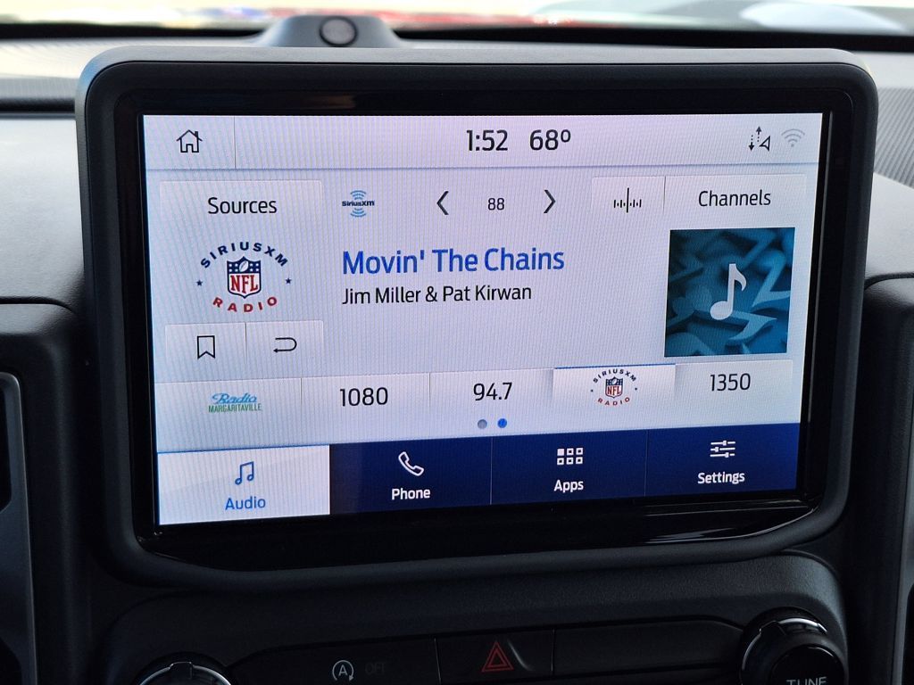 Equipment Group 300A, Tech Package (HD Radio, Universal Garage Door Opener (UGDO), and Wireless Charging Pad), 3.80 Axle Ratio, 4-Wheel Disc Brakes, 6 Speakers, ABS brakes, Air Conditioning, Alloy wheels, AM/FM radio: SiriusXM, AM/FM Stereo, Auto High-beam Headlights, Auto-dimming Rear-View mirror, Automatic temperature control, Brake assist, Compass, Delay-off headlights, Driver door bin, Driver vanity mirror, Dual front impact airbags, Dual front side impact airbags, Electronic Stability Control, Emergency communication system: SYNC 3 911 Assist, Four wheel independent suspension, Front & Rear Floor Liners, Front anti-roll bar, Front Bucket Seats, Front Center Armrest, Front dual zone A/C, Front fog lights, Front reading lights, Fully automatic headlights, Heated door mirrors, Heated front seats, Heated steering wheel, Illuminated entry, Knee airbag, Leather Trimmed Heated Sport Contour Bucket Seats, Low tire pressure warning, Occupant sensing airbag, Outside temperature display, Overhead airbag, Overhead console, Panic alarm, Passenger door bin, Passenger vanity mirror, Power door mirrors, Power driver seat, Power passenger seat, Power steering, Power windows, Radio data system, Rain sensing wipers, Rear anti-roll bar, Rear Parking Sensors, Rear reading lights, Rear seat center armrest, Rear window defroster, Rear window wiper, Remote keyless entry, Roof rack: rails only, Security system, SiriusXM Radio, Speed control, Speed-sensing steering, Speed-Sensitive Wipers, Split folding rear seat, Steering wheel mounted audio controls, SYNC 3 Communications & Entertainment System, SYNC 3/Apple CarPlay/Android Auto, Tachometer, Telescoping steering wheel, Tilt steering wheel, Traction control, Trip computer, Variably intermittent wipers, and Wheels: 18" Ebony Black-Painted Aluminum.