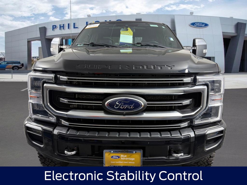 2022 Ford F-350SD Platinum Agate Black Metallic 4WD 10-Speed Automatic Power Stroke 6.7L V8 DI 32V OHV Turbodiesel 4WD, ABS brakes, Alloy wheels, Compass, Electronic Stability Control, Front dual zone A/C, Heated door mirrors, Illuminated entry, Low tire pressure warning, Remote keyless entry, Traction control.