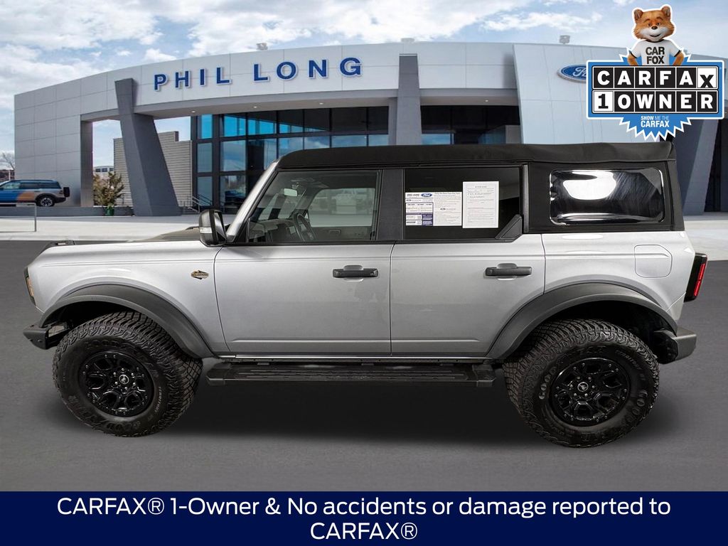 2023 Ford Bronco Wildtrak Iconic Silver Metallic 4WD 10-Speed Automatic 2.7L EcoBoost V6 CARFAX One-Owner.
