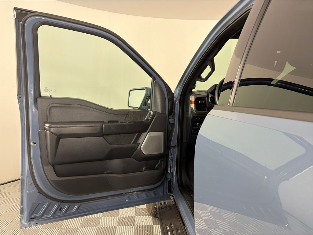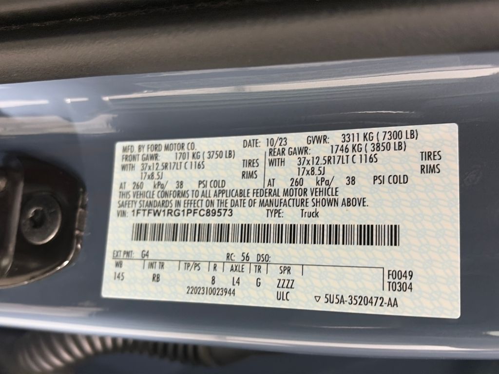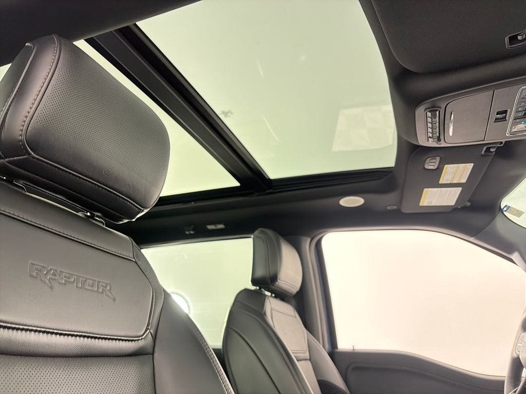 RAPTOR 37 PERFORMANCE PACKAGE Raptor 37 Graphics, Sport Tuned Shock Absorbers, Wheels: Unique 17 Forged Aluminum Bead-Lock Capable, Tires: 37x12.5R17 BSW All-Terrain, MOONROOF & TAILGATE Power Tailgate, Twin Panel Moonroof, TRANSMISSION: ELECTRONIC 10-SPEED AUTOMATIC terrain management modes: normal, sport, tow-haul, slippery, rock crawl, off-road and baja mode (STD). Ford Raptor with Azure Gray Metallic Tri-Coat exterior and Black interior features a V6 Cylinder Engine with 450 HP at 5000 RPM*.