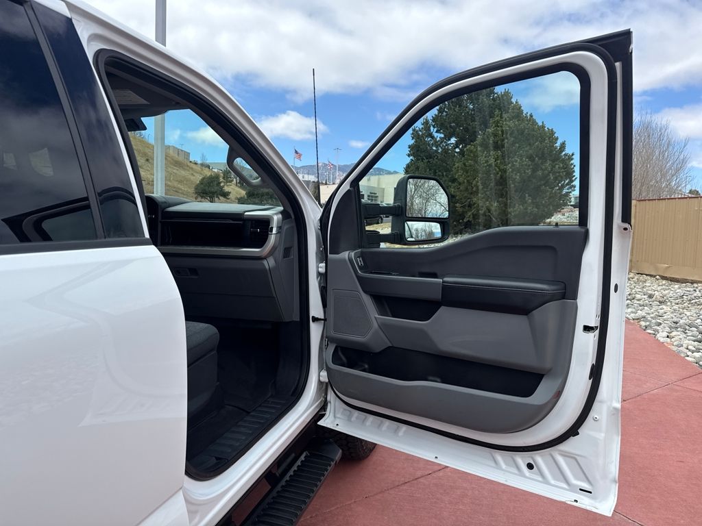 GVWR: 10,000 lb Payload Package, Order Code 603A, 4WD, Bumpers: chrome, Cloth 40/20/40 Split Bench Seat, Heated door mirrors, Platform Running Boards, SYNC 4, 3.73 Axle Ratio, 4-Wheel Disc Brakes, 6 Speakers, ABS brakes, Air Conditioning, Alloy wheels, AM/FM radio, AM/FM Stereo w/MP3 Player, Auto High-beam Headlights, Brake assist, Compass, Delay-off headlights, Driver door bin, Driver vanity mirror, Dual front impact airbags, Dual front side impact airbags, Electronic Stability Control, Emergency communication system: SYNC 4 911 Assist, Exterior Parking Camera Rear, Front anti-roll bar, Front Center Armrest w/Storage, Front fog lights, Front License Plate Bracket, Front reading lights, Fully automatic headlights, Illuminated entry, Low tire pressure warning, Outside temperature display, Overhead airbag, Overhead console, Panic alarm, Passenger door bin, Passenger vanity mirror, Power door mirrors, Power driver seat, Power steering, Power windows, Privacy Glass, Rear reading lights, Rear step bumper, Remote keyless entry, Speed control, Split folding rear seat, Steering wheel mounted audio controls, Tachometer, Telescoping steering wheel, Tilt steering wheel, Traction control, Trip computer, Turn signal indicator mirrors, Variably intermittent wipers, and Wheels: 18" Sparkle Silver Painted Cast Aluminum.
