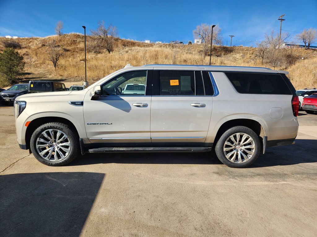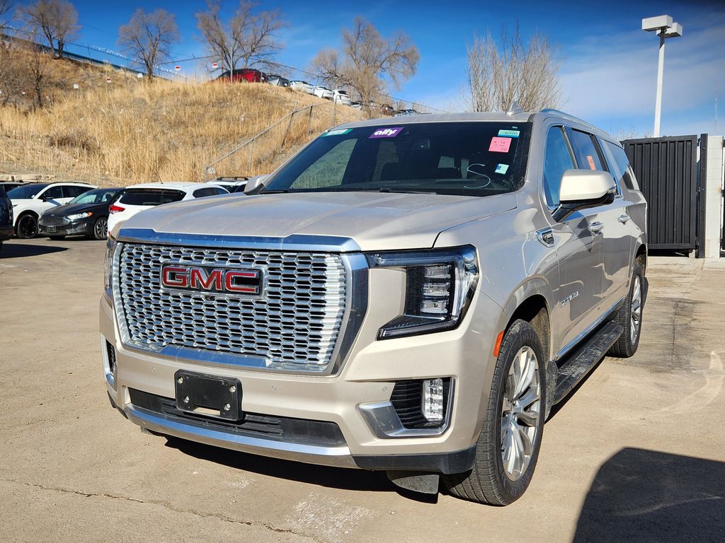WHEELS, 22 X 9 (55.9 CM X 22.9 CM) BRIGHT MACHINED ALUMINUM WITH PREMIUM PAINT Includes (SFE) wheel locks, LPO.), AUDIO SYSTEM, 10.2 DIAGONAL PREMIUM GMC INFOTAINMENT SYSTEM WITH GOOGLE BUILT-IN includes color touch-screen, multi-touch display, AM/FM stereo, Bluetooth® streaming audio for music and most phones; featuring wireless Android Auto® and Apple CarPlay® capability for compatible phones, advanced voice recognition, in-vehicle apps, personalized profiles for infotainment and vehicle settings (STD), ENGINE, 6.2L ECOTEC3 V8 with Dynamic Fuel Management, Direct Injection and Variable Valve Timing, includes aluminum block construction (420 hp [313 kW] @ 5600 rpm, 460 lb-ft of torque [624 Nm] @ 4100 rpm) (STD), TRANSMISSION, 10-SPEED AUTOMATIC electronically controlled with overdrive, includes Traction Select System including tow/haul (STD). GMC Denali with Pearl Beige Metallic exterior and Dark Walnut/Very Dark Ash Gray interior features a 8 Cylinder Engine with 420 HP at 5600 RPM*. Approx. Original Base Sticker Price: $77,800*.