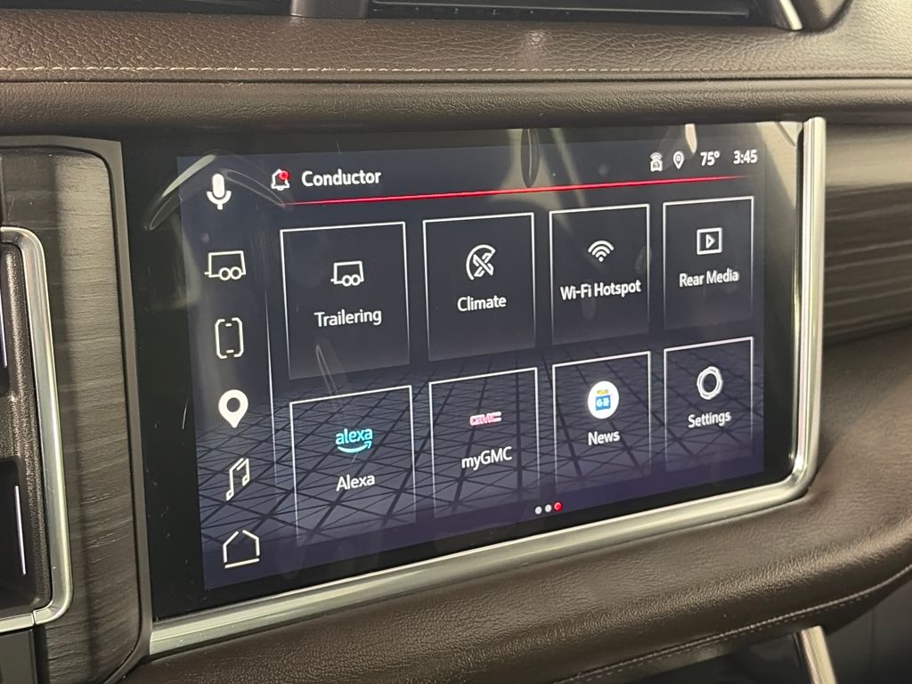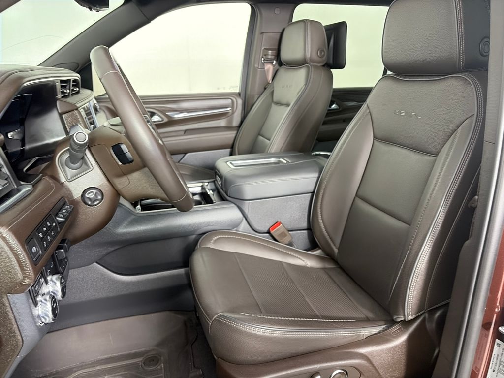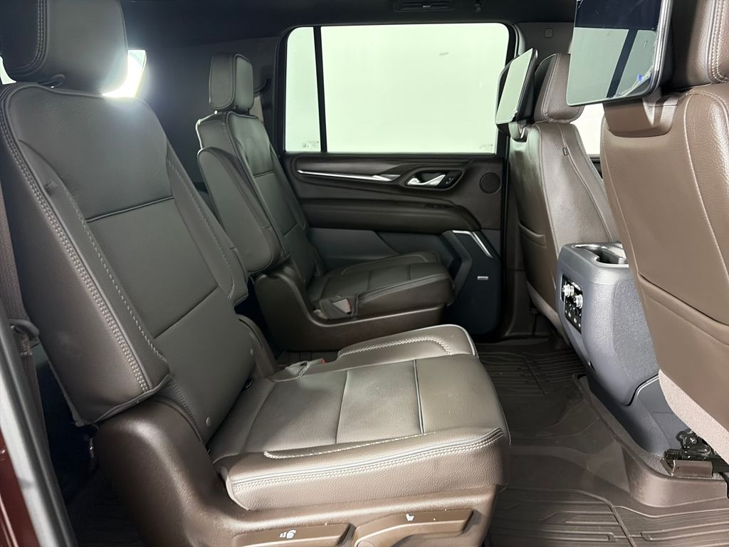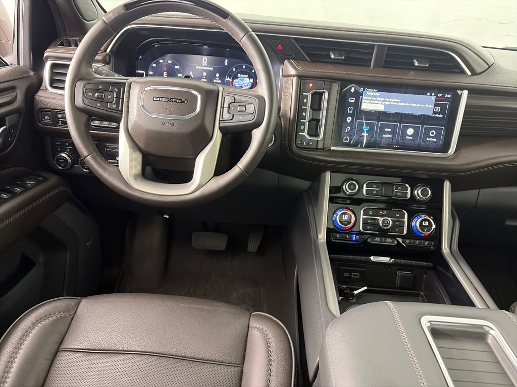 ADVANCED TECHNOLOGY PACKAGE includes (UKL) Super Cruise, (UKZ) Enhanced Automatic Parking Assist, (UVZ) Reverse Automatic Braking, (DRZ) Rear Camera Mirror, (CWA) Rear Camera Mirror Washer and (NWM) Advanced Security Package content, WHEELS, 22 X 9 (55.9 CM X 22.9 CM) 6-SPOKE CARBON FLASH METALLIC ALUMINUM with selective machining (Includes (SFE) wheel locks, LPO. REAR SEAT MEDIA SYSTEM includes dual rear seat-mounted 12.6 diagonal color-touch LCD HD screens, Wi-Fi wireless projection capability, two Bluetooth® headphones with 2 HDMI ports on the back of the center console, PREMIUM CAPABILITY PACKAGE WITH ACTIVE RESPONSE 4WD includes (F47) Air Ride Adaptive suspension and (G96) electronic limited-slip differential, SUNROOF, POWER PANORAMIC, DUAL-PANE tilt-sliding with express-open and close and power sunshade, LPO, FLOOR LINER PACKAGE (dealer-installed) (Includes (AAK) 1st and 2nd row premium floor liners, LPO, (RIB) 3rd row all-weather floor liners, LPO and (CAV) all-weather cargo mat, LPO. SUSPENSION, AIR RIDE ADAPTIVE, AUDIO SYSTEM, 10.2 DIAGONAL PREMIUM GMC INFOTAINMENT SYSTEM WITH GOOGLE BUILT-IN includes color touch-screen, multi-touch display, AM/FM stereo, Bluetooth® streaming audio for music and most phones; featuring wireless Android Auto® and Apple CarPlay® capability for compatible phones, advanced voice recognition, in-vehicle apps, personalized profiles for infotainment and vehicle settings (STD), TRANSMISSION, 10-SPEED AUTOMATIC electronically controlled with overdrive, includes Traction Select System including tow/haul, ADVANCED SECURITY PACKAGE, BODY SECURITY CONTENT includes (UTR) self-powered horn, (UTV) interior movement sensors, (UTU) vehicle inclination sensors, (UTW) glass break sensors in rear quarter glass and liftgate window and door and liftgate lock shields, ENGINE, DURAMAX 3.0L TURBO-DIESEL I6 (277 hp [206.6 kW] @ 3750 rpm, 460 lb-ft of torque [623.7 N-m] @ 1500 rpm). GMC Denali with Redwood Metallic exterior and Dark Walnut/Very Dark Ash Gray interior features a Straight 6 Cylinder Engine with 277 HP at 3750 RPM*.