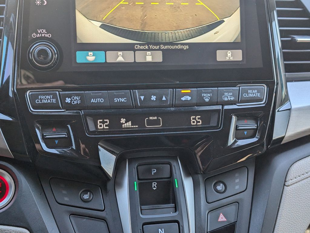 3rd row seats: split-bench, 4-Wheel Disc Brakes, 4.33 Axle Ratio, 7 Speakers, A/V remote: CabinControl, ABS brakes, Air Conditioning, Alloy wheels, AM/FM radio: SiriusXM, Anti-whiplash front head restraints, Apple CarPlay/Android Auto, Auto High-beam Headlights, Auto-dimming Rear-View mirror, Automatic temperature control, Blind Spot Information (BSI) System warning, Brake assist, Bumpers: body-color, Delay-off headlights, Driver door bin, Driver vanity mirror, Driver's Seat Mounted Armrest, Dual front impact airbags, Dual front side impact airbags, Electronic Stability Control, Emergency communication system: HondaLink, Exterior Parking Camera Rear, Forward collision: Collision Mitigation Braking System (CMBS) + FCW mitigation, Four wheel independent suspension, Front anti-roll bar, Front Bucket Seats, Front dual zone A/C, Front fog lights, Front reading lights, Fully automatic headlights, Garage door transmitter: HomeLink, Heated door mirrors, Heated Front Bucket Seats, Heated front seats, Illuminated entry, Knee airbag, Lane departure: Lane Keeping Assist System (LKAS) active, Leather Seat Trim, Leather steering wheel, Low tire pressure warning, Memory seat, Occupant sensing airbag, Outside temperature display, Overhead airbag, Overhead console, Panic alarm, Passenger door bin, Passenger seat mounted armrest, Passenger vanity mirror, Power door mirrors, Power driver seat, Power Liftgate, Power moonroof, Power passenger seat, Power steering, Power windows, Radio data system, Radio: 160-Watt AM/FM/HD/SiriusXM Audio System, Rear air conditioning, Rear anti-roll bar, Rear reading lights, Rear seat center armrest, Rear window defroster, Rear window wiper, Reclining 3rd row seat, Remote keyless entry, Security system, Speed control, Speed-sensing steering, Speed-Sensitive Wipers, Split folding rear seat, Spoiler, Steering wheel mounted audio controls, Tachometer, Telescoping steering wheel, Tilt steering wheel, Traction control, Trip computer, Turn signal indicator mirrors, Variably intermittent wipers, and Wheels: 18" Dark Silver-Painted Alloy.
