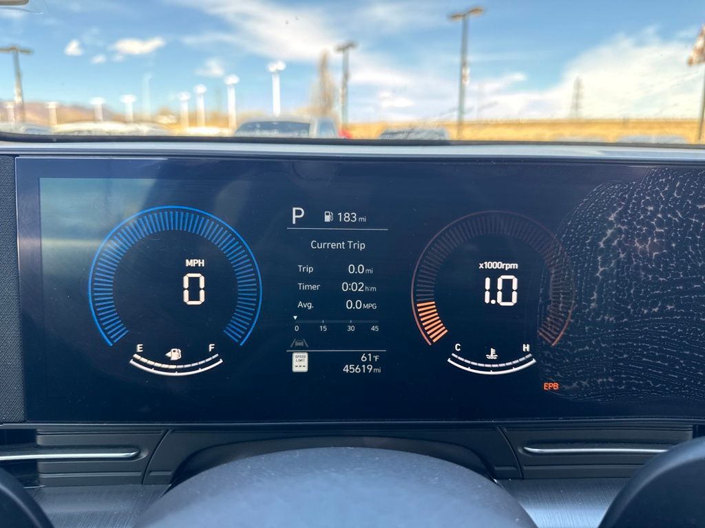 Option Group 01, 4-Wheel Disc Brakes, 6 Speakers, 6.052 Axle Ratio, ABS brakes, Air Conditioning, Alloy wheels, AM/FM radio: SiriusXM, Apple CarPlay & Android Auto, Auto High-beam Headlights, Automatic temperature control, Brake assist, Bumpers: body-color, Cloth Seat Trim, Delay-off headlights, Driver door bin, Driver vanity mirror, Dual front impact airbags, Dual front side impact airbags, Electronic Stability Control, Emergency communication system: Bluelink+, Exterior Parking Camera Rear, Four wheel independent suspension, Front anti-roll bar, Front Bucket Seats, Front Center Armrest, Front dual zone A/C, Front reading lights, Fully automatic headlights, Heated door mirrors, Illuminated entry, Leather Shift Knob, Leather steering wheel, Low tire pressure warning, Occupant sensing airbag, Outside temperature display, Overhead airbag, Panic alarm, Passenger door bin, Passenger vanity mirror, Power door mirrors, Power driver seat, Power steering, Power windows, Radio: AM/FM/HD Radio/SiriusXM Audio System, Rear anti-roll bar, Rear seat center armrest, Rear window defroster, Rear window wiper, Remote keyless entry, Security system, Speed control, Speed-sensing steering, Split folding rear seat, Spoiler, Steering wheel mounted audio controls, Tachometer, Telescoping steering wheel, Tilt steering wheel, Traction control, Trip computer, Turn signal indicator mirrors, Variably intermittent wipers, and Wheels: 18" x 7.0J Glossy Black Alloy.
