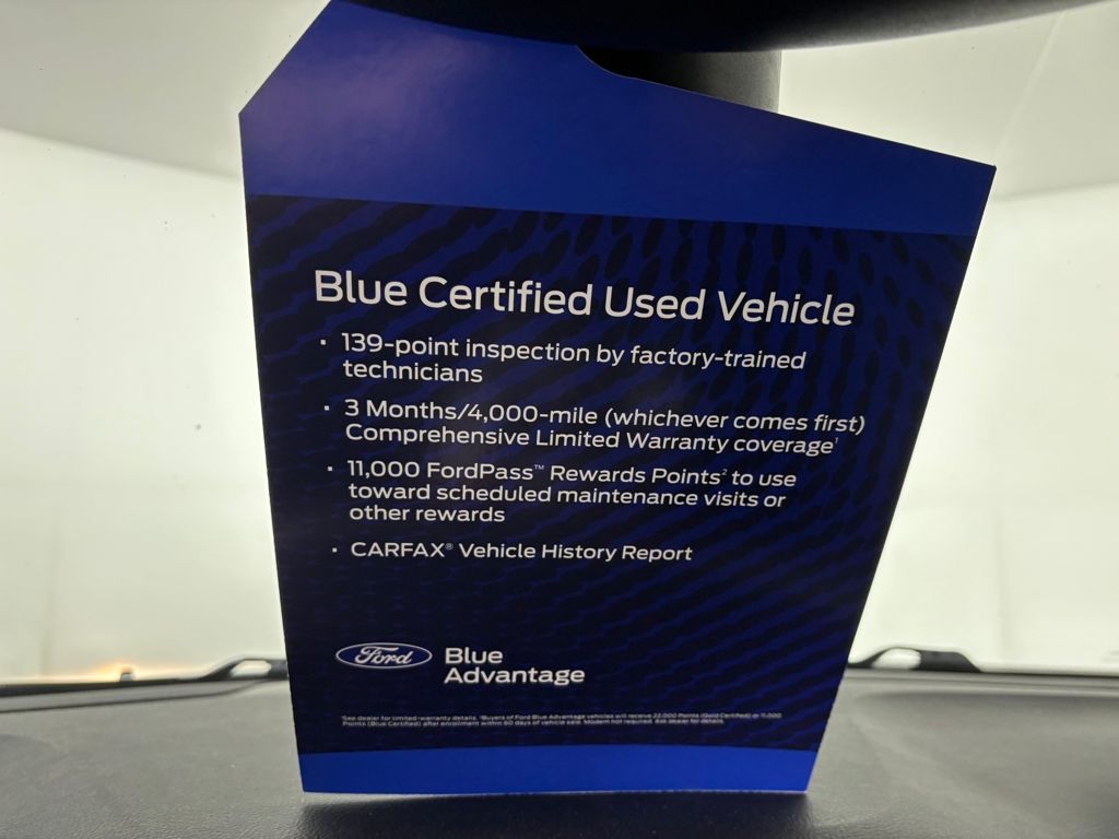 139 point vehicle inspection performed by an ASE Certified technician 3-month/4,000-mile Comprehensive Limited Warranty coverage that is fully competitive with other online retailers Blue Certification includes 11,000 FordPass Rewards Points For other manufacturers not listed above, Comprehensive Coverage is provided for 3 months or 4,000 miles, whichever comes first, from the signature date of the Ford Blue Advantage â" Blue Certified purchase. Comprehensive Limited Warranty covering 1,000+ components Travel expense reimbursement Rental car reimbursement SiriusXM 3 month tria. Recent Arrival!