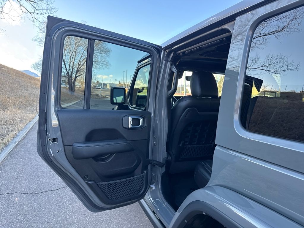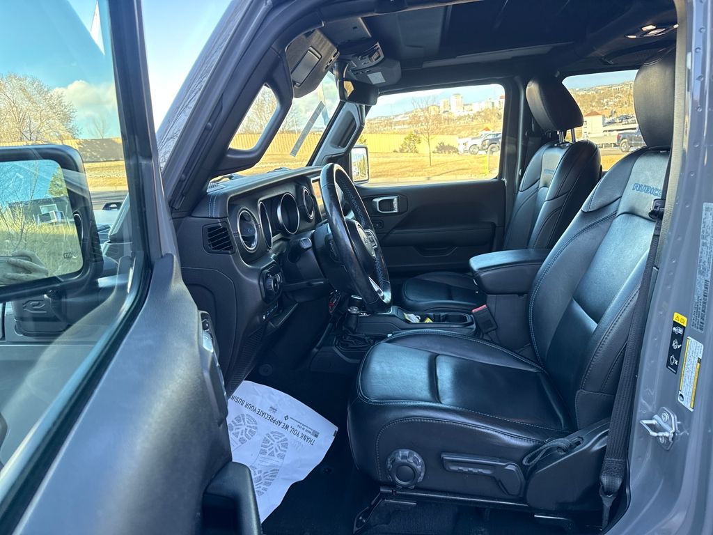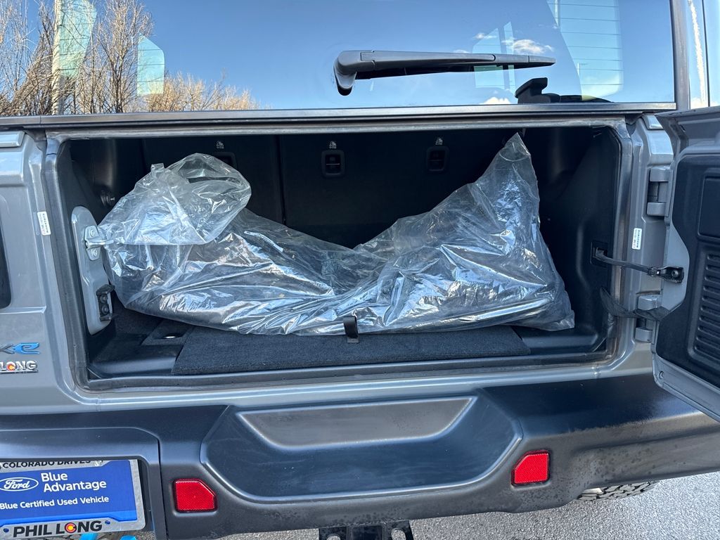 Cold Weather Group (Heated Front Seats, Heated Steering Wheel, and Remote Start System), Quick Order Package 29V, Steel Bumper Group (Steel Front Bumper and Steel Rear Bumper), Trailer Tow & HD Electrical Group (7 & 4 Pin Wiring Harness, 700 Amp Maintenance Free Battery, Auxiliary Switches, and Class II Receiver Hitch), 2.0L I4 DOHC, 4-Wheel Disc Brakes, 4.10 Rear Axle Ratio, 9 Speakers, ABS brakes, Air Conditioning, Alloy wheels, AM/FM radio: SiriusXM, Apple CarPlay/Android Auto, Auto-dimming Rear-View mirror, Automatic temperature control, Body Color Fender Flares, Brake assist, Compass, Delay-off headlights, Driver door bin, Driver vanity mirror, Dual front impact airbags, Dual front side impact airbags, Electronic Stability Control, Emergency communication system: SiriusXM Guardian, Front anti-roll bar, Front Bucket Seats, Front Center Armrest w/Storage, Front dual zone A/C, Front fog lights, Front reading lights, Fully automatic headlights, Garage door transmitter, Heated door mirrors, Illuminated entry, Integrated Off-Road Camera, Integrated roll-over protection, Leather steering wheel, Low tire pressure warning, Navigation System, Occupant sensing airbag, Outside temperature display, Panic alarm, ParkView Rear Back-Up Camera, Passenger door bin, Passenger vanity mirror, Performance Suspension, Power door mirrors, Power steering, Power Top Quarter Window Storage Bag, Power windows, Premium Cloth Low-Back Bucket Seats, Radio data system, Radio: Uconnect 4C Nav w/8.4" Display, Rear anti-roll bar, Rear reading lights, Rear Window Defroster, Rear Window Wiper/Washer, Remote keyless entry, Remote Proximity Keyless Entry, Removable Rear Quarter Windows, Security system, Sky 1-Touch Power Top, Speed control, Split folding rear seat, Steering wheel mounted audio controls, Tachometer, Telescoping steering wheel, Tilt steering wheel, Traction control, Trip computer, Variably intermittent wipers, Voltmeter, and Wheels: 17" x 7.5" Machined/Painted Black.