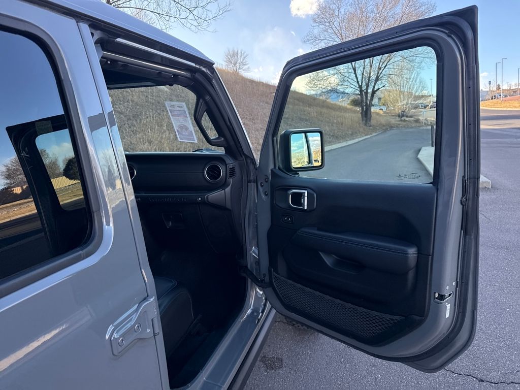 Cold Weather Group (Heated Front Seats, Heated Steering Wheel, and Remote Start System), Quick Order Package 29V, Steel Bumper Group (Steel Front Bumper and Steel Rear Bumper), Trailer Tow & HD Electrical Group (7 & 4 Pin Wiring Harness, 700 Amp Maintenance Free Battery, Auxiliary Switches, and Class II Receiver Hitch), 2.0L I4 DOHC, 4-Wheel Disc Brakes, 4.10 Rear Axle Ratio, 9 Speakers, ABS brakes, Air Conditioning, Alloy wheels, AM/FM radio: SiriusXM, Apple CarPlay/Android Auto, Auto-dimming Rear-View mirror, Automatic temperature control, Body Color Fender Flares, Brake assist, Compass, Delay-off headlights, Driver door bin, Driver vanity mirror, Dual front impact airbags, Dual front side impact airbags, Electronic Stability Control, Emergency communication system: SiriusXM Guardian, Front anti-roll bar, Front Bucket Seats, Front Center Armrest w/Storage, Front dual zone A/C, Front fog lights, Front reading lights, Fully automatic headlights, Garage door transmitter, Heated door mirrors, Illuminated entry, Integrated Off-Road Camera, Integrated roll-over protection, Leather steering wheel, Low tire pressure warning, Navigation System, Occupant sensing airbag, Outside temperature display, Panic alarm, ParkView Rear Back-Up Camera, Passenger door bin, Passenger vanity mirror, Performance Suspension, Power door mirrors, Power steering, Power Top Quarter Window Storage Bag, Power windows, Premium Cloth Low-Back Bucket Seats, Radio data system, Radio: Uconnect 4C Nav w/8.4" Display, Rear anti-roll bar, Rear reading lights, Rear Window Defroster, Rear Window Wiper/Washer, Remote keyless entry, Remote Proximity Keyless Entry, Removable Rear Quarter Windows, Security system, Sky 1-Touch Power Top, Speed control, Split folding rear seat, Steering wheel mounted audio controls, Tachometer, Telescoping steering wheel, Tilt steering wheel, Traction control, Trip computer, Variably intermittent wipers, Voltmeter, and Wheels: 17" x 7.5" Machined/Painted Black.