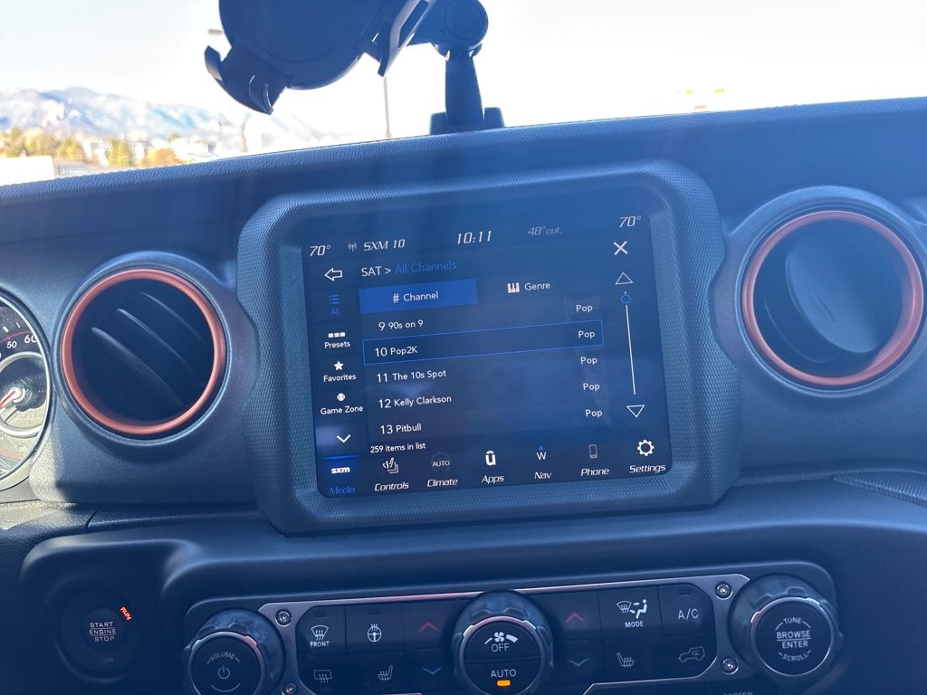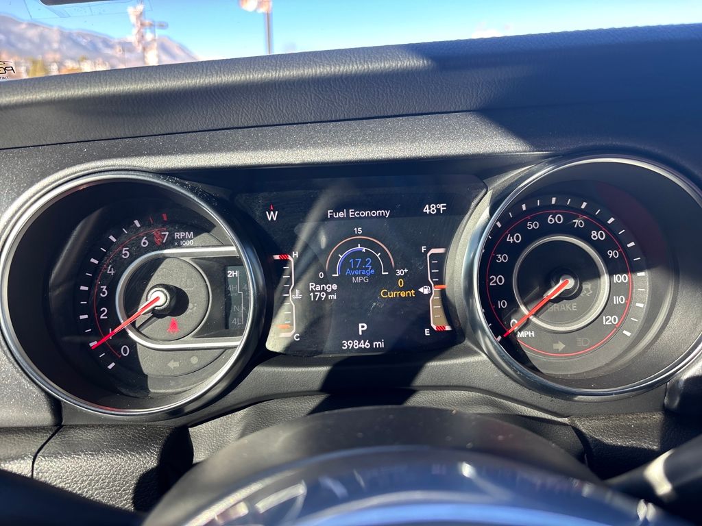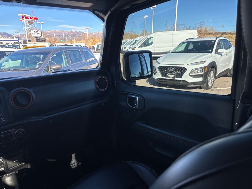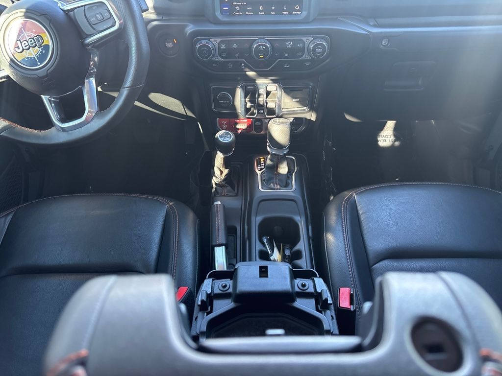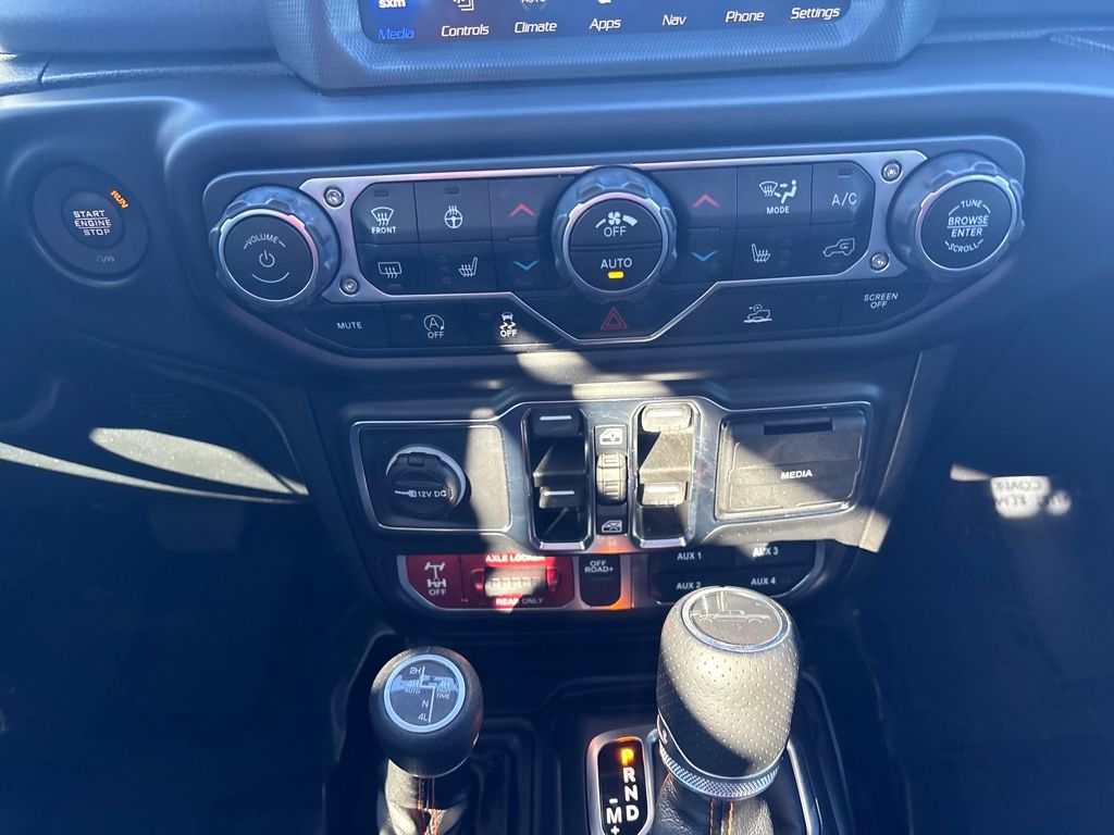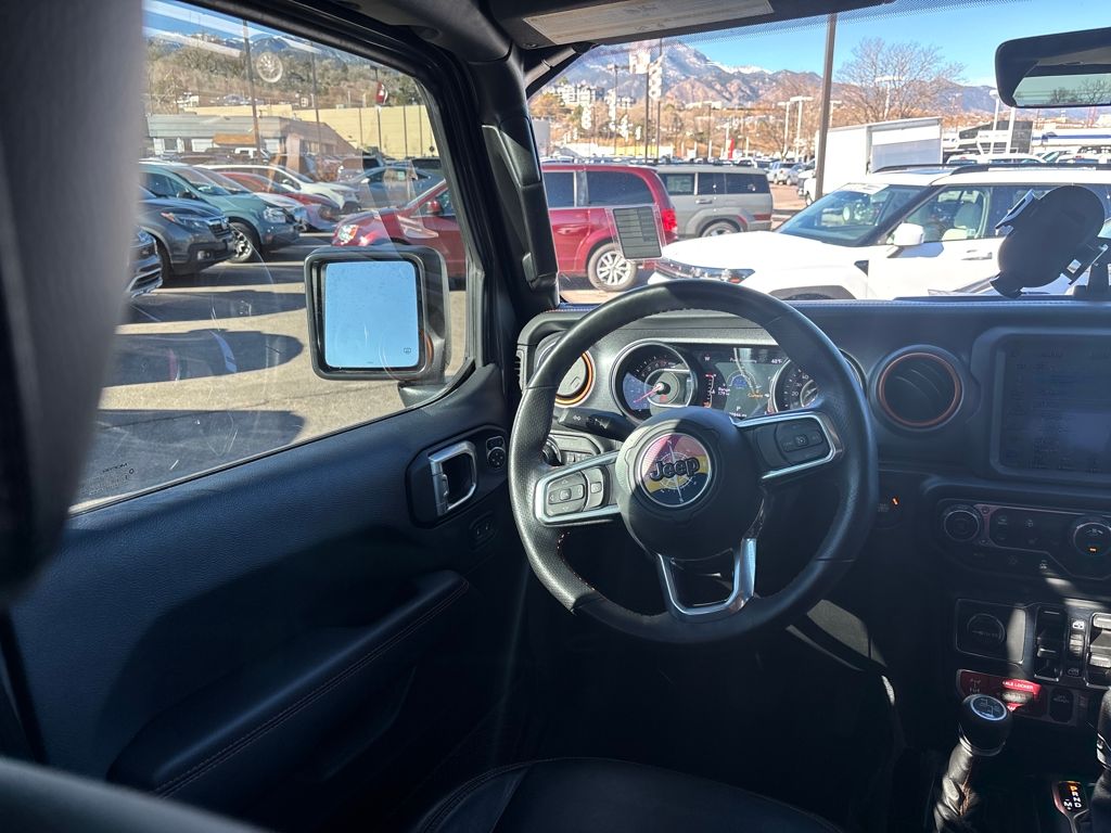 Auxiliary Switch Group (240 Amp Alternator, 700 Amp Maintenance Free Battery, and Auxiliary Switches), Cold Weather Group (Heated Front Seats and Heated Steering Wheel), Quick Order Package 24D, Trail Rail Management System (Exterior 115V AC Outlet and Lockable Rear Underseat Storage), Trailer Tow Package (Class IV Receiver Hitch, Heavy-Duty Engine Cooling, and Trailer Hitch Zoom), 4-Wheel Disc Brakes, 4.10 Rear Axle Ratio, 9 Speakers, 97 MPH Vehicle Max Speed Calibration, ABS brakes, Air Conditioning, Alloy wheels, AM/FM radio: SiriusXM, Apple CarPlay/Android Auto, Auto-dimming Rear-View mirror, Automatic temperature control, Bluetooth Wireless Speaker, Body Color 3-Piece Hard Top, Body Color Fender Flares (2-Piece), Brake assist, Compass, Corning Gorilla Glass, Delay-off headlights, Driver door bin, Driver vanity mirror, Dual front impact airbags, Dual front side impact airbags, Electronic Stability Control, Emergency communication system: SiriusXM Guardian, Freedom Panel Storage Bag, Front anti-roll bar, Front Bucket Seats, Front Center Armrest w/Storage, Front dual zone A/C, Front fog lights, Front License Plate Bracket, Front reading lights, Fully automatic headlights, Garage door transmitter, Heated door mirrors, Heavy Duty Suspension w/Gas Shocks, Illuminated entry, Integrated Off-Road Camera, Integrated roll-over protection, Jeep Trail Rated Kit, Leather steering wheel, Low tire pressure warning, MOPAR All-Weather Slush Mats, MOPAR Spray In Bedliner, Navigation System, No Soft Top, Occupant sensing airbag, Outside temperature display, Panic alarm, ParkView Rear Back-Up Camera, Passenger door bin, Passenger vanity mirror, Power door mirrors, Power steering, Power windows, Premium Cloth Seats w/Sport Bolsters, Radio data system, Radio: Uconnect 4C Nav w/8.4" Display, Rear anti-roll bar, Rear reading lights, Rear Sliding Window, Rear Window Defroster, Remote keyless entry, Remote Start System, Security system, Selec-Trac Full Time 4WD System, Speed control, Split folding rear seat, Steering wheel mounted audio controls, Tachometer, Telescoping steering wheel, Tilt steering wheel, Traction control, Trip computer, Variably intermittent wipers, Voltmeter, Wheels: 17" x 7.5" Low Gloss Black Aluminum, and Wheels: 17" x 7.5" Low Gloss Black Polished.