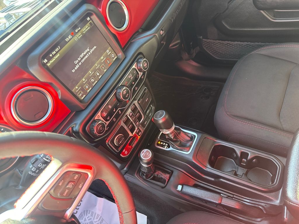 Cold Weather Group (Heated Front Seats and Heated Steering Wheel), Quick Order Package 22R Rubicon, Trailer Tow & Aux Switch Group (240 Amp Alternator, 7 & 4 Pin Wiring Harness, 700 Amp Maintenance Free Battery, Auxiliary Switches, and Class II Receiver Hitch), 4-Wheel Disc Brakes, 4.10 Rear Axle Ratio, 9 Speakers, ABS brakes, Air Conditioning, Alloy wheels, AM/FM radio: SiriusXM, Apple CarPlay/Android Auto, Auto-dimming Rear-View mirror, Automatic temperature control, Aux Battery, Black 3-Piece Hard Top, Body Color Rubicon Highline Flare, Brake assist, Compass, Delay-off headlights, Driver door bin, Driver vanity mirror, Dual front impact airbags, Dual front side impact airbags, Electronic Stability Control, Emergency communication system: SiriusXM Guardian, Engine Oil Cooler, Freedom Panel Storage Bag, Front anti-roll bar, Front Bucket Seats, Front Center Armrest w/Storage, Front Differential Electronic Lock w/Axle Disconnect, Front dual zone A/C, Front fog lights, Front reading lights, Fully automatic headlights, Garage door transmitter, Heated door mirrors, Illuminated entry, Integrated roll-over protection, Low tire pressure warning, MOPAR All-Weather Floor Mats, Navigation System, No Soft Top, Non-Lock Fuel Cap w/o Discriminator, Occupant sensing airbag, Outside temperature display, Panic alarm, ParkView Rear Back-Up Camera, Passenger door bin, Passenger vanity mirror, Performance Suspension, Power door mirrors, Power steering, Power windows, Premium Cloth Low-Back Bucket Seats, Radio data system, Radio: Uconnect 4C Nav w/8.4" Display, Rear anti-roll bar, Rear reading lights, Rear Window Defroster, Rear Window Wiper/Washer, Remote keyless entry, Security system, Speed control, Split folding rear seat, Steering wheel mounted audio controls, Stop-Start Dual Battery System, Tachometer, Telescoping steering wheel, Tilt steering wheel, Traction control, Trip computer, Variably intermittent wipers, Voltmeter, and Wheels: 17" x 7.5" Machined/Painted Black.