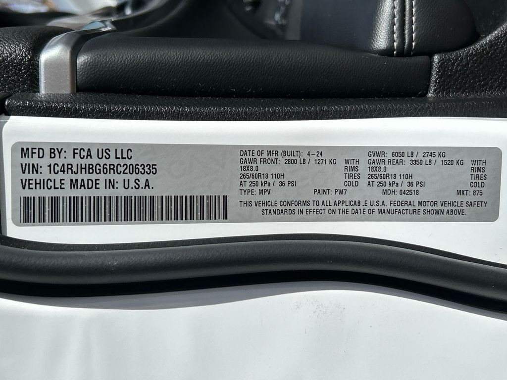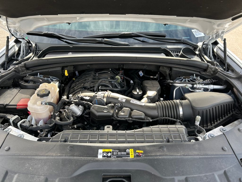 Quick Order Package 22E, Trailer Tow Package (220 Amp Alternator, 7 & 4-Pin Wiring Harness, Automatic Headlamp Levelling System, Class IV Receiver Hitch, Heavy-Duty Engine Cooling, Rear Load Levelling Suspension, and Trailer Hitch Zoom), 4WD, 3.45 Rear Axle Ratio, 4-Wheel Disc Brakes, 6 Speakers, ABS brakes, Active Noise Control System, Air Conditioning, Alloy wheels, AM/FM radio: SiriusXM with 360L, Anti-whiplash front head restraints, Audio memory, Auto High-beam Headlights, Automatic temperature control, Brake assist, Bumpers: body-color, Capri Leatherette Seats, Compass, Delay-off headlights, Driver door bin, Driver vanity mirror, Dual front impact airbags, Dual front side impact airbags, Electronic Stability Control, Emergency communication system, Four wheel independent suspension, Front anti-roll bar, Front Bucket Seats, Front Center Armrest w/Storage, Front dual zone A/C, Front fog lights, Front License Plate Bracket, Front reading lights, Fully automatic headlights, Garage door transmitter, Heated door mirrors, Heated front seats, Heated rear seats, Heated steering wheel, Illuminated entry, Knee airbag, Low tire pressure warning, Memory seat, Navigation System, Normal Duty Suspension, Occupant sensing airbag, Outside temperature display, Overhead airbag, Overhead console, Panic alarm, ParkView Rear Back-Up Camera, Passenger door bin, Passenger vanity mirror, Power door mirrors, Power driver seat, Power Liftgate, Power passenger seat, Power steering, Power windows, Radio data system, Radio: Uconnect 5 Nav w/10.1" Display, Rear anti-roll bar, Rear reading lights, Rear window defroster, Rear window wiper, Remote keyless entry, Security system, Speed control, Speed-Sensitive Wipers, Split folding rear seat, Spoiler, Steering wheel mounted audio controls, Tachometer, Telescoping steering wheel, Tilt steering wheel, Traction control, Trip computer, Turn signal indicator mirrors, Variably intermittent wipers, Voltmeter, and Wheels: 18" x 8" Polished/Painted Aluminum.