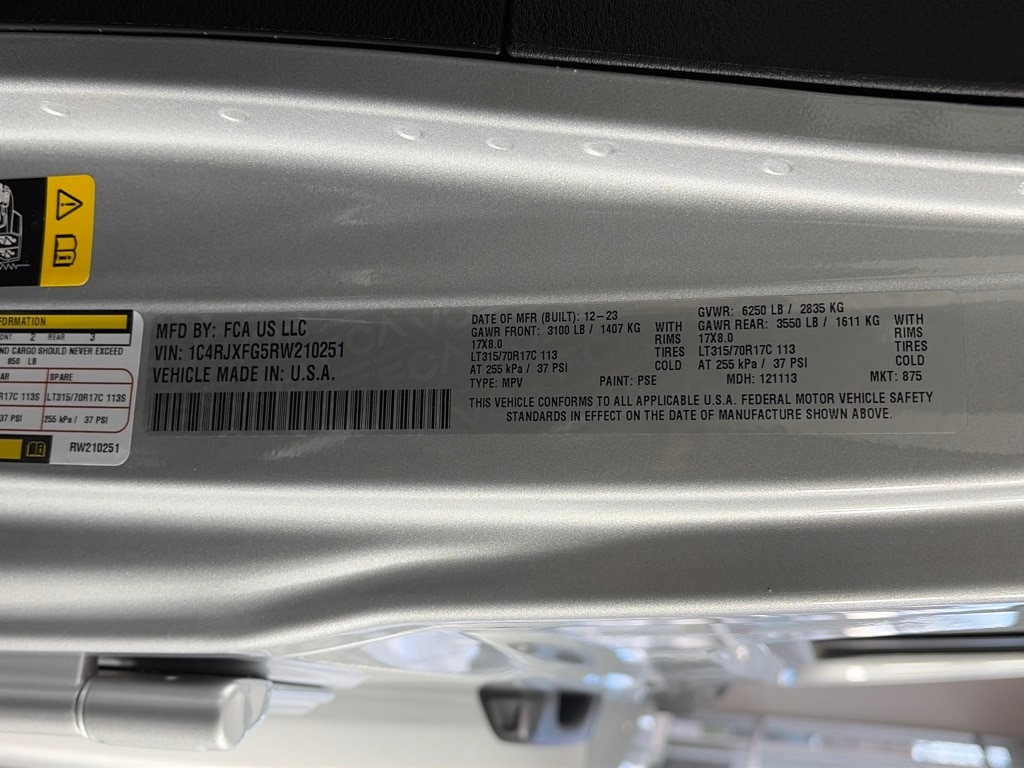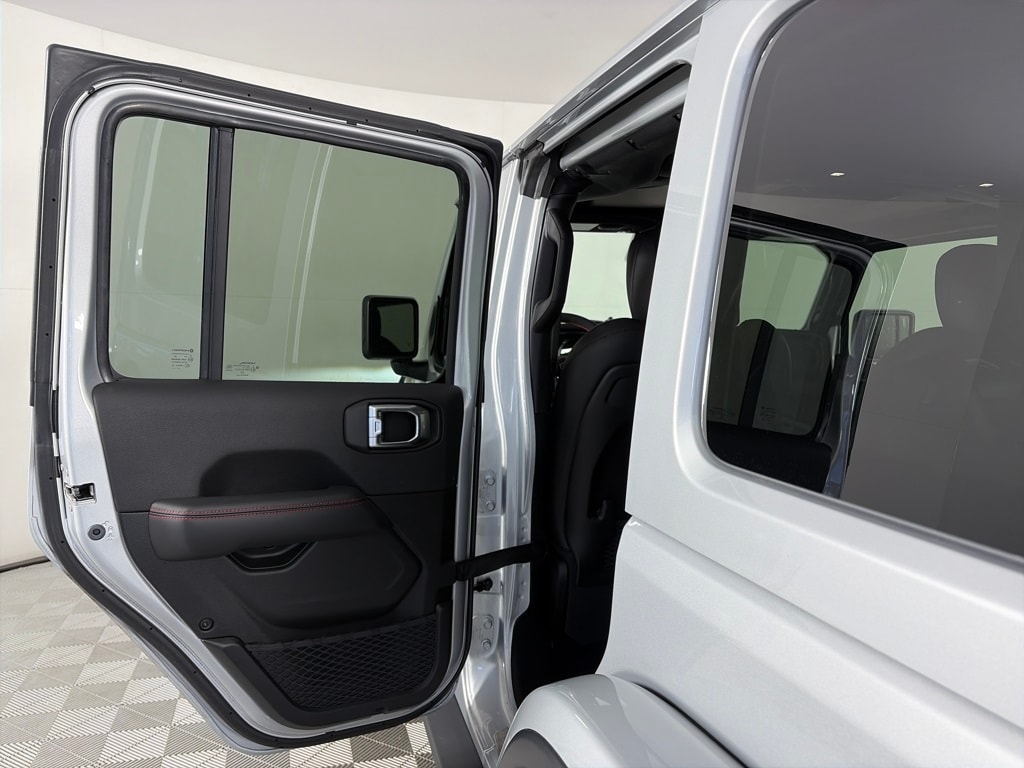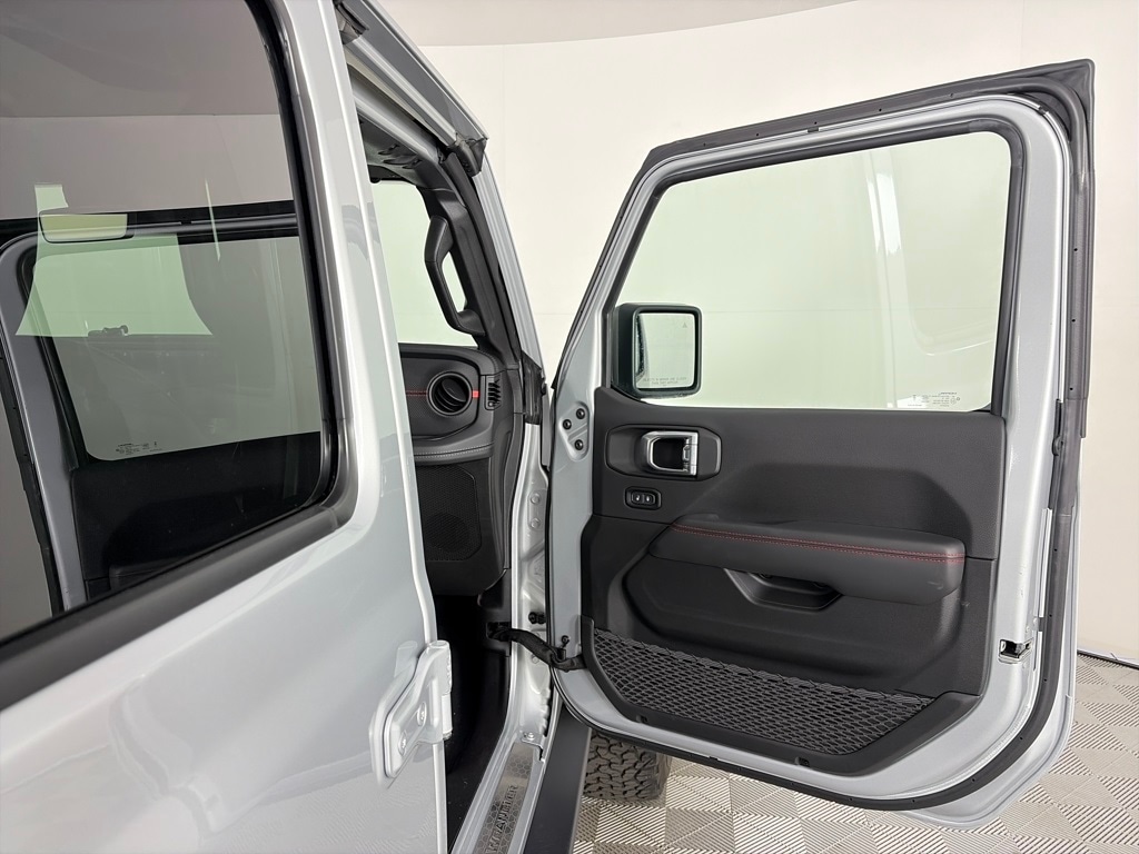 QUICK ORDER PACKAGE 24Y RUBICON X Engine: 3.6L V6 24V VVT UPG I w/ESS, Transmission: 8-Speed Automatic (850RE), SiriusXM Radio Service, Freedom Panel Storage Bag, Rear Window Defroster, Blind Spot & Cross Path Detection, Rear View Auto Dim Mirror, Rear Window Wiper/Washer, Heated Front Seats, GPS Navigation, 4G LTE Wi-Fi Hot Spot, SiriusXM w/360L, Connected Travel & Traffic Services, Acoustic Front Seat Area Carpet, Heated Steering Wheel, Body Color Rubicon Highline Flare, Xtreme 35 Tire Package, Tires: LT315/70R17C 113/110S, Wheel Flare Extensions, MOPAR Tire Relocation Kit, Anti-Lock 4-Wheel Disc Perf Brakes, 35 Tire Suspension, MOPAR Hinge-Gate Reinforcement, MOPAR Jack Spacer, Wheels: 17 x 8 Machined w/Black Pockets, 4.56 Rear Axle Ratio, GVWR: 6,250 lbs, Steel Front Bumper, Alpine, TRANSMISSION: 8-SPEED AUTOMATIC (850RE) Adaptive Cruise Control w/Stop, Selec-Speed Control, MOPAR HD ROCK SLIDER W/STEP ASSIST, ENGINE: 3.6L V6 24V VVT UPG I W/ESS (STD). Jeep Rubicon X with Silver Zynith Clearcoat exterior and Black interior features a V6 Cylinder Engine with 285 HP at 6400 RPM*.