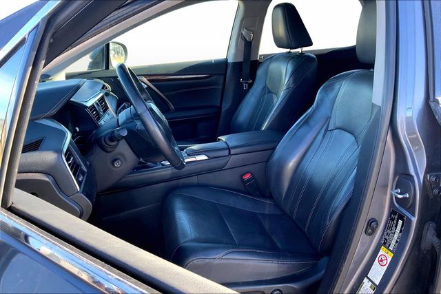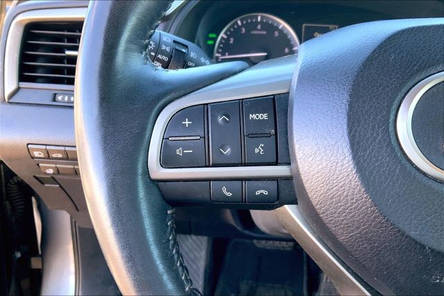 12.3 NAVIGATION SYSTEM advanced voice command casual-language voice recognition system, Bluetooth® hands free phone and automatic phonebook download capabilities, remote touch navigation controller, HD Radio w/iTunes tagging, SiriusXM NavTraffic, NavWeather, Sports, Stocks and Fuel Prices, Lexus Insider and Electro Multi Vision (EMV) display, Lexus Enform Destinations, Destination Assist and eDestination, Lexus Enform App Suite, destination search, Yelp, iHeartRadio, Facebook Places, Movietickets.com, OpenTable, Pandora, Slacker, stocks, fuel prices and sports, Single-Disc DVD Changer, POWER TILT & SLIDE MOONROOF, PREMIUM PACKAGE Rear Armrest Storage Compartment, Aluminum Roof Rails, Driver Seat/Steering/Mirror Memory - 3 Settings, drivers seat Easy Exit (auto away/return), Rain-Sensing Windshield Wipers, HEATED & VENTILATED FRONT SEATS, LEXUS SAFETY SYSTEM PLUS pre-collision system w/pedestrian detection, Bi-LED Headlamps w/Automatic High Beam, All-Speed Dynamic Radar Cruise Control (DRCC), Lane Departure Alert w/Steering Assist, BLIND SPOT MONITOR W/REAR CROSS TRAFFIC ALERT lane change assist, INTUITIVE PARKING ASSIST clearance and back sonar, ESPRESSO WALNUT INTERIOR WOOD TRIM, ACCESSORY PACKAGE SmartAccess Key Gloves, Wheel Locks (PPO), Cargo Mat, Cargo Net, TOUCH-FREE POWER REAR DOOR, HEATED LEATHER STEERING WHEEL. Lexus RX 350 with Nebula Gray Pearl exterior and BLACK interior features a V6 Cylinder Engine with 295 HP at 6300 RPM*.
