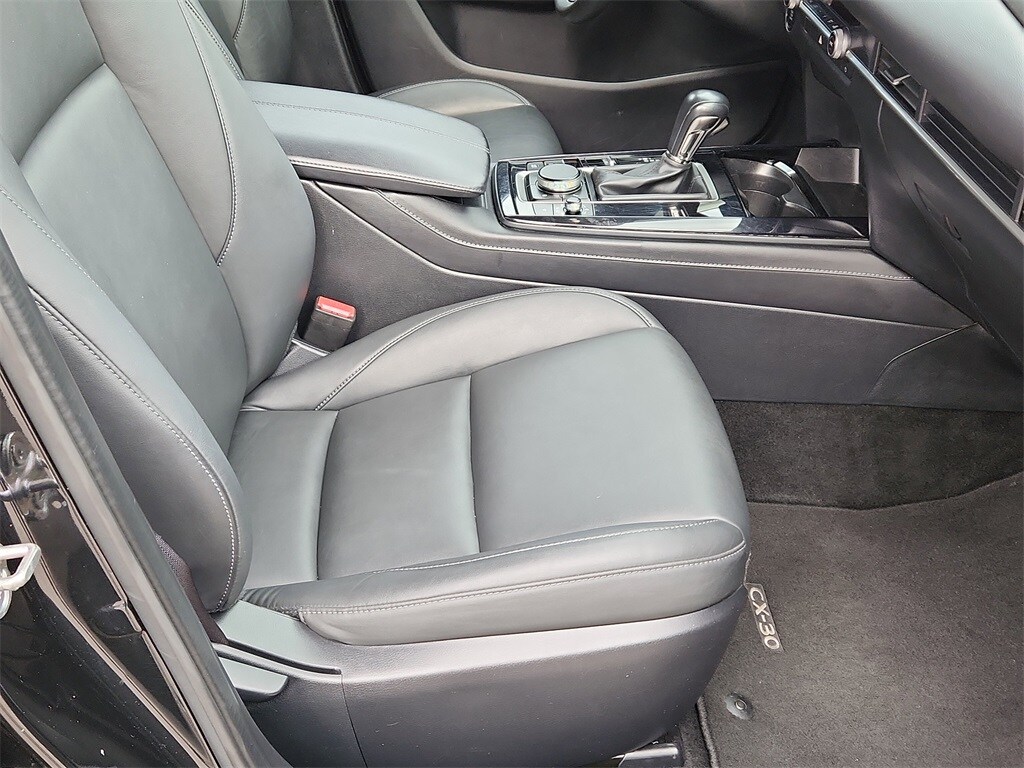 All Wheel Drive, Back-Up Camera, iPod/MP3 Input, Onboard Communications System, Aluminum Wheels, Keyless Start, Dual Zone A/C, Brake Actuated Limited Slip Differential, WiFi Hotspot, Lane Keeping Assist, Cross-Traffic Alert, Blind Spot Monitor, Smart Device Integration, Apple CarPlay® Mazda CX-30 2.5 S Select Sport with Jet Black Mica exterior and Black interior features a 4 Cylinder Engine with 191 HP at 6000 RPM*. Rear Spoiler, MP3 Player, Keyless Entry, Privacy Glass, Steering Wheel Controls.