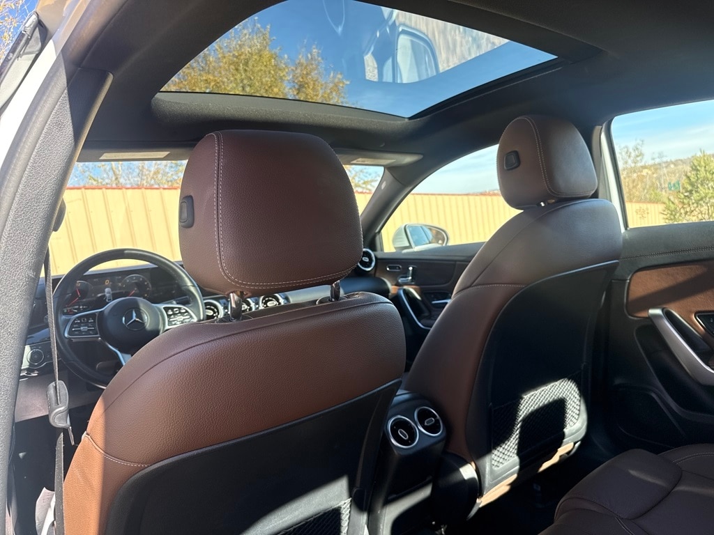 4-Way Lumbar Support, 4-Wheel Disc Brakes, 8 Speakers, ABS brakes, Air Conditioning, Alloy wheels, AM/FM radio, Android Auto®, Apple CarPlay®, Apple CarPlay®/Android Auto®, Automatic temperature control, Brake assist, Bumpers: body-color, Child-Seat-Sensing Airbag, Delay-off headlights, Driver door bin, Driver vanity mirror, Dual front impact airbags, Dual front side impact airbags, Electronic Stability Control, Emergency communication system: Mercedes me connect, Exterior Parking Camera Rear, Four wheel independent suspension, Front anti-roll bar, Front Bucket Seats, Front Center Armrest, Front dual zone A/C, Front reading lights, Fully automatic headlights, HD Radio, Heated door mirrors, HERMES Communications Module LTE, Illuminated entry, Knee airbag, Low tire pressure warning, MB-Tex Upholstery, Memory seat, Occupant sensing airbag, Outside temperature display, Overhead airbag, Overhead console, Panic alarm, Passenger door bin, Passenger vanity mirror, Power door mirrors, Power driver seat, Power Front Seats w/Memory, Power moonroof: Panorama, Power passenger seat, Power steering, Power windows, Premium audio system: MBUX, Radio data system, Radio: MBUX Multimedia System, Rain sensing wipers, Rear anti-roll bar, Rear reading lights, Rear seat center armrest, Rear window defroster, Remote keyless entry, Security system, Smartphone Integration, Speed control, Speed-sensing steering, Split folding rear seat, Steering wheel mounted audio controls, Telescoping steering wheel, Tilt steering wheel, Traction control, Trip computer, Turn signal indicator mirrors, Variably intermittent wipers, and Wheels: 17" 10-Spoke.