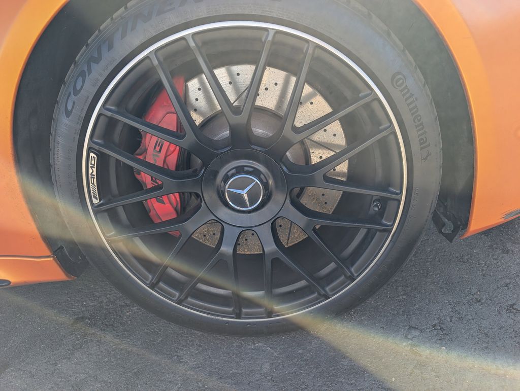 10.25" Media Display w/Central Controller, 13 Speakers, 19" AMG® Twin 5-Spoke Wheels, 4-Way Lumbar Support, 4-Wheel Disc Brakes, ABS brakes, Adaptive suspension, Air Conditioning, Alloy wheels, AM/FM radio: SiriusXM, Apple CarPlay®/Android Auto®, Auto tilt-away steering wheel, Auto-dimming door mirrors, Auto-dimming Rear-View mirror, Automatic temperature control, Black SoftTop, Brake assist, Bumpers: body-color, Burmester® Surround Sound System, CD player, Compass, Convertible roof lining, Convertible roof wind blocker, Delay-off headlights, Driver door bin, Driver vanity mirror, Dual front impact airbags, Dual front side impact airbags, DVD-Audio, Electronic Stability Control, Emergency communication system, Exterior Parking Camera Rear, Four wheel independent suspension, Front anti-roll bar, Front Bucket Seats, Front Center Armrest, Front dual zone A/C, Front reading lights, Fully automatic headlights, Garage door transmitter: Homelink, Genuine wood console insert, Genuine wood dashboard insert, Glass rear window, HD Radio, Head restraints memory, Heated door mirrors, Heated Front Seats, Heated front seats, Illuminated entry, Integrated roll-over protection, Knee airbag, Low tire pressure warning, Memory seat, Occupant sensing airbag, Outside temperature display, Overhead airbag, Overhead console, Panic alarm, Passenger door bin, Passenger vanity mirror, Perforated Nappa Leather Upholstery, Power adjustable front head restraints, Power convertible roof, Power door mirrors, Power driver seat, Power Driver Seat & Steering Column w/Memory, Power passenger seat, Power Passenger Seat w/Memory, Power steering, Power windows, Radio data system, Radio: Audio 20 - Radio w/Single CD & Bluetooth, Rain sensing wipers, Rear anti-roll bar, Rear fog lights, Rear side impact airbag, Rear window defroster, Remote keyless entry, Security system, Single DVD/CD Player, SiriusXM Satellite Radio, Speed control, Speed-sensing steering, Split folding rear seat, Spoiler, Sport steering wheel, Steering wheel memory, Steering wheel mounted audio controls, Tachometer, Telescoping steering wheel, Tilt steering wheel, Traction control, Trip computer, Turn signal indicator mirrors, Variably intermittent wipers, and Weather band radio.