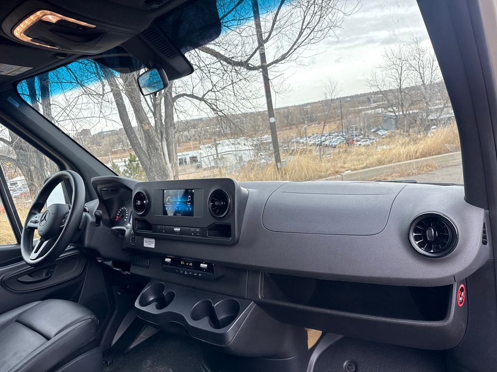 Acoustic Package, C02 in Combination w/C03 (Active Distance Assist DISTRONIC®, Active Lane Keeping Assist, Instrument Cluster w/Color Display, Leather Steering Wheel, and Wet Wiper System), Comfort Package (Comfort Head Restraint, Driver, Comfort Head Restraint, Passenger, Comfort Overhead Control Panel, Driver Seat Lumbar Support, Driver's & Co-Driver's Door Armrest, and Passenger Seat Lumbar Support), Comfort Package w/Seat Addition (Comfort Driver's Seat and Comfort Passenger's Seat), Comfort Plus Package (Electrically Adjustable Driver Seat, Electrically Adjustable Front Passenger Seat, Heated Driver's Seat, and Heated Front Passenger Seat), Driver Convenience Package (2 Additional Master Keys, ATTENTION ASSIST®, Blind Spot Assist, Driver Seat Base 12V Power Outlet, Electrically Folding Exterior Mirrors, Hinged Lid for Storage Compartment, and Left & Right Storage Compartments Hinged Lid), Front Engine Bracket for Additional Alternator, 115V Socket, 12V Rear Compartment Power Outlet, 3.923 Axle Ratio, 4-Wheel Disc Brakes, 5 Speakers, 6.5J x 16" Steel Wheels, ABS brakes, Access Point for BB Special Signals in Cockpit, Air Conditioning, AM/FM radio, Armrest for Driver's Seat, Armrest for Front Passenger Seat, Bodyside moldings, Brake assist, DEF Fluid Filler Cap, Lockable, Driver door bin, Driver's Seat Mounted Armrest, Dual front impact airbags, Dual front side impact airbags, Electronic Stability Control, Emergency Call System, Emergency communication system, Exterior Parking Camera Rear, Front anti-roll bar, Front Bucket Seats, Front wheel independent suspension, Fully automatic headlights, Heated door mirrors, Illuminated entry, Low tire pressure warning, Maturin Fabric Upholstery, Misfueling Prevention for Diesel, Mounting Rails for Roof Rack, Outside temperature display, Overhead airbag, Overhead console, Passenger door bin, Passenger seat mounted armrest, Power door mirrors, Power steering, Power windows, Radio: Standard, Rear anti-roll bar, Rear View Camera w/Head Unit Display, Rear window defroster, Remote keyless entry, Speed control, Standard Driver Seat, Standard Front Passenger Seat, Steering wheel mounted audio controls, Tachometer, Tilt steering wheel, Traction control, and Trailer Hitch, 5000 lbs.