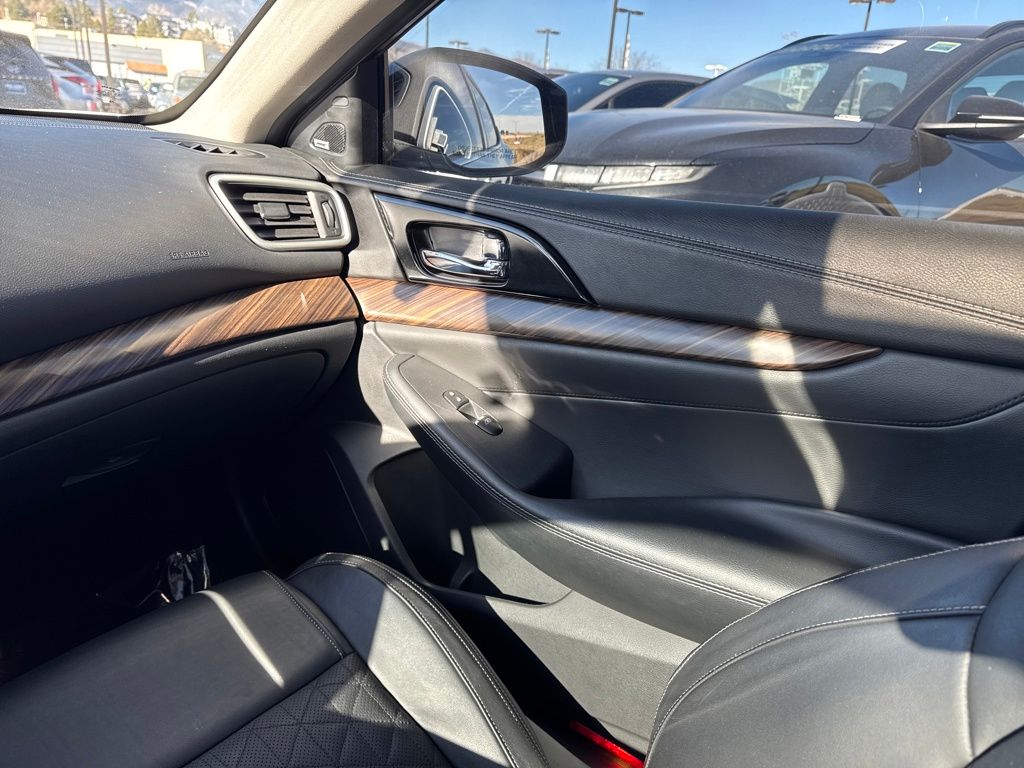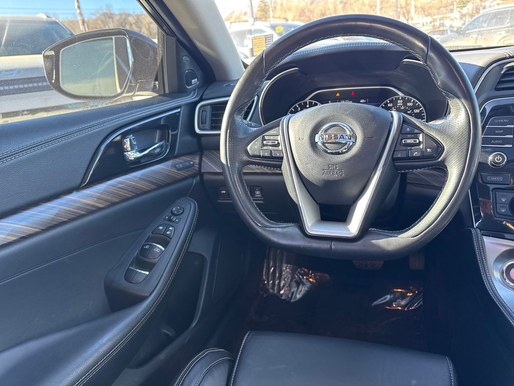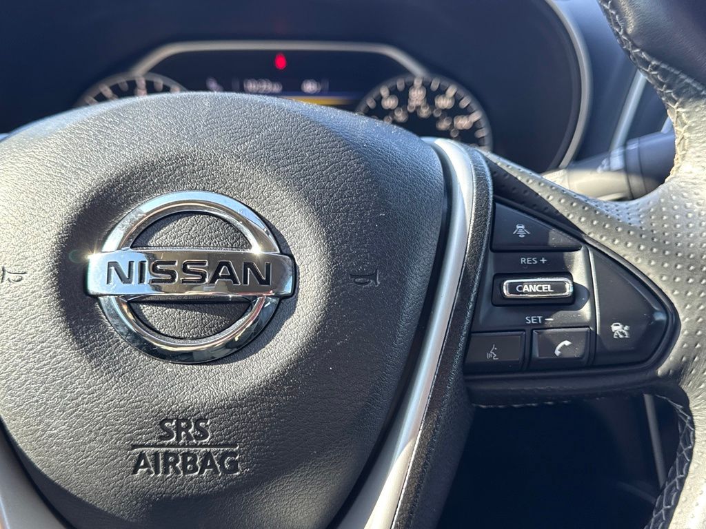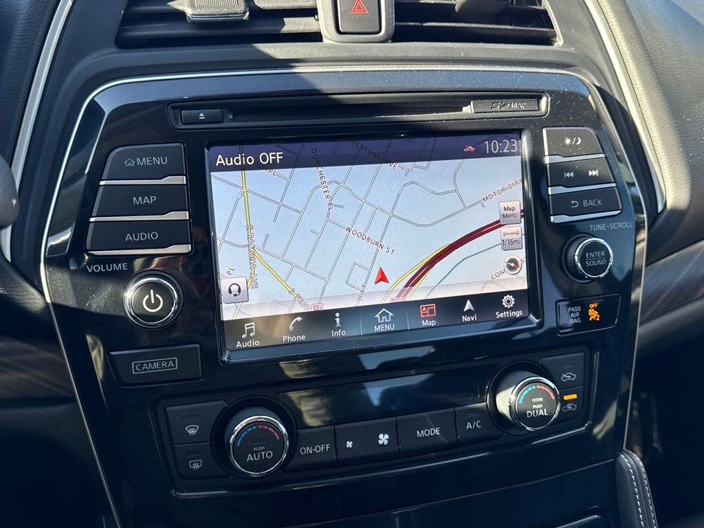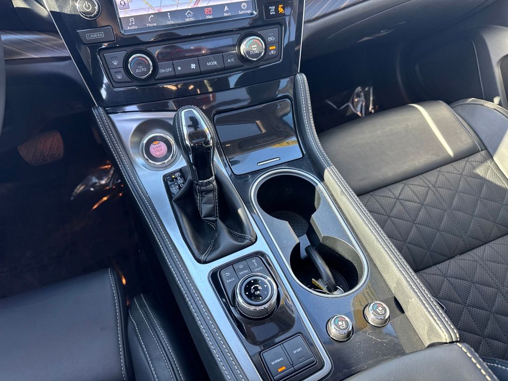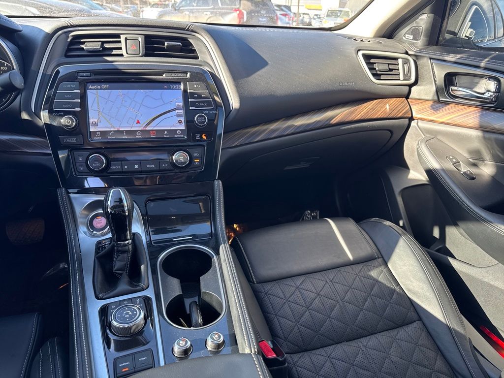 11 Speakers, 4-Wheel Disc Brakes, ABS brakes, Air Conditioning, Alloy wheels, AM/FM radio: SiriusXM, Anti-whiplash front head restraints, Apple CarPlay, Auto tilt-away steering wheel, Auto-dimming door mirrors, Auto-dimming Rear-View mirror, Automatic temperature control, Brake assist, Bumpers: body-color, CD player, Compass, Delay-off headlights, Driver door bin, Driver vanity mirror, Dual front impact airbags, Dual front side impact airbags, Electronic Stability Control, Emergency communication system: NissanConnect Services, Floor Mats/Trunk Mat & Trunk Net, Four wheel independent suspension, Front anti-roll bar, Front Bucket Seats, Front Center Armrest, Front dual zone A/C, Front fog lights, Front reading lights, Front Zero Gravity Heated Seats, Garage door transmitter: HomeLink, Heated door mirrors, Heated front seats, Heated steering wheel, Illuminated entry, Leather-Appointed Seat Trim, Low tire pressure warning, Memory seat, Navigation System, Occupant sensing airbag, Outside temperature display, Overhead airbag, Overhead console, Panic alarm, Passenger door bin, Passenger vanity mirror, Power door mirrors, Power driver seat, Power moonroof, Power passenger seat, Power steering, Power windows, Radio data system, Radio: AM/FM/HD/CD Audio System, Rain sensing wipers, Rear anti-roll bar, Rear reading lights, Rear seat center armrest, Rear Window Blind, Rear window defroster, Remote keyless entry, Security system, Speed control, Speed-sensing steering, Speed-Sensitive Wipers, Splash Guards, Split folding rear seat, Steering wheel memory, Steering wheel mounted audio controls, Tachometer, Telescoping steering wheel, Tilt steering wheel, Traction control, Trip computer, Turn signal indicator mirrors, Variably intermittent wipers, Ventilated front seats, and Wheels: 18" Machined Aluminum Alloy.