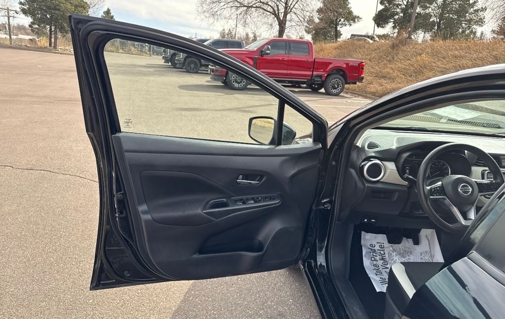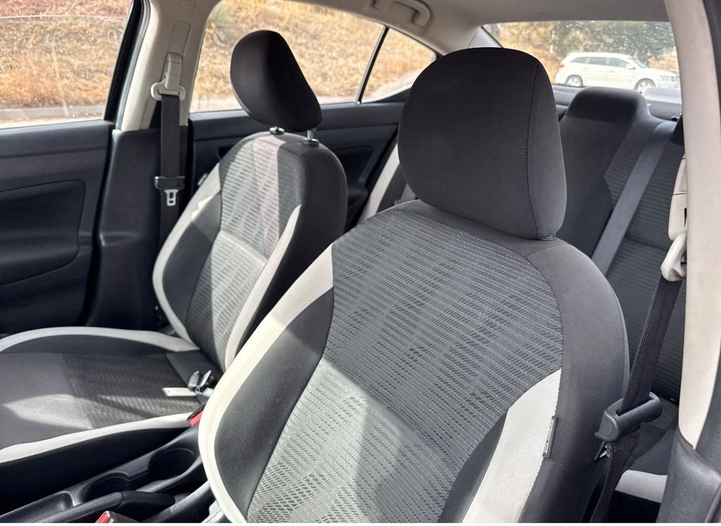 16" Alloy Wheels, 4 Speakers, ABS brakes, Air Conditioning, Alloy wheels, AM/FM radio: SiriusXM, Apple CarPlay/Android Auto, Auto High-beam Headlights, Blind Spot Warning, Brake assist, Bumpers: body-color, Carpeted Floor Mats & Trunk Mat (5-Piece Set), Driver door bin, Driver vanity mirror, Dual front impact airbags, Dual front side impact airbags, Electronic Stability Control, Front anti-roll bar, Front Bucket Seats, Front reading lights, Front wheel independent suspension, Fully automatic headlights, Heated door mirrors, Illuminated entry, Knee airbag, Low tire pressure warning, Occupant sensing airbag, Outside temperature display, Overhead airbag, Panic alarm, Passenger door bin, Passenger vanity mirror, Power door mirrors, Power steering, Power windows, Radio data system, Radio: AM/FM Audio System, Rear side impact airbag, Rear window defroster, Remote keyless entry, Speed control, Split folding rear seat, Steering wheel mounted audio controls, Tachometer, Telescoping steering wheel, Tilt steering wheel, Traction control, Trip computer, Turn signal indicator mirrors, Upgraded Cloth Seat Trim, and Variably intermittent wipers.